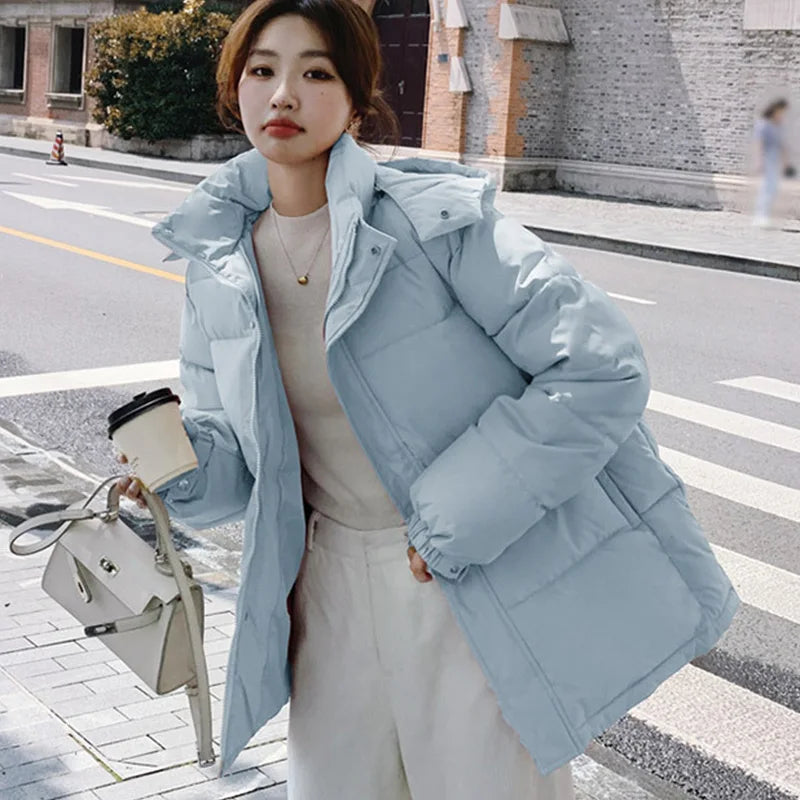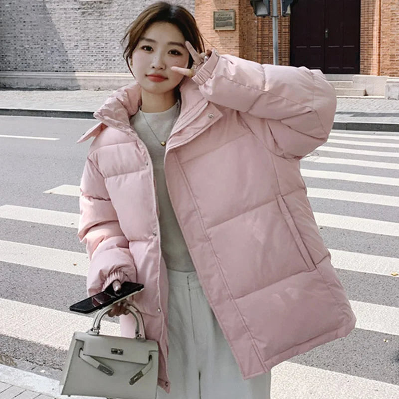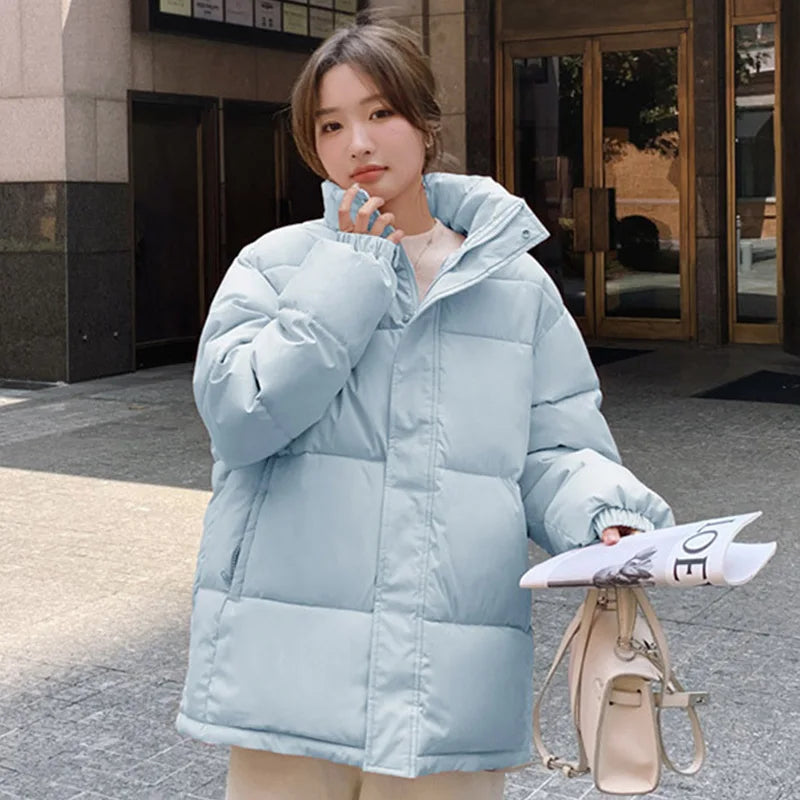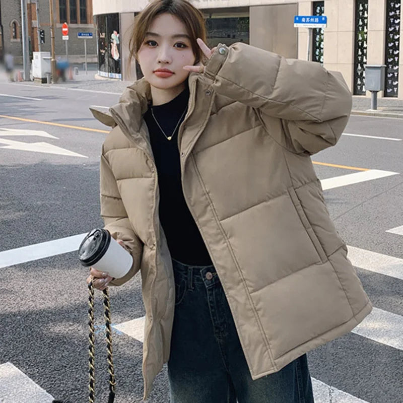 Winter Fashion Zipper Up Parkas Women Stand Collar Long Sleeve Parka Jacket