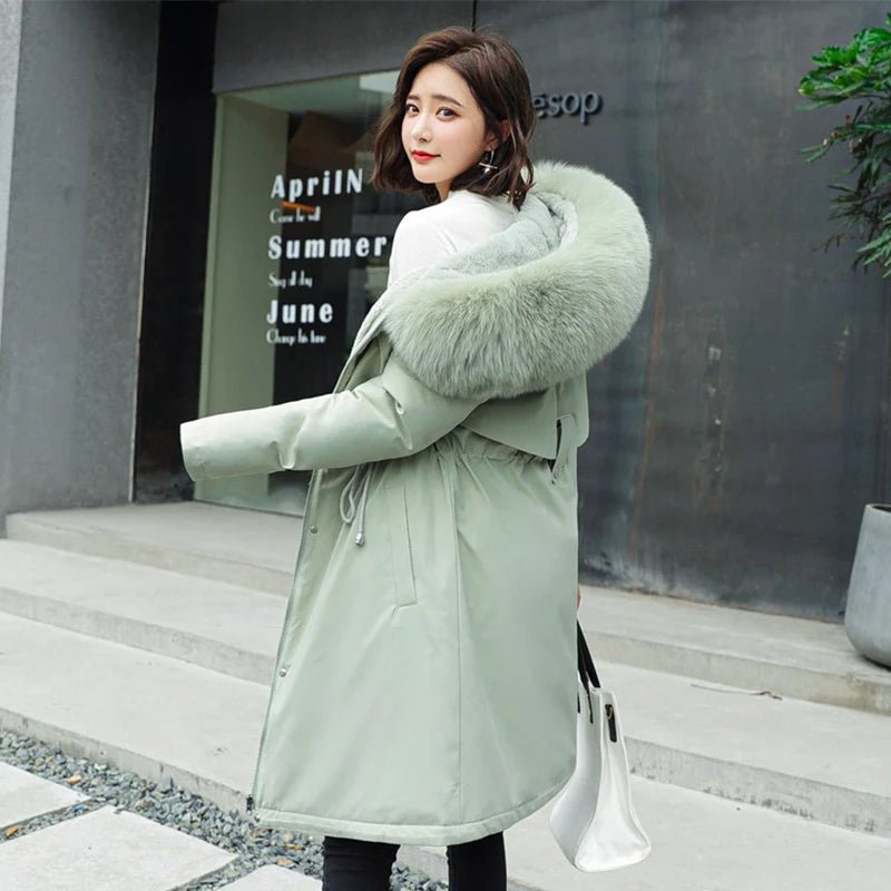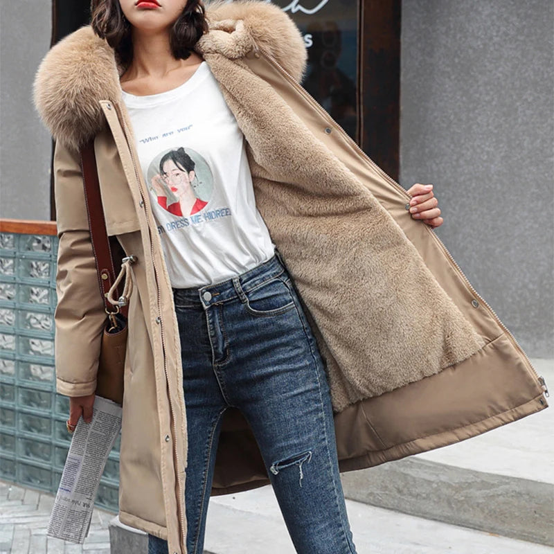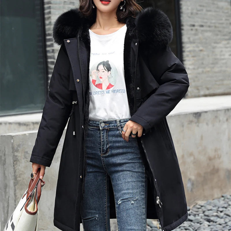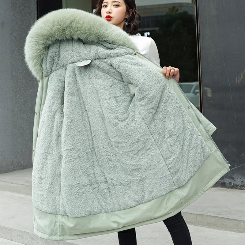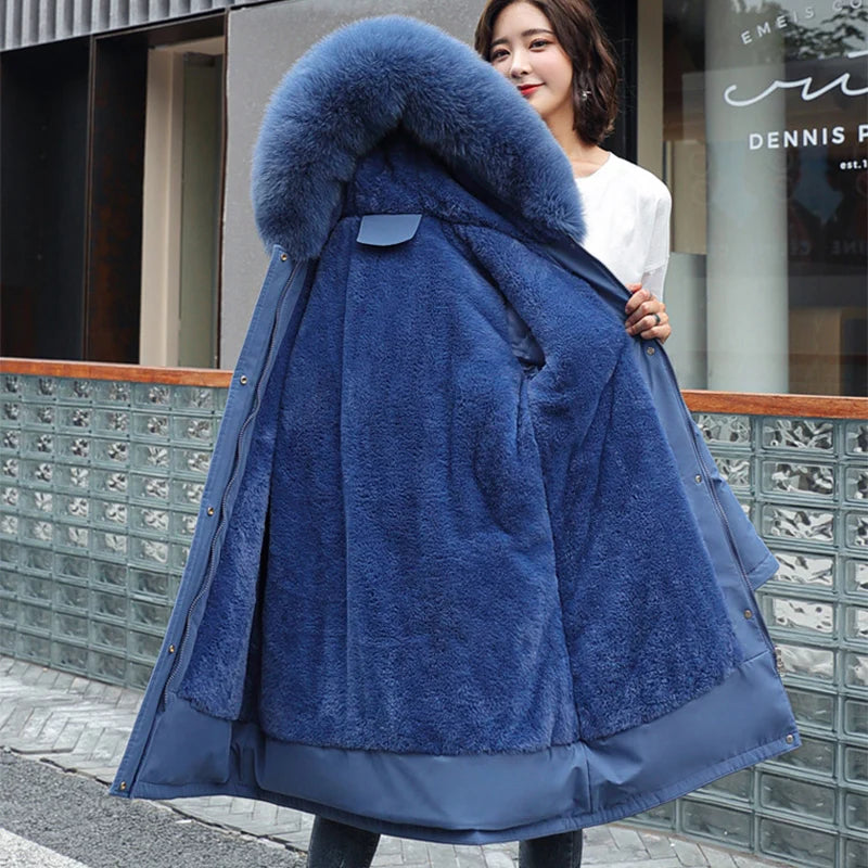 Winter Fleece Thicken Parkas for Women Soft Furry Collar Hooded Cotton Jackets