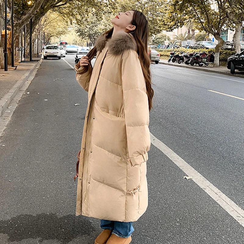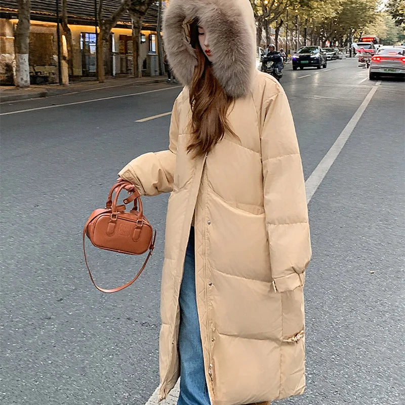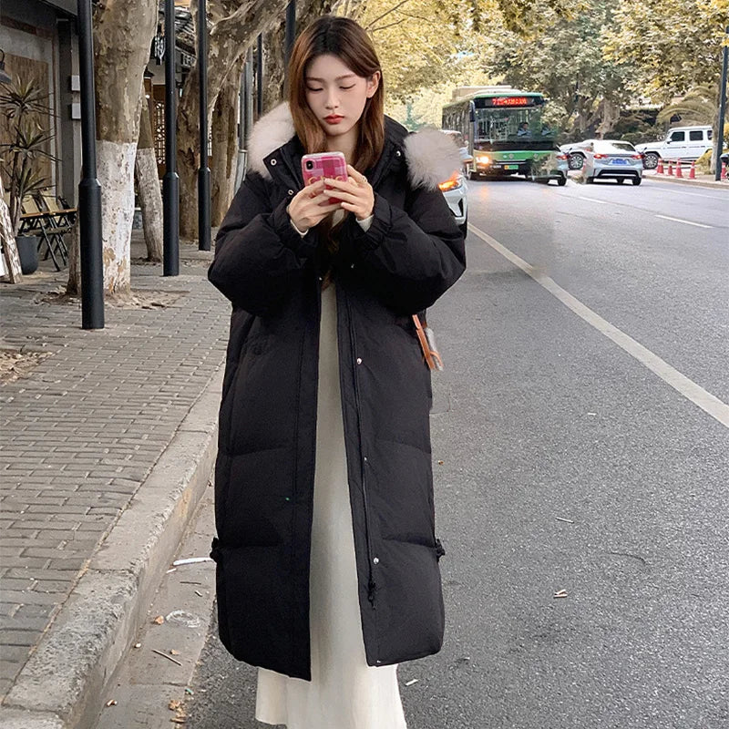Winter Thick Warm Long Parkas for Women Fashion Furry Collar Hooded Parka Jacket