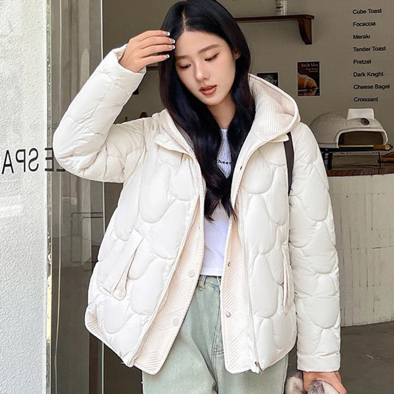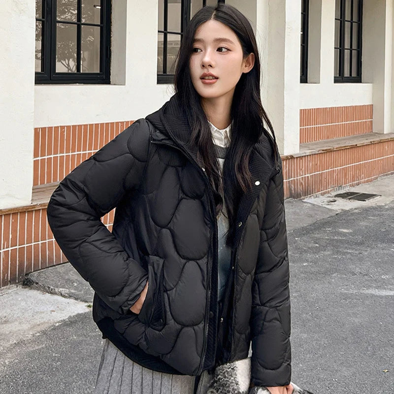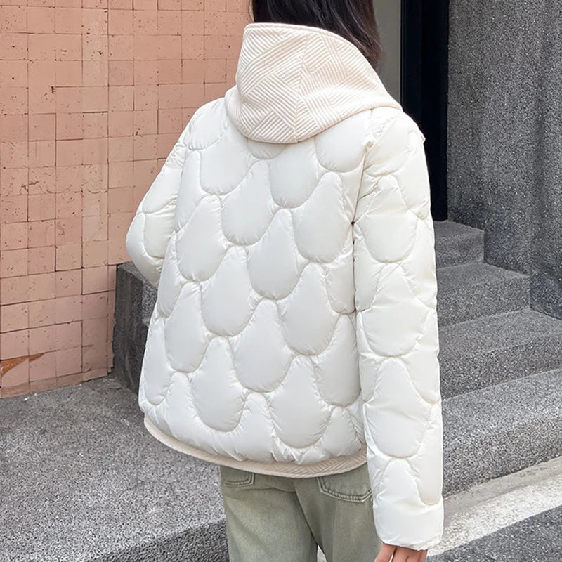 Winter Two Fake Pieces Parkas for Women Casual Knitted Hooded Cotton Jackets