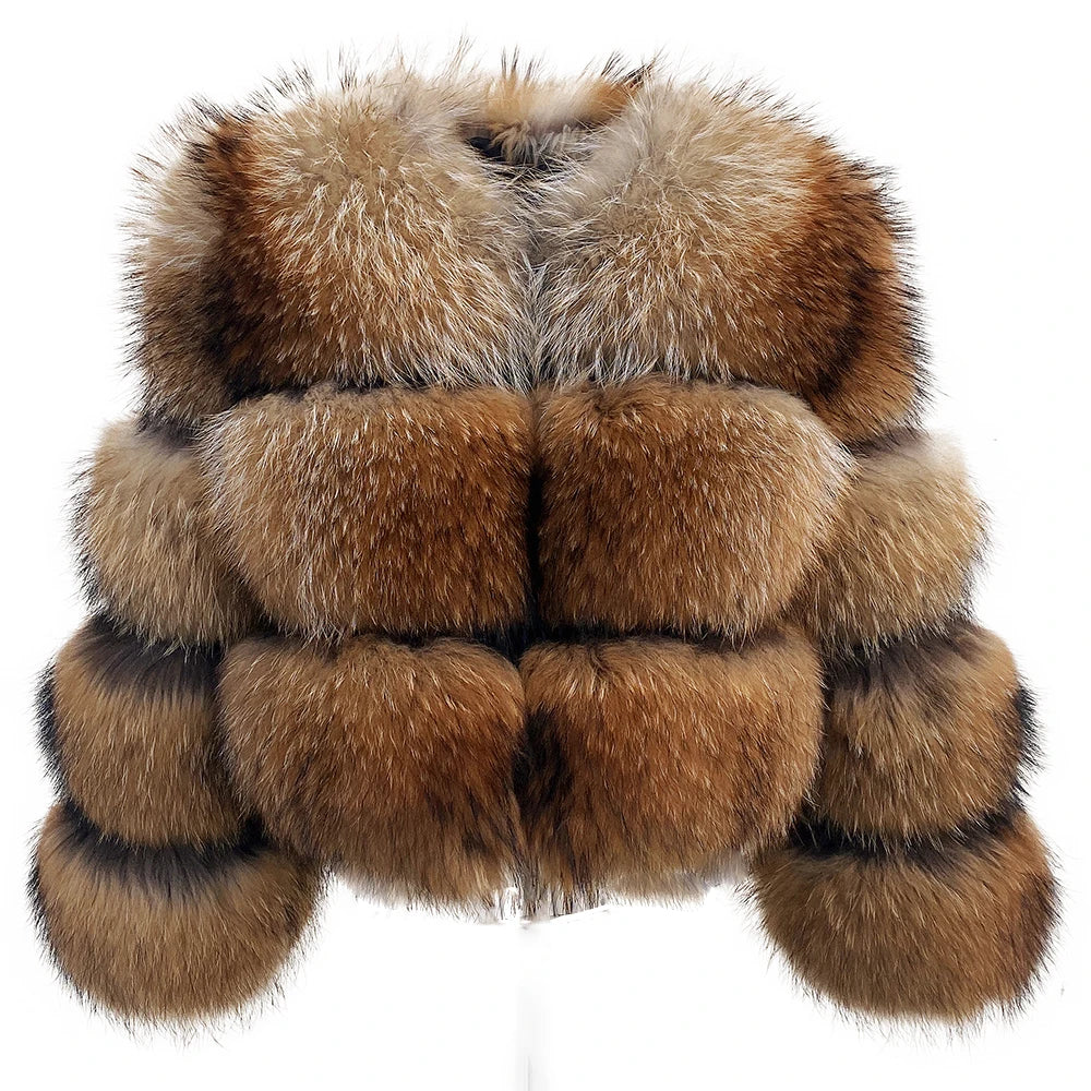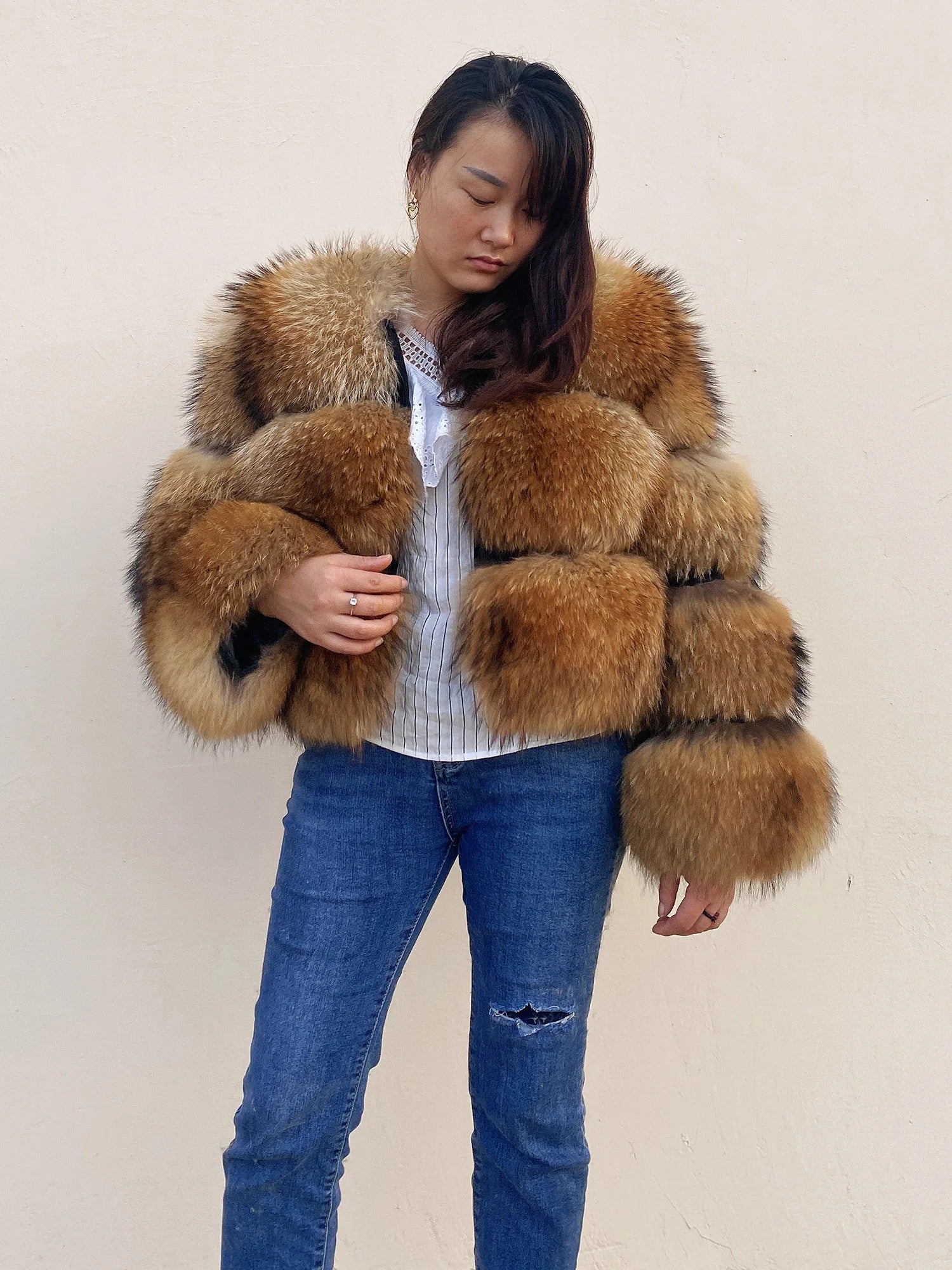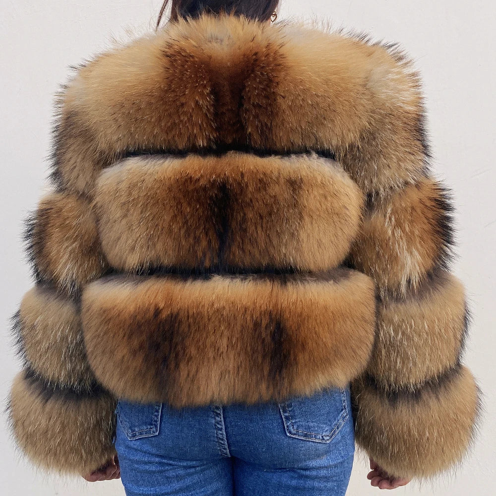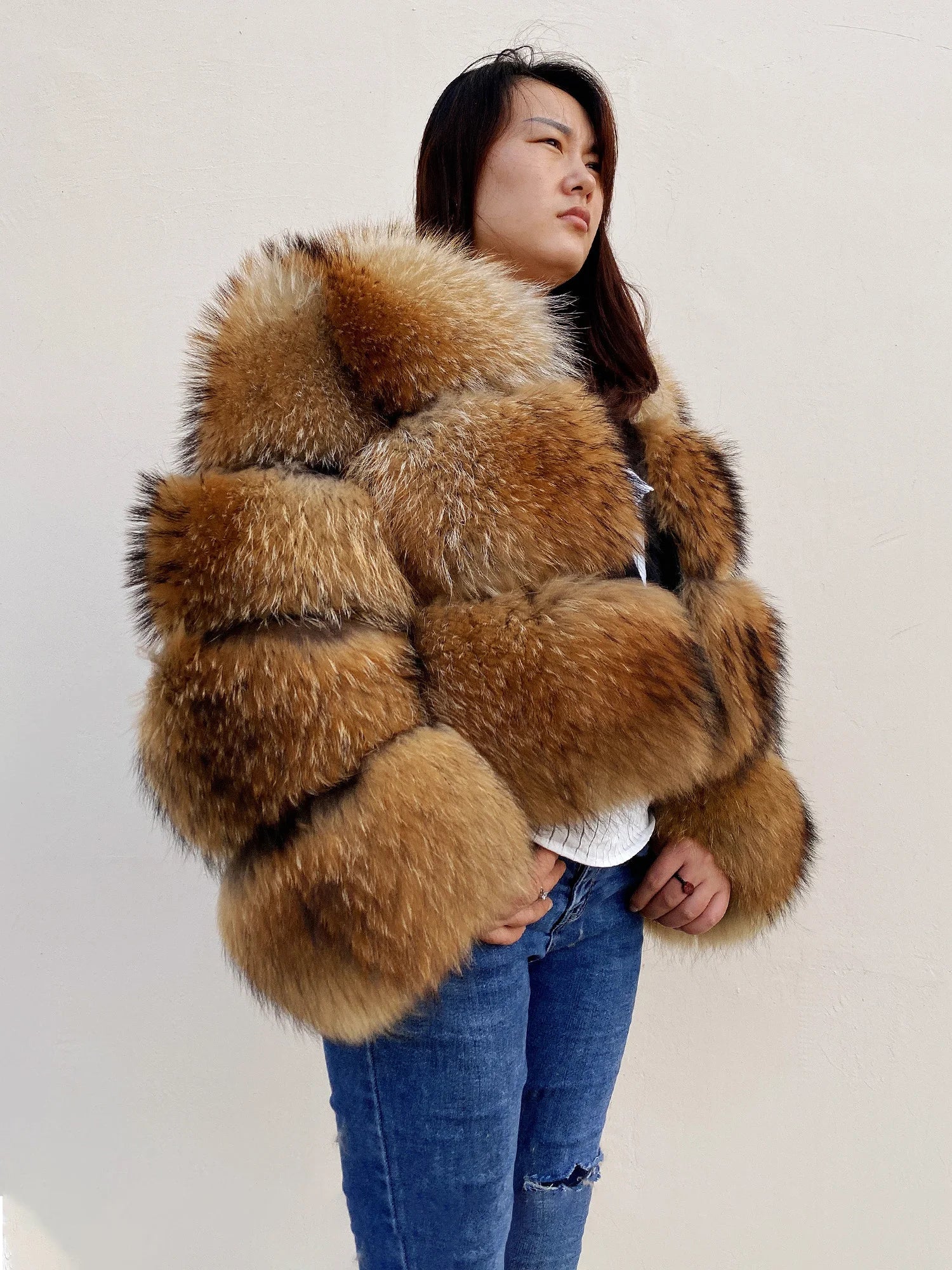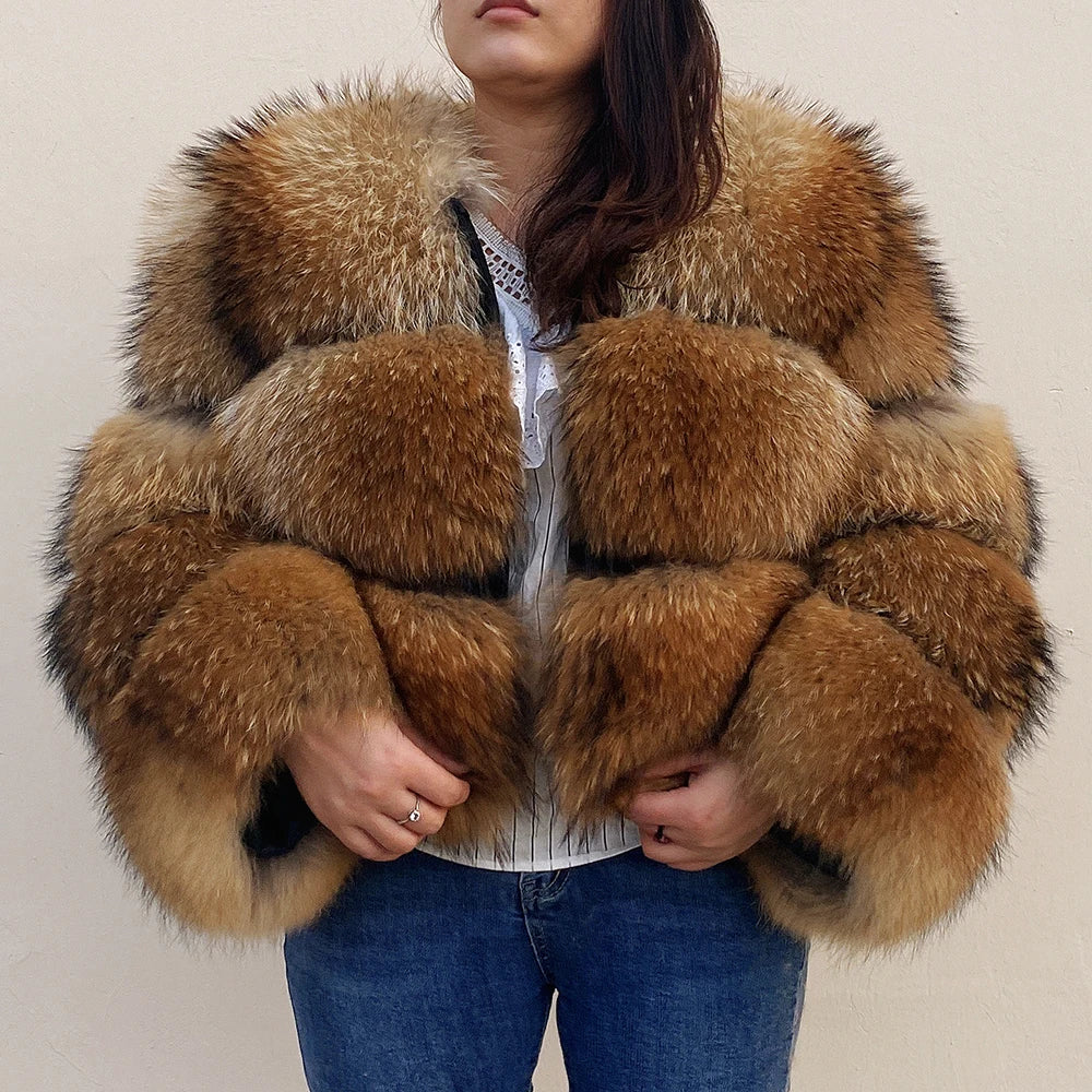 Woman winter natural raccoon fur jacket real fur coat furry fur jacket thick