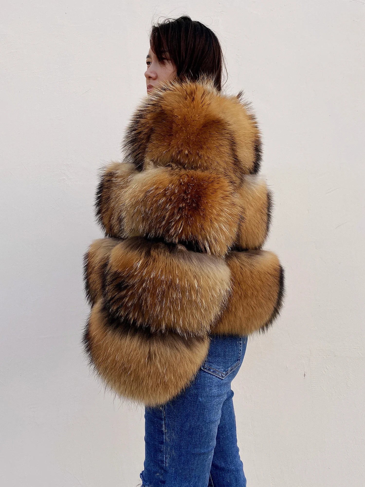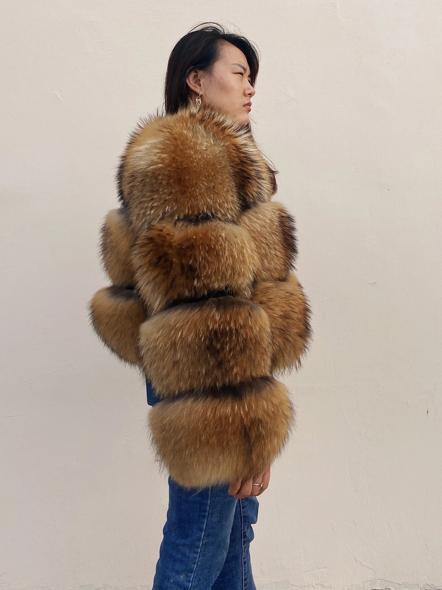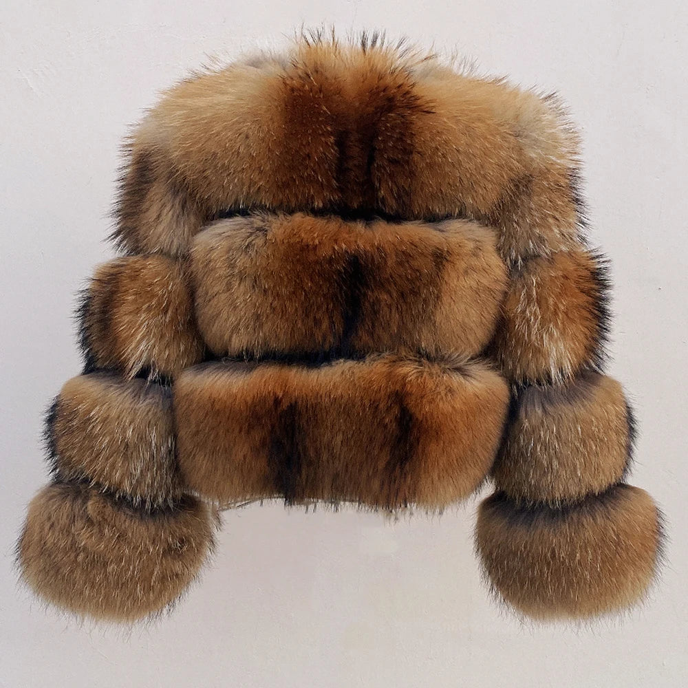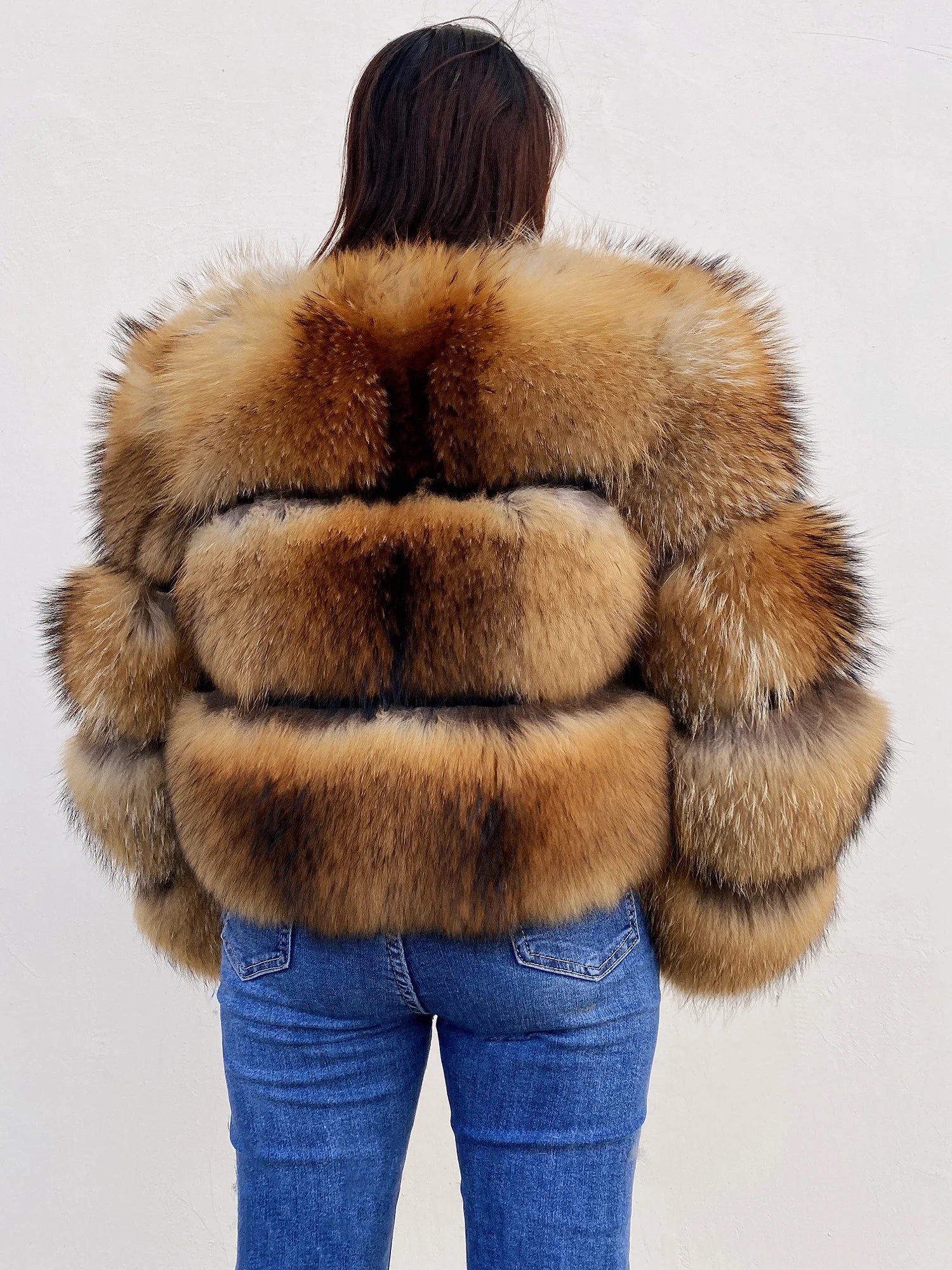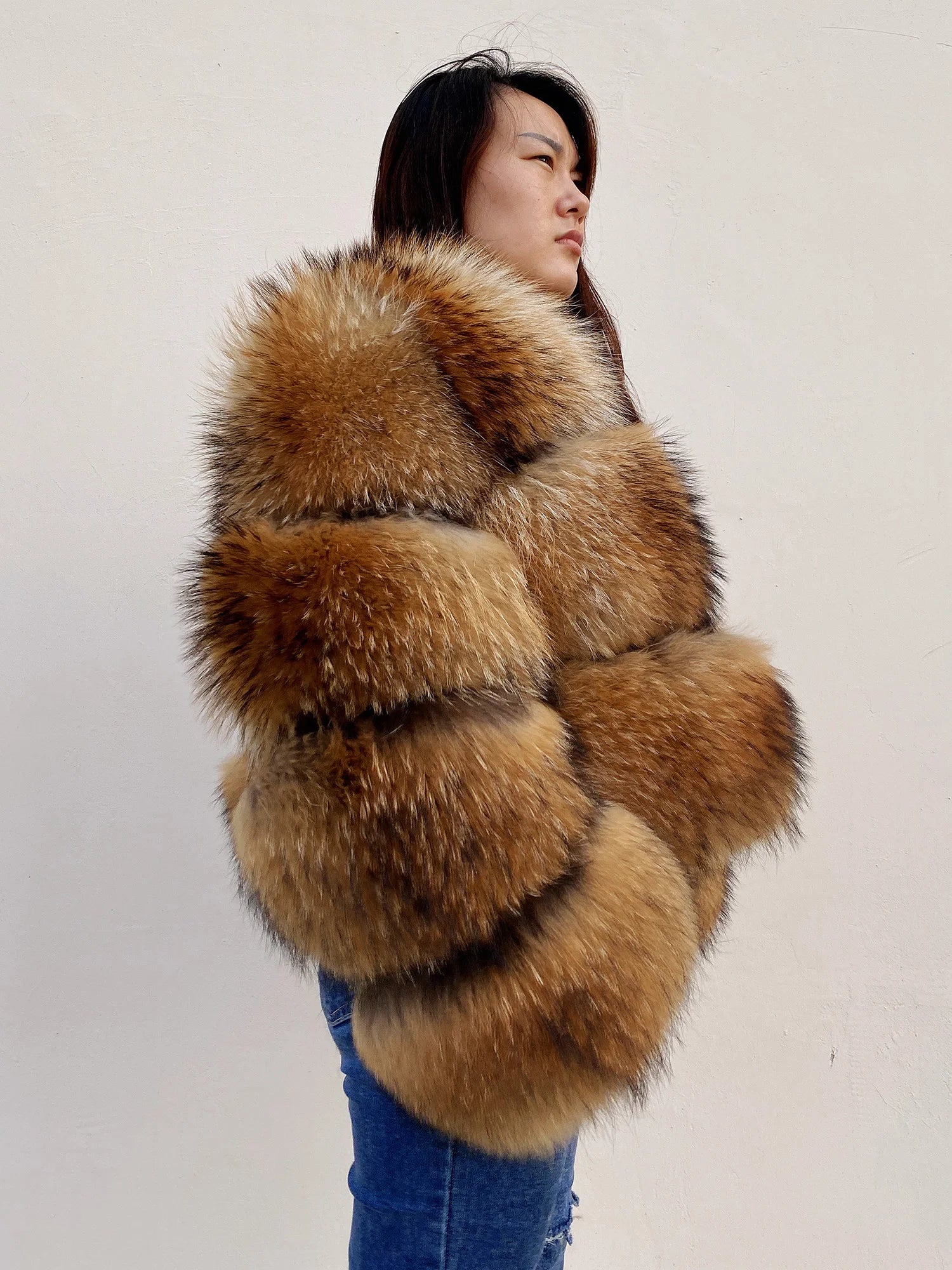 Woman winter natural raccoon fur jacket real fur coat furry fur jacket thick