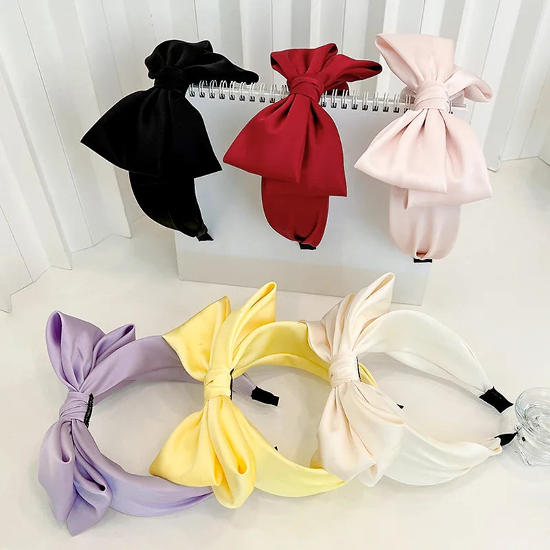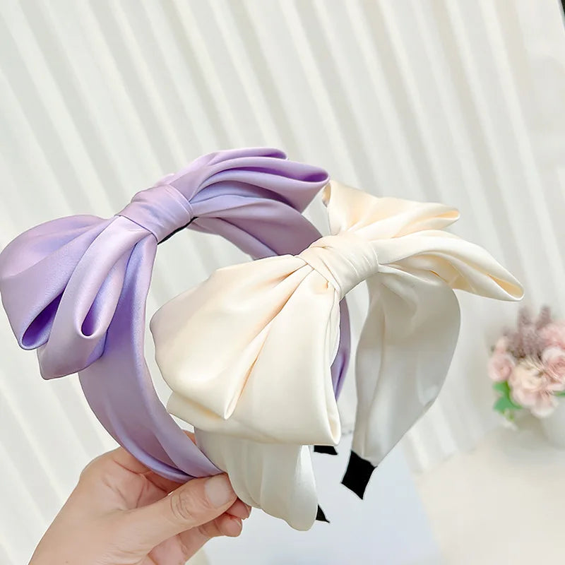 Women Girls Spring Colorful Silk Satin Bow Hairband Headband Adult Hair Accessories Hair Jewley