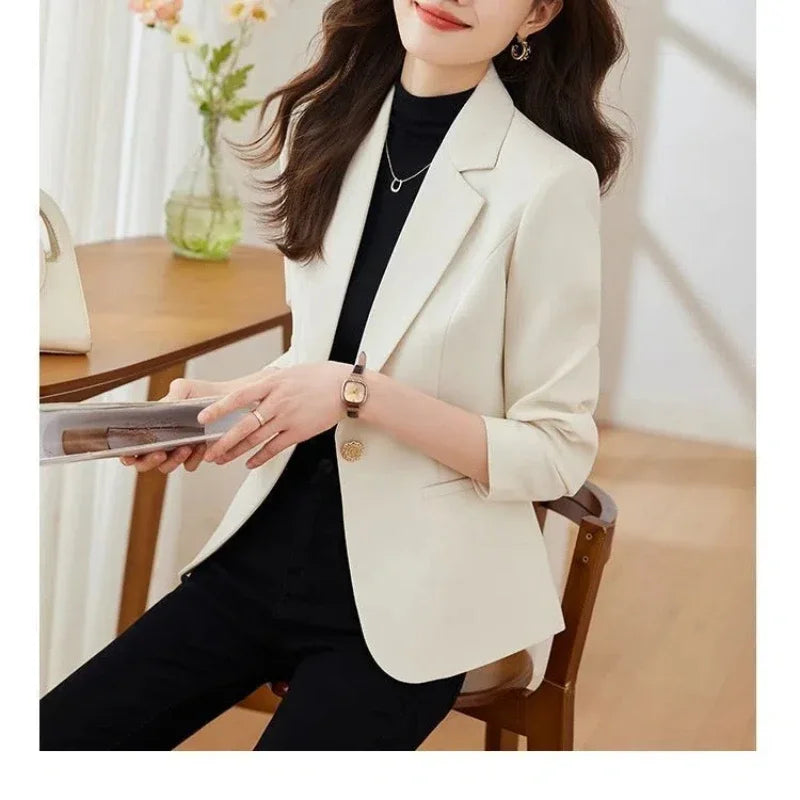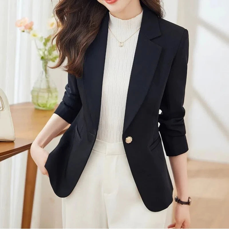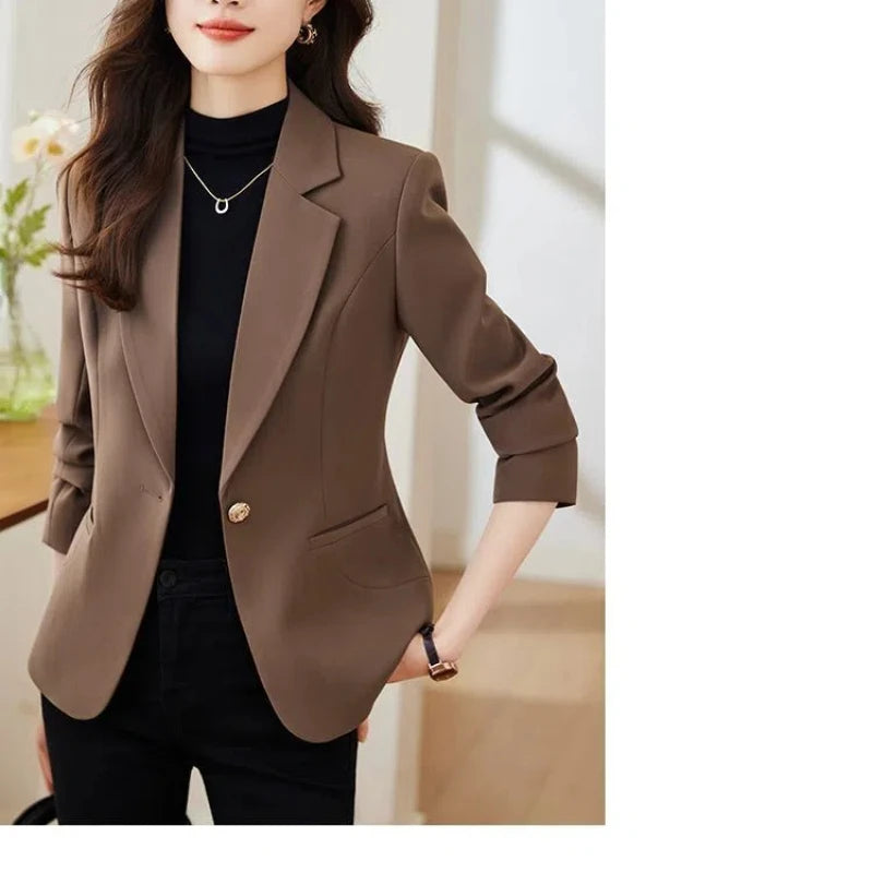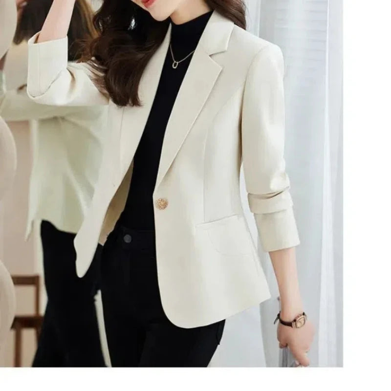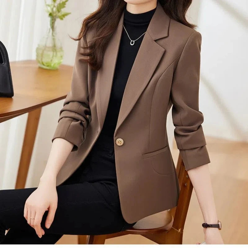 Women s Clothing Spring Autumn Blazers Turn down Collar Solid Color Button