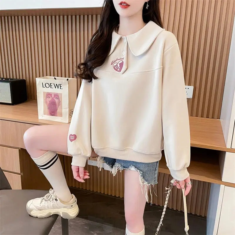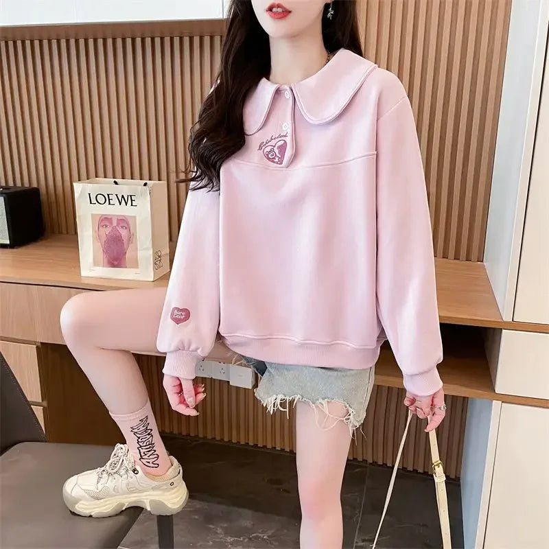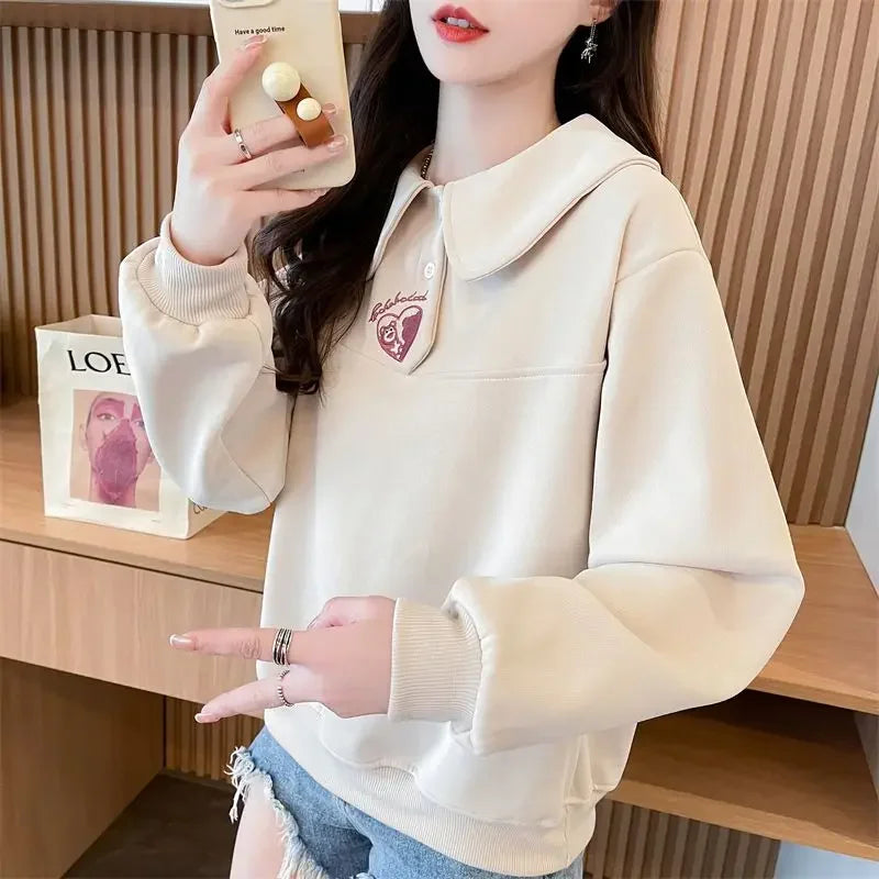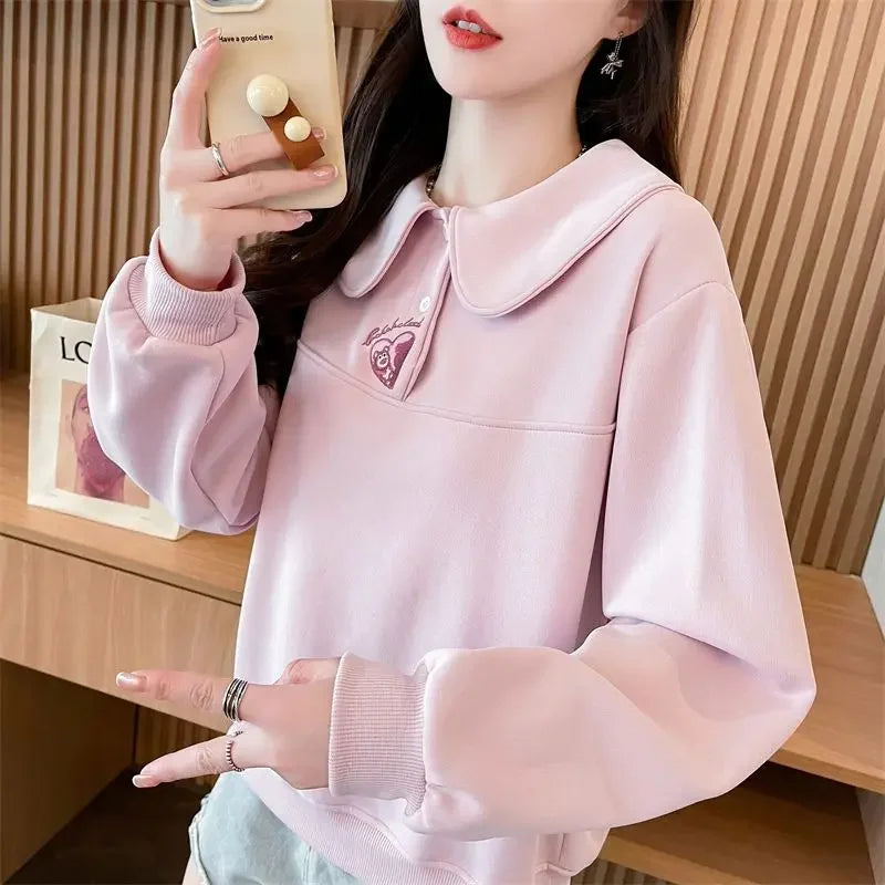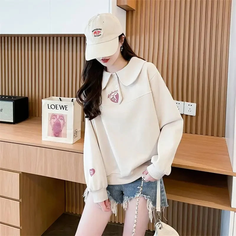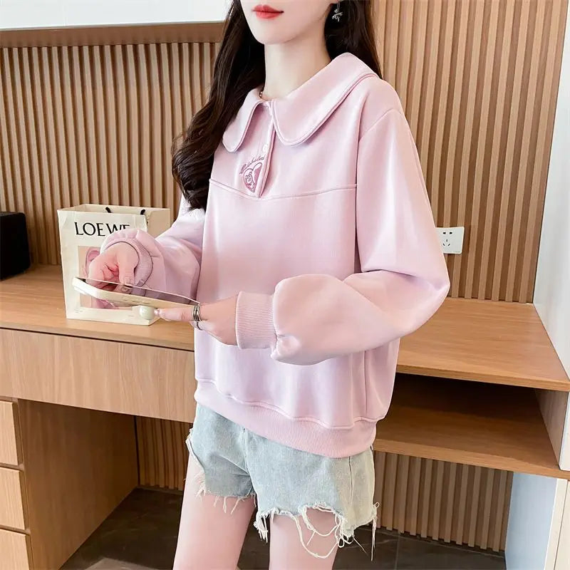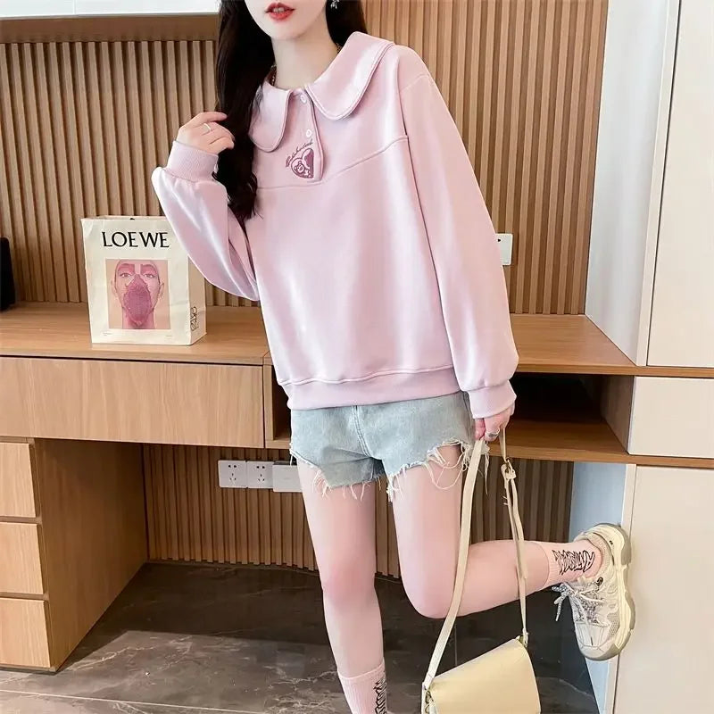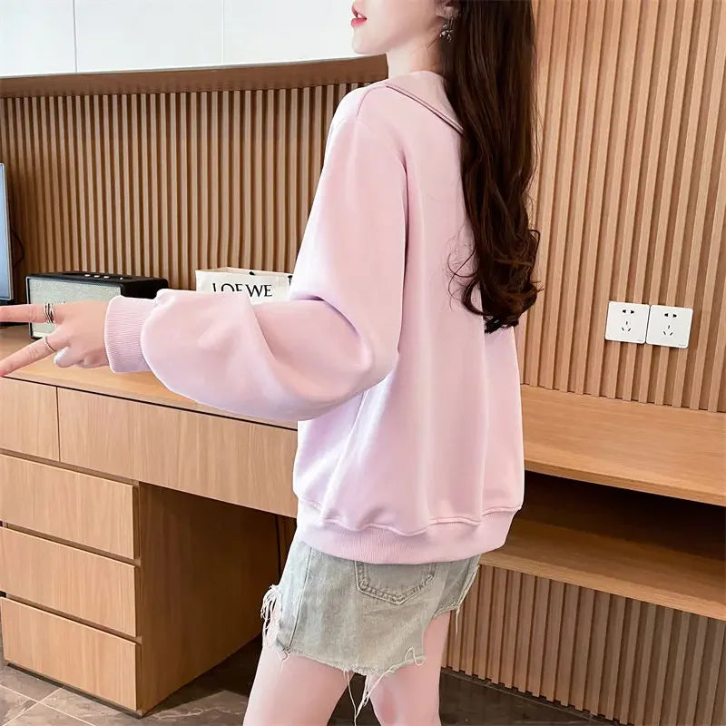 Women s Sweatshirt Loose Flesh covering Versatile Age reducing Pullover Polo ...