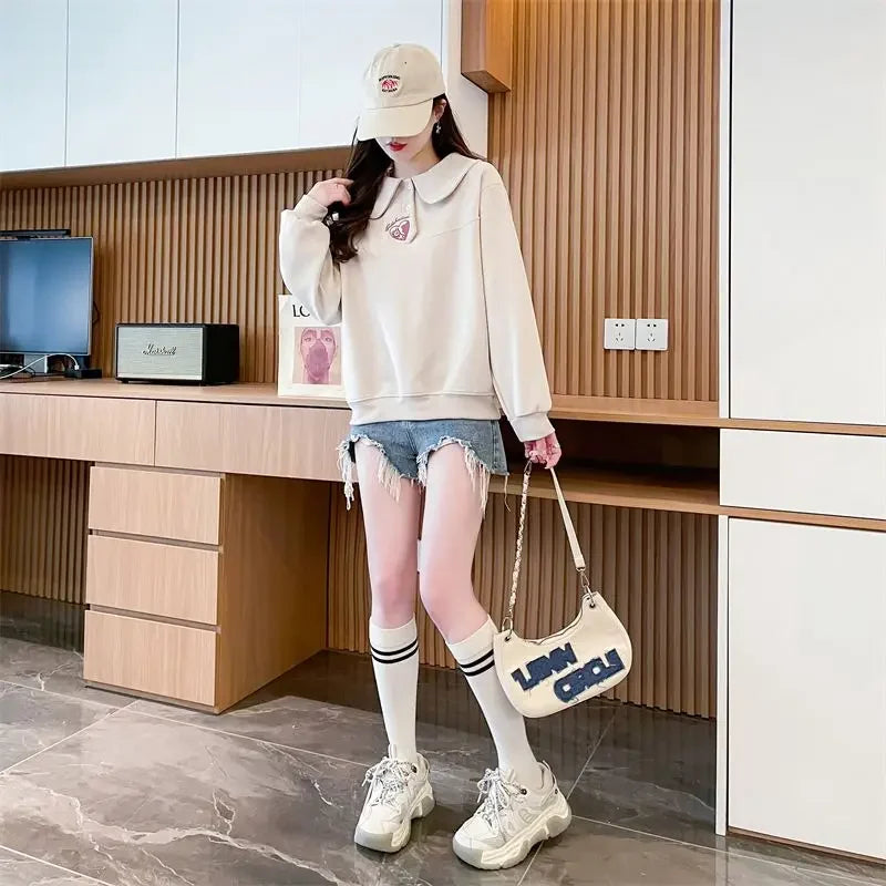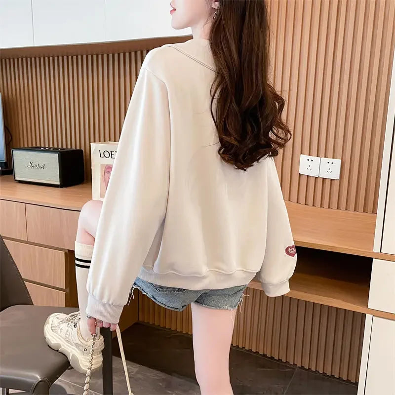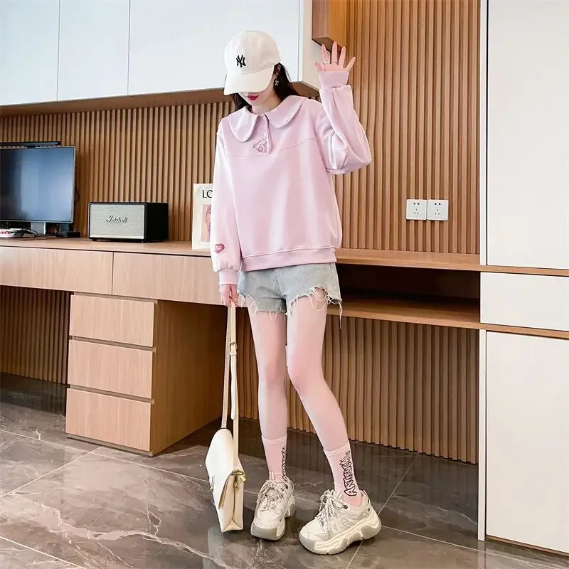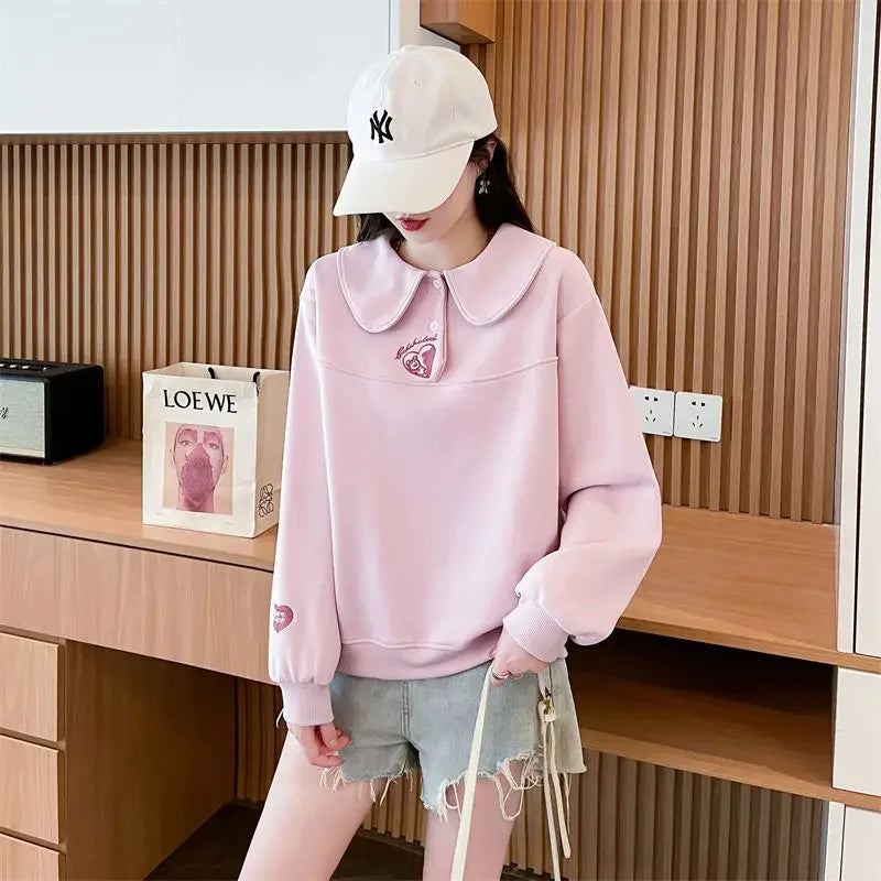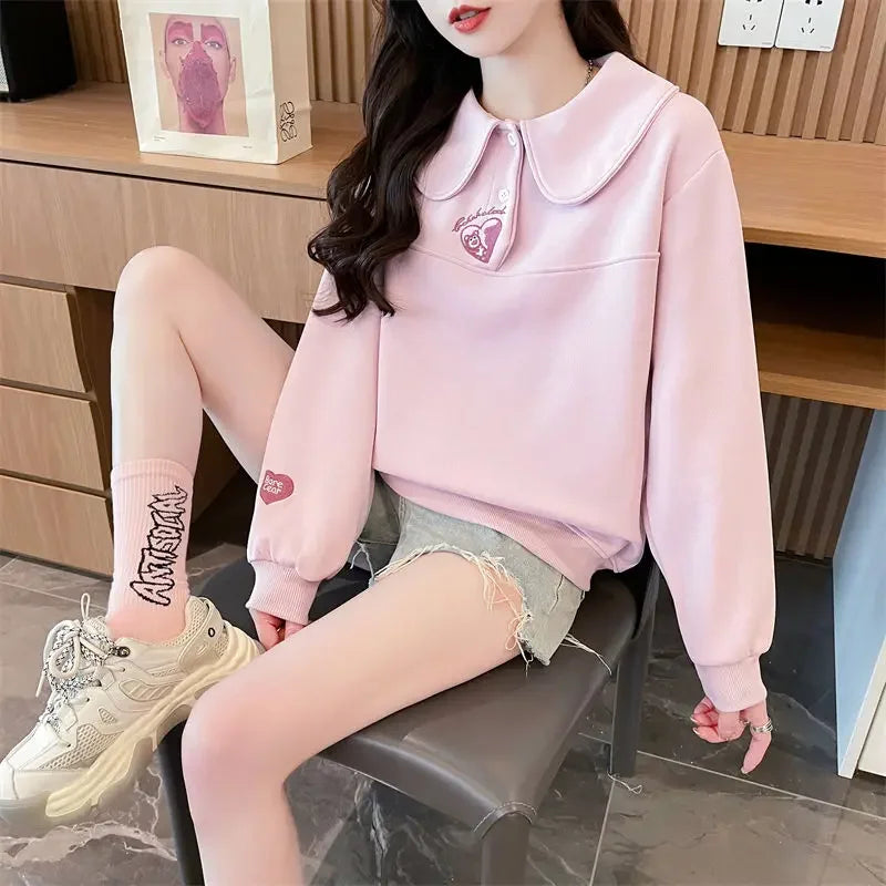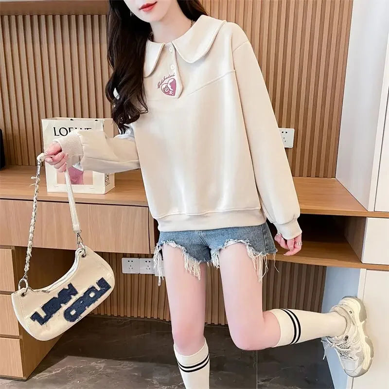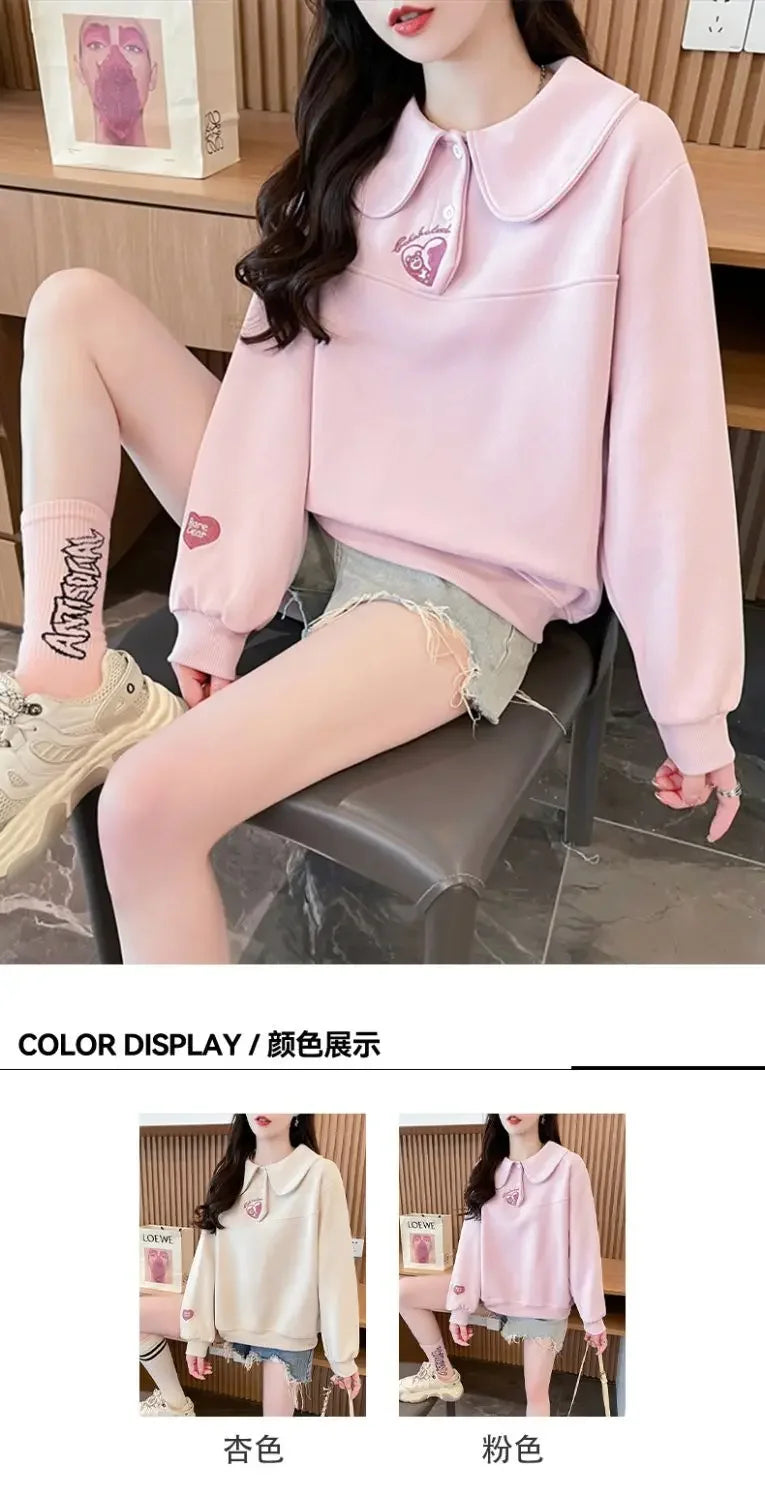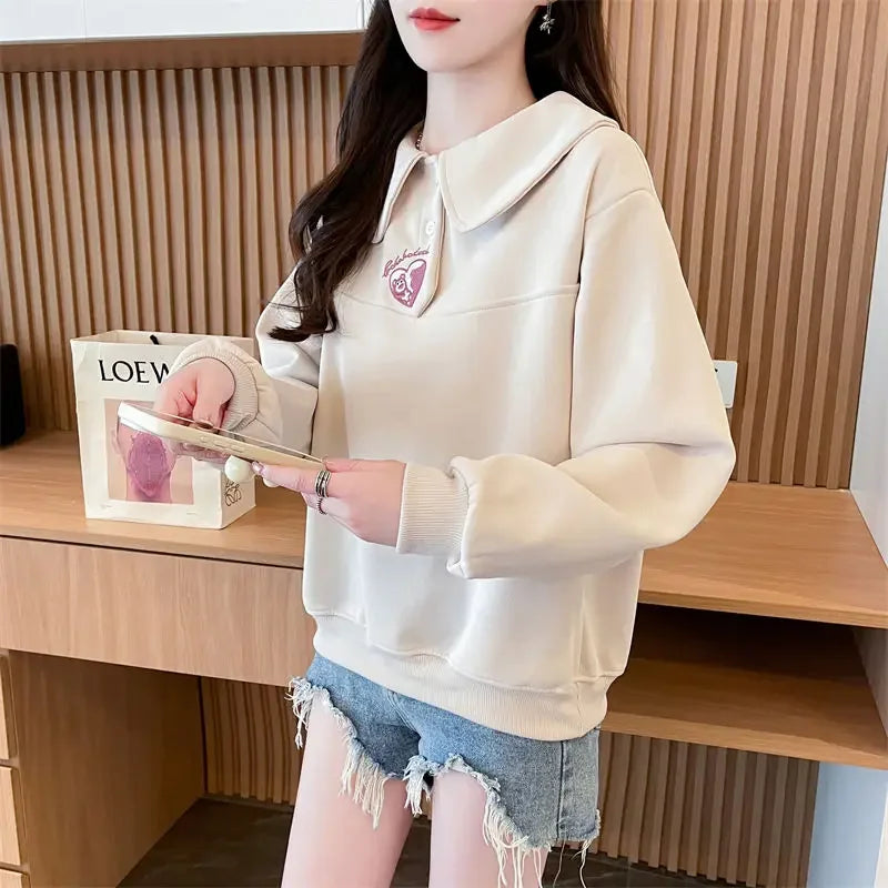 Women s Sweatshirt Loose Flesh covering Versatile Age reducing Pullover Polo ...