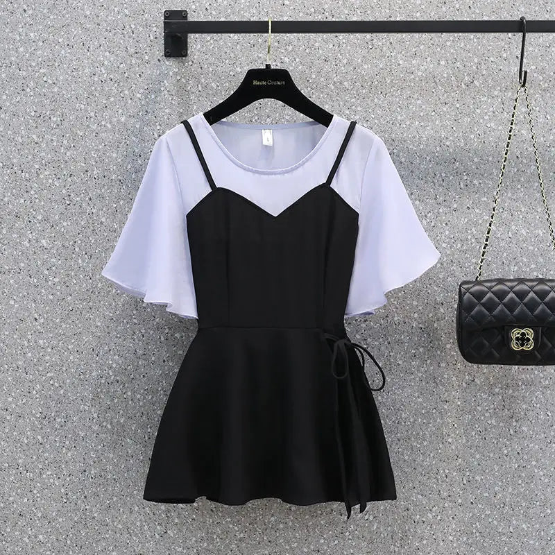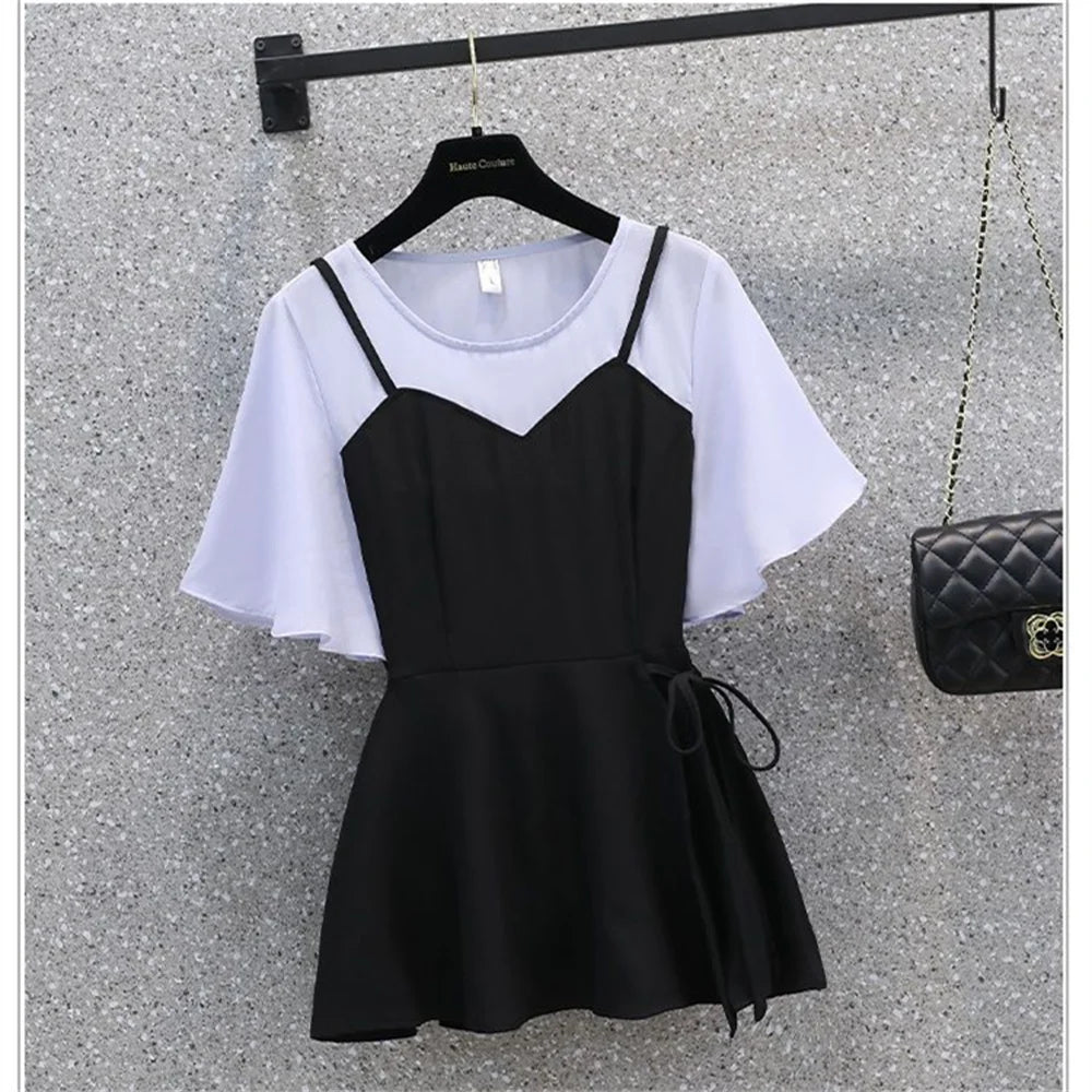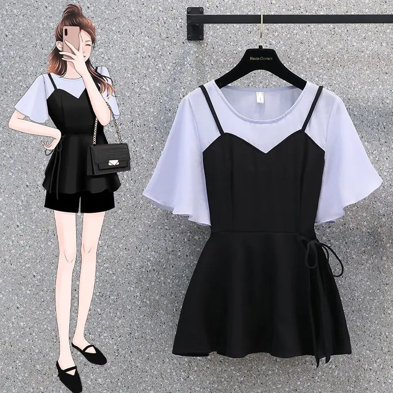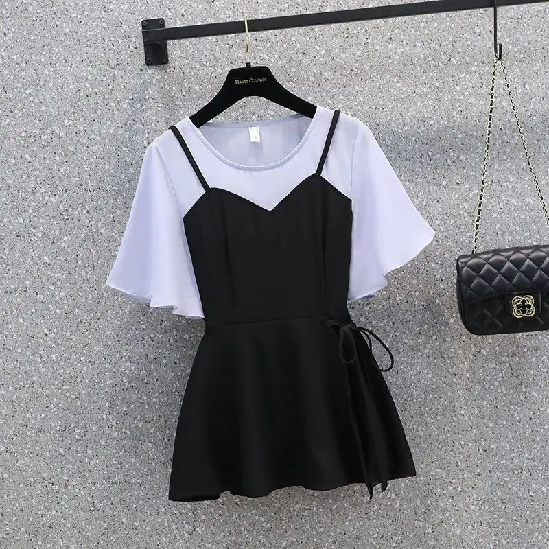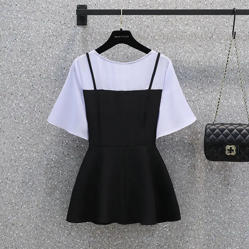 Women's Summer 2023 New Suspender Suit Skirt Pants Foreign Style Reduced Age Suspender Skirt Fake Two Pieces korean fashion