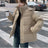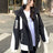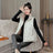Korean Patchwork Parkas for Women Loose Stand Collar Hood...