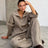 Bornladies Women s Knit Zip Up Cardigan Wide Leg Pants Se...