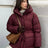 Bornladies Winter Women Wine Red Hooded Puffer Coat Draws...