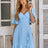 NewWomen s Solid Color Dress V neck Half Sleeve Ruffles M...