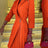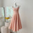 DEAT Elegant Dress Slip Cross Lines Waist Slim Colored Fl...