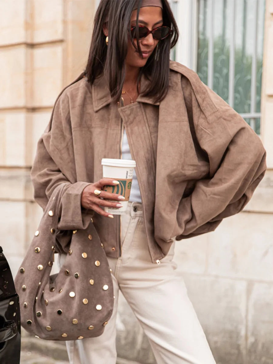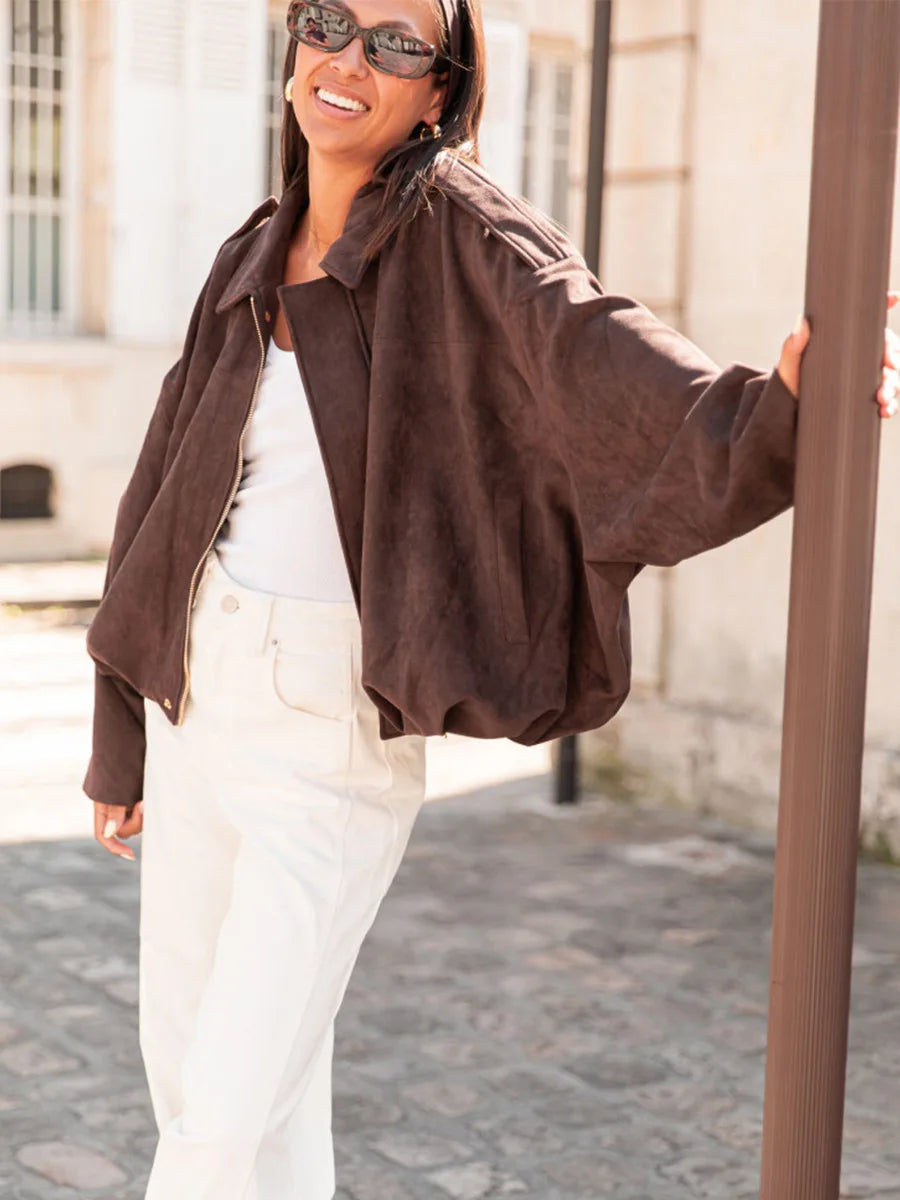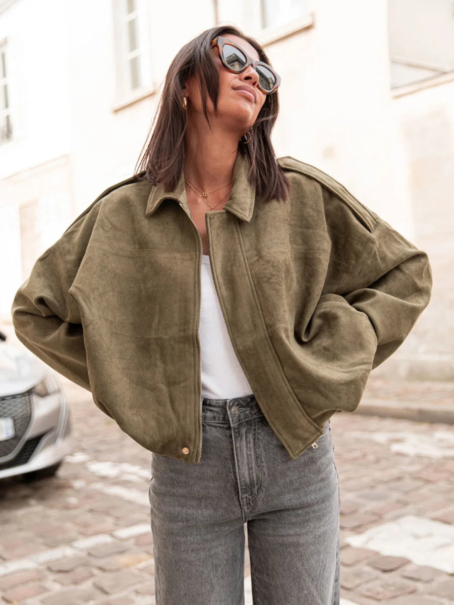 Bornladies Suede Zipper Short Jacket Women s Autumn Winter Ins Style Retro