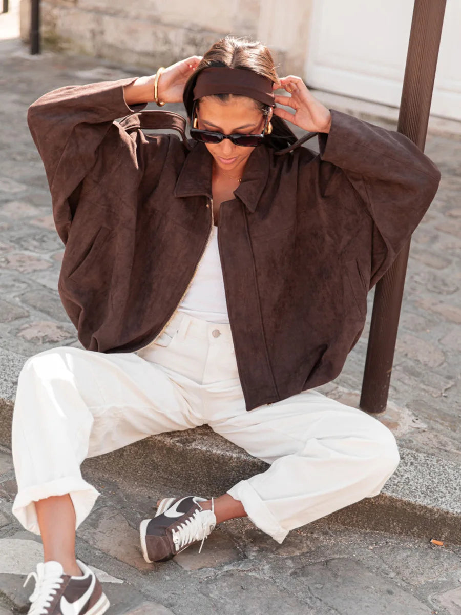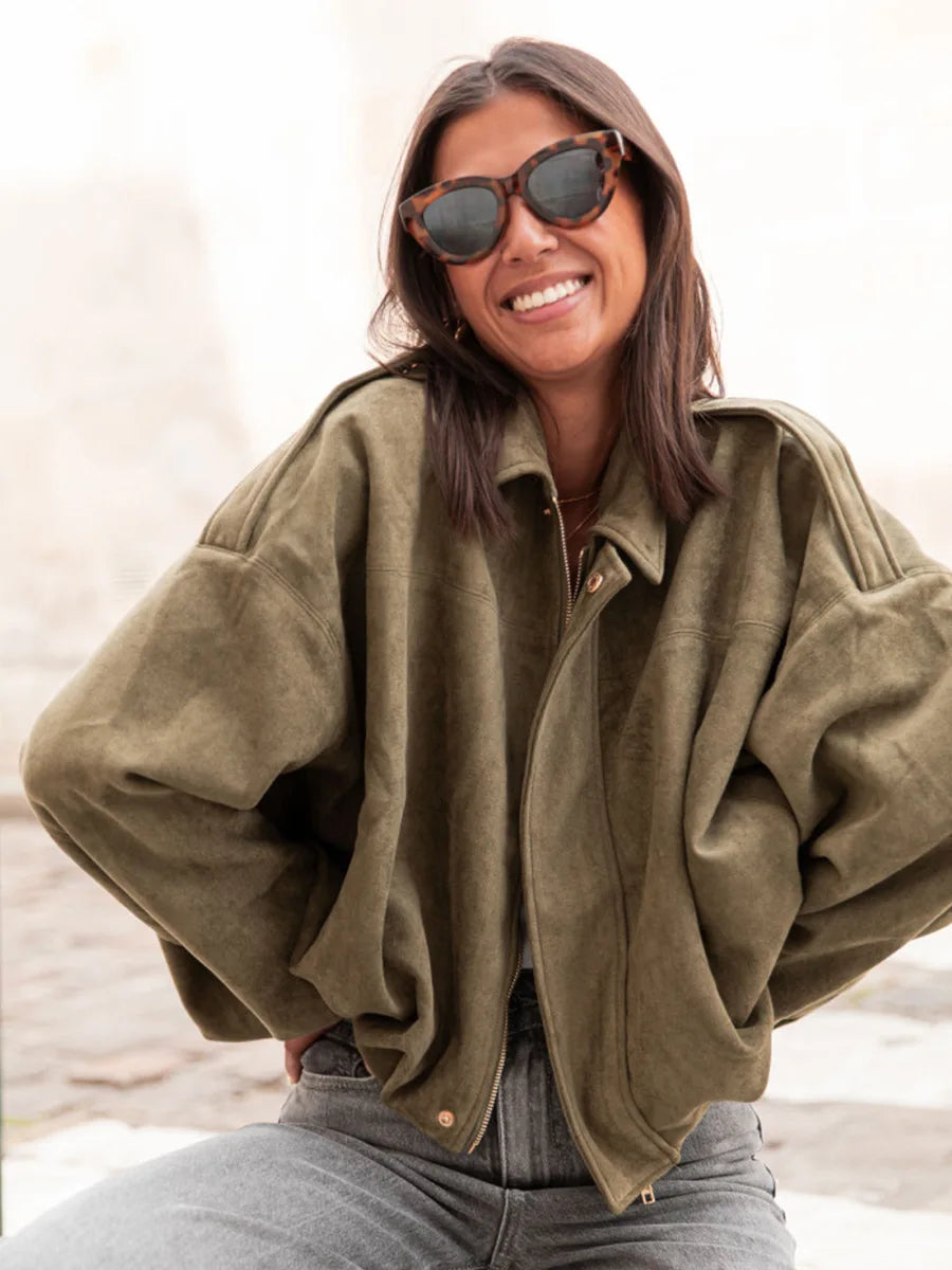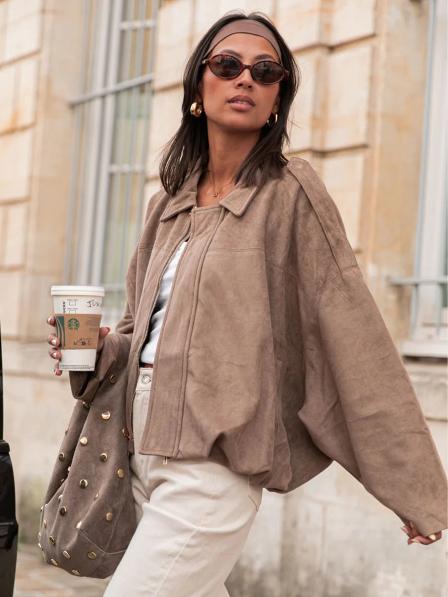 Bornladies Suede Zipper Short Jacket Women s Autumn Winter Ins Style Retro