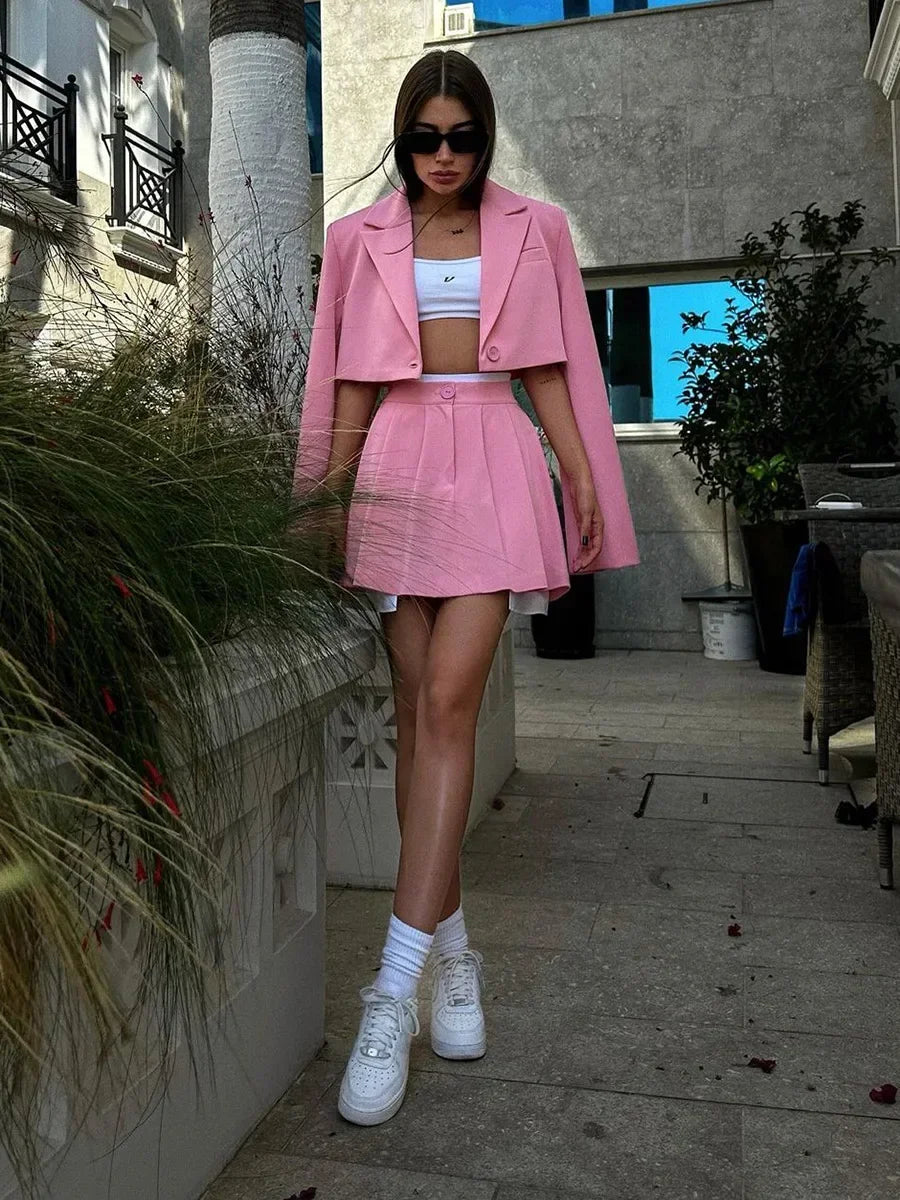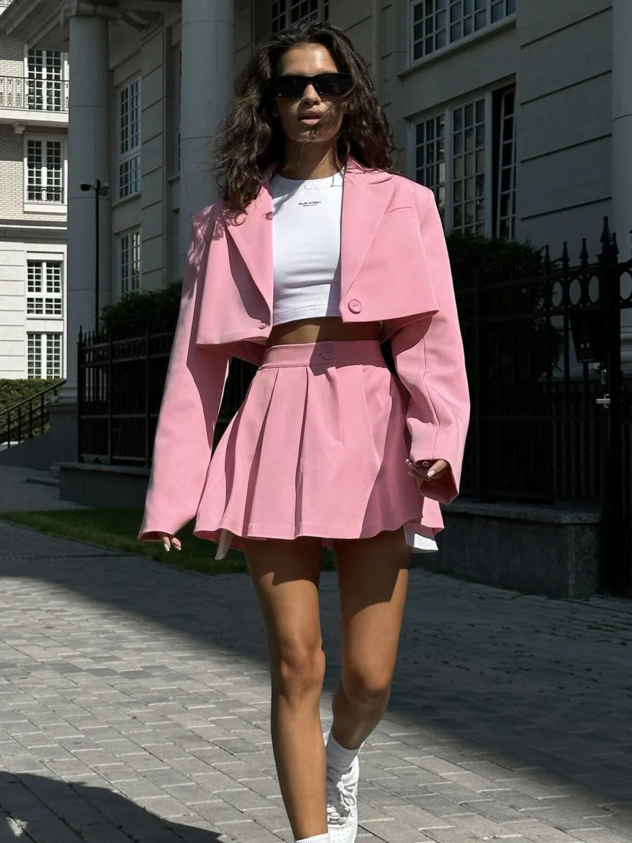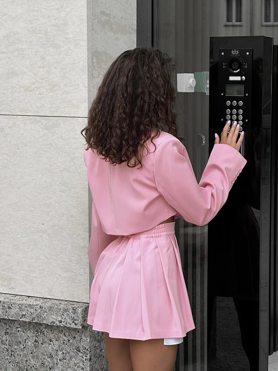 Bornladies Women Stylish Short Blazer Sets Crop Blazer Jackets & Pleated Mini