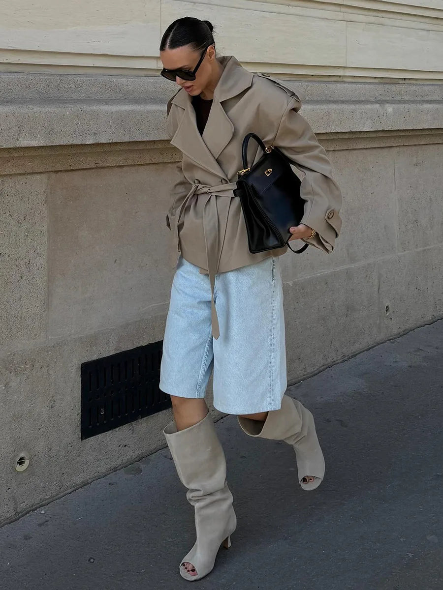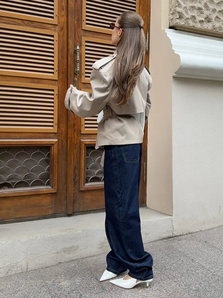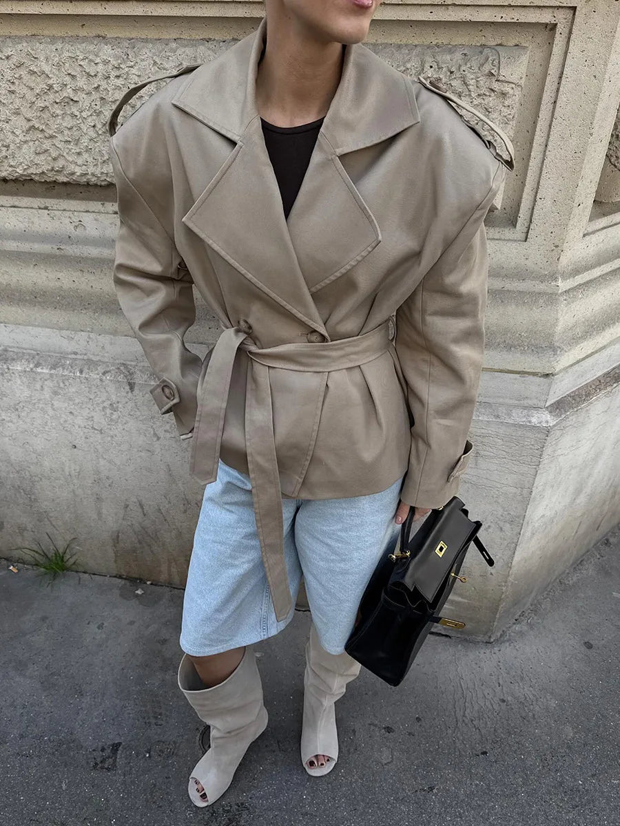 Bornladies Women s Autumn Fashion Khaki Trench Long Sleeve Belted Temperament
