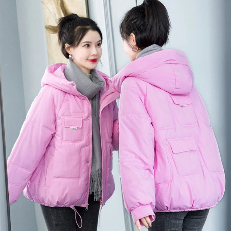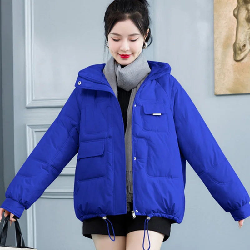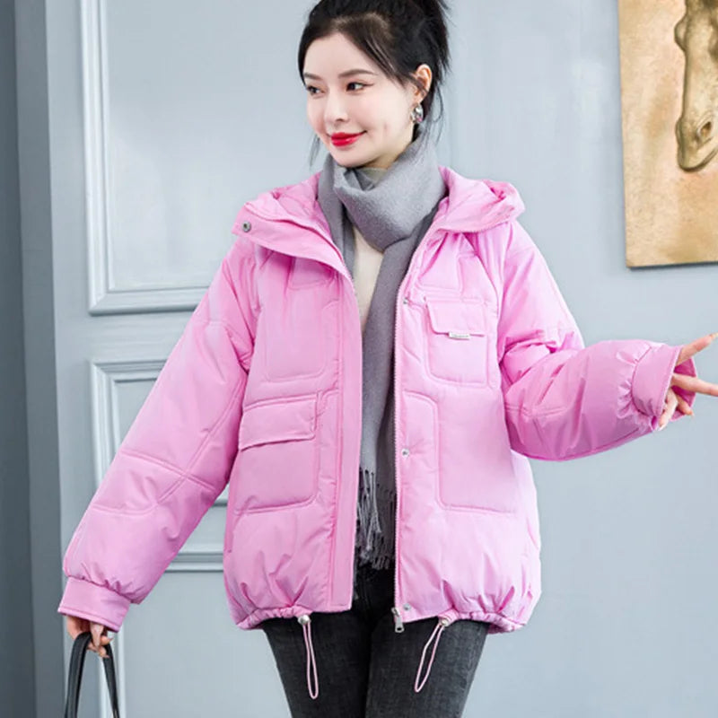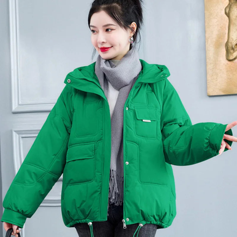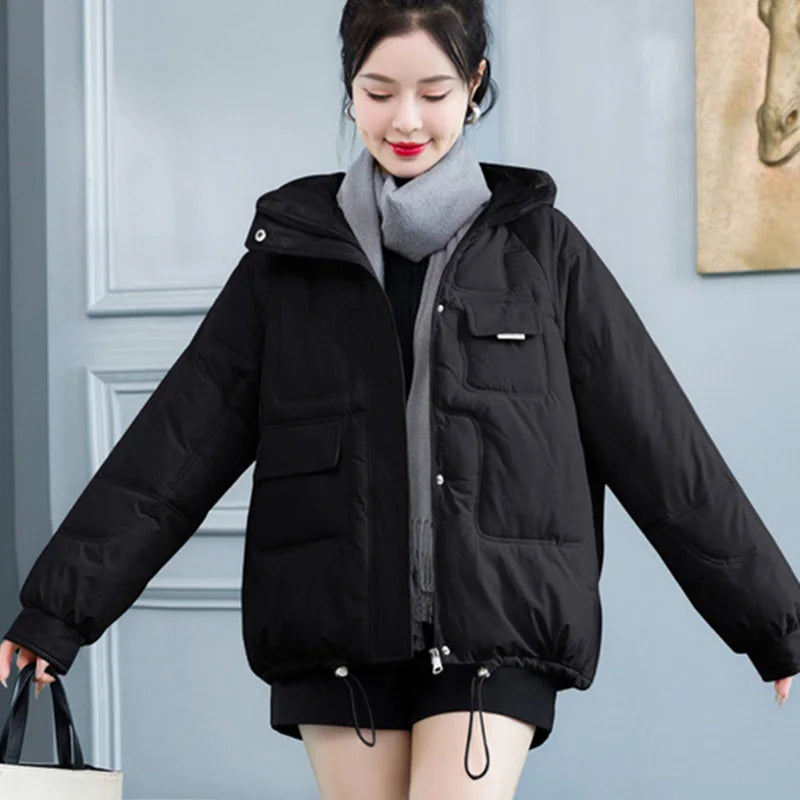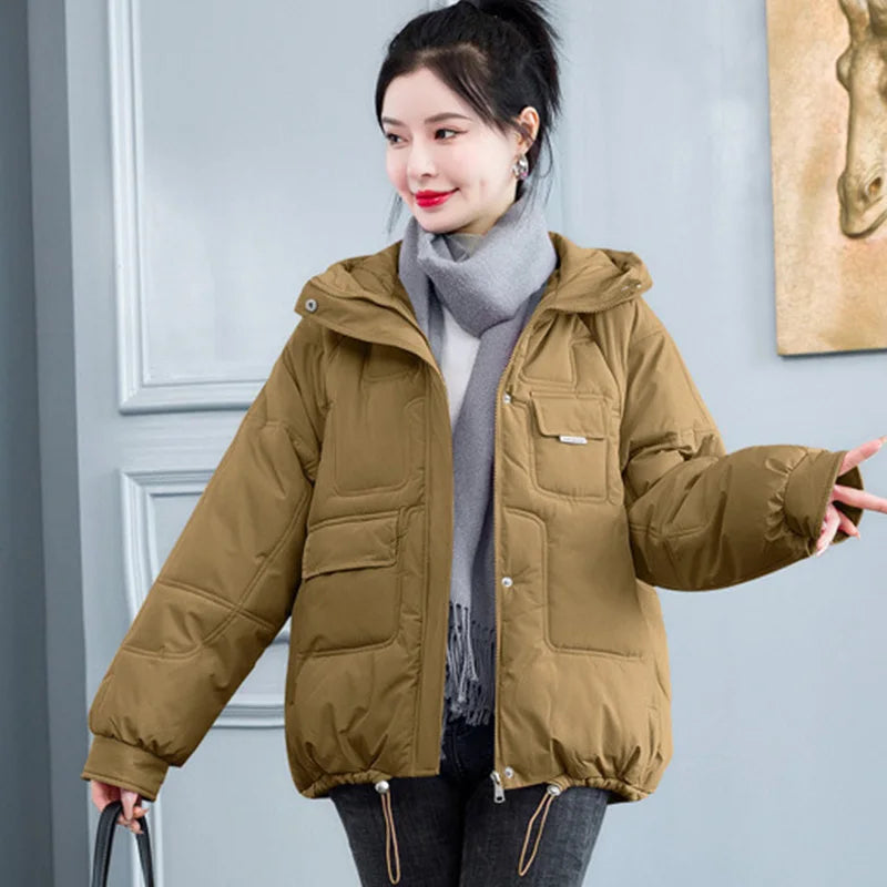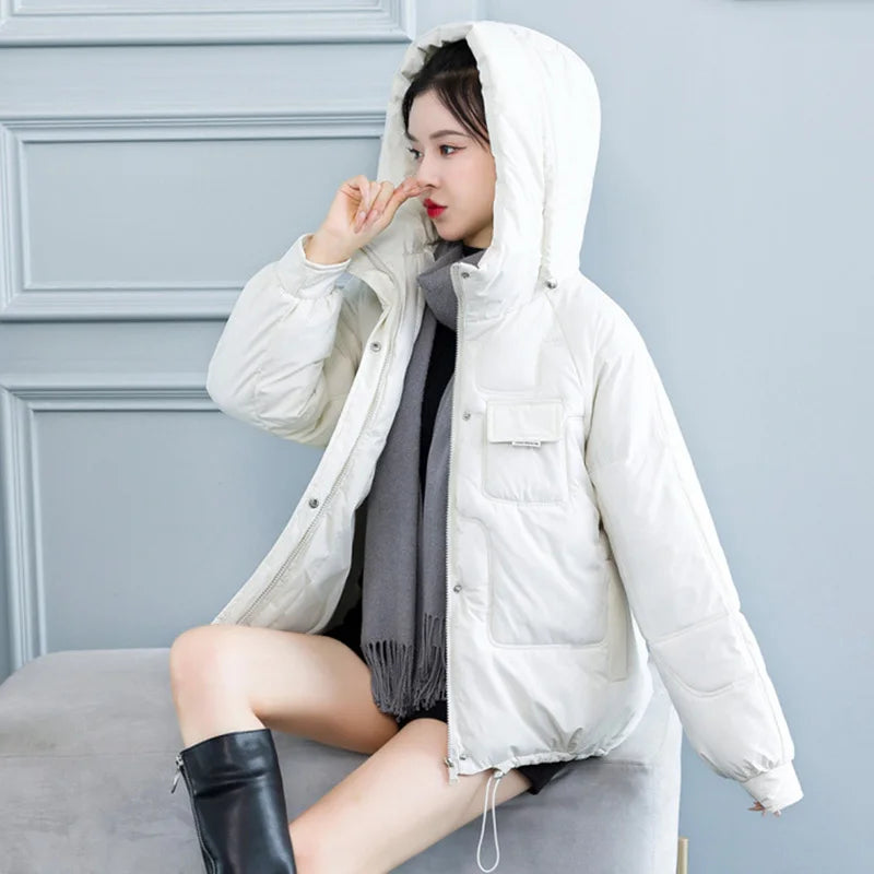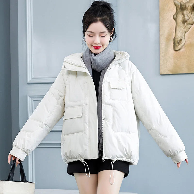 Concise Thicken Keep Warm Parkas Women Turn Down Collar Hooded Parka Jacket
