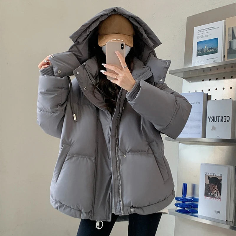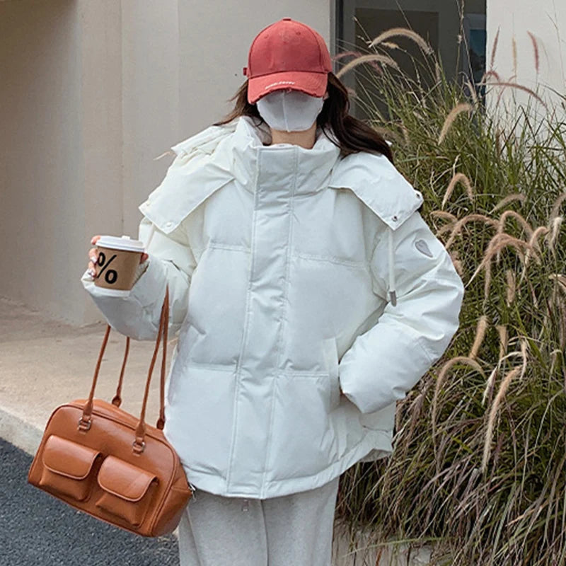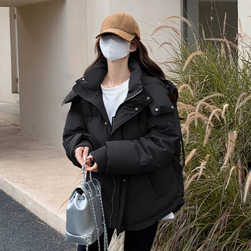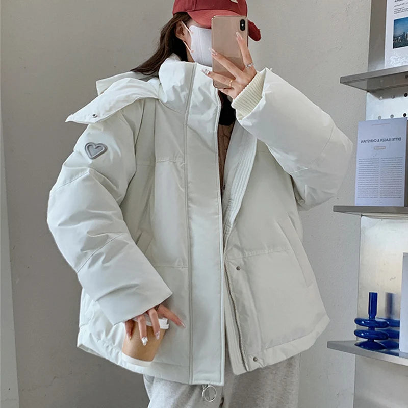 Fashion Heart Pattern Women s Winter Parka Stand Collar Hooded Parka Jacket