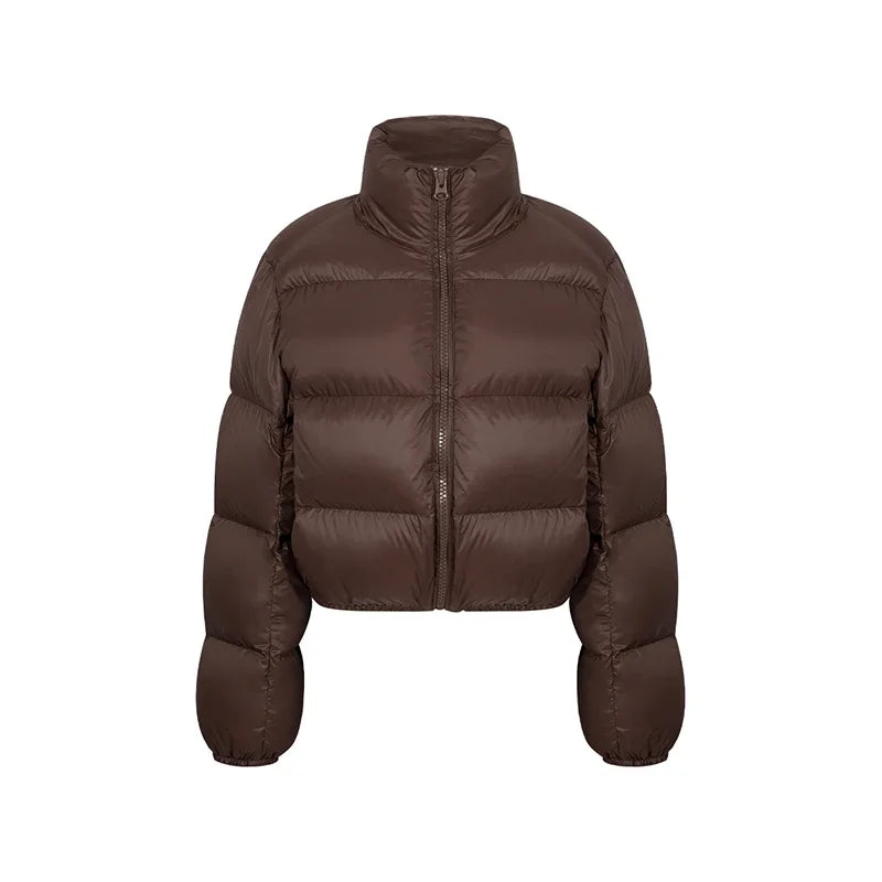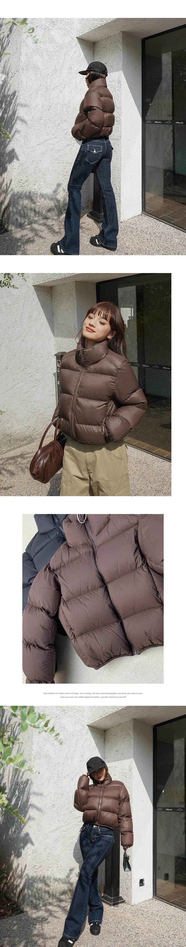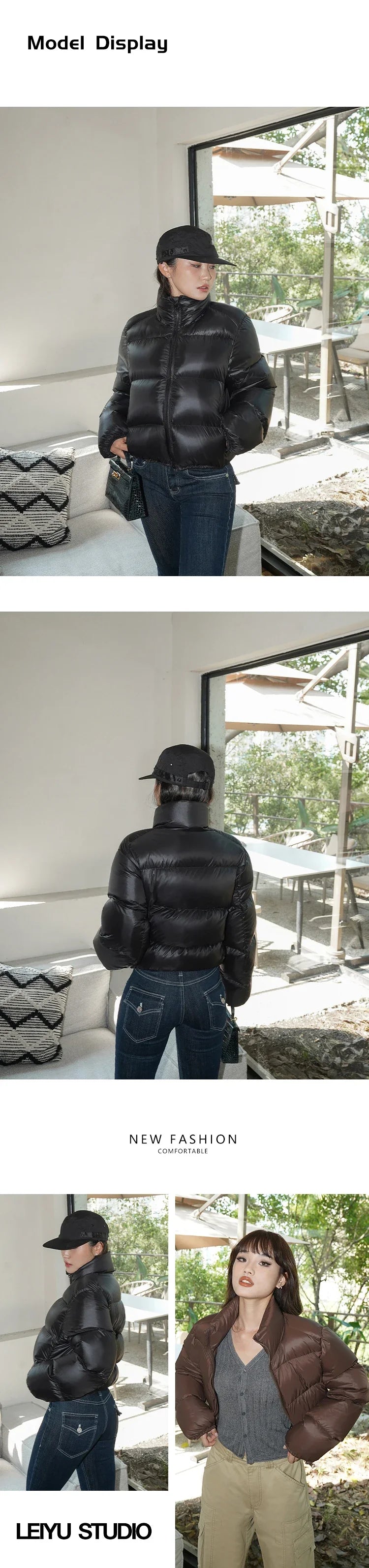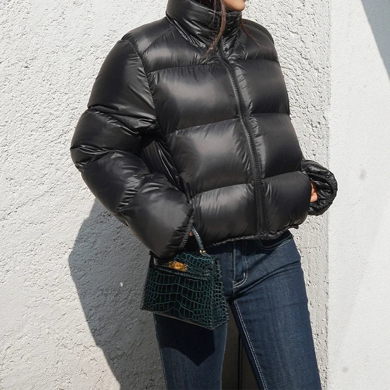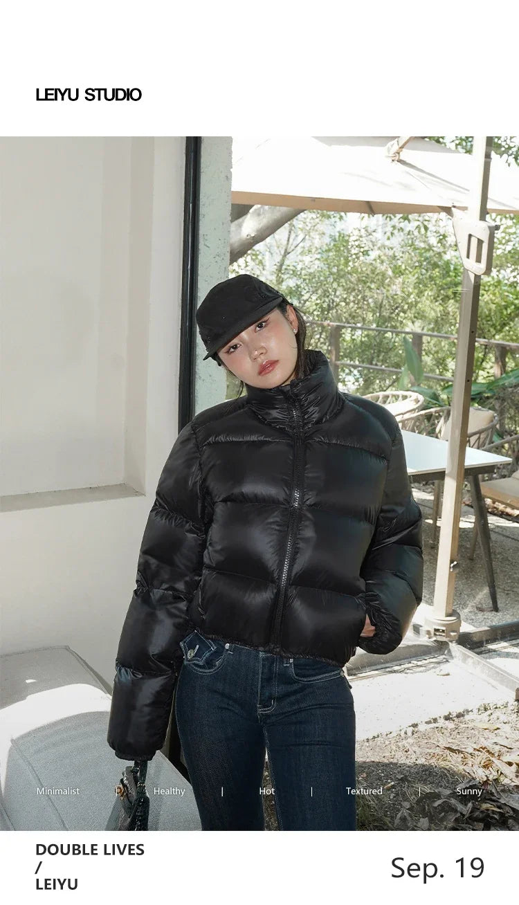 HELIAR Autumn Women Button Up Women Loose Cotton Coat Mock Neck PU Jacket Casual Winter Thicken Warm Soli...