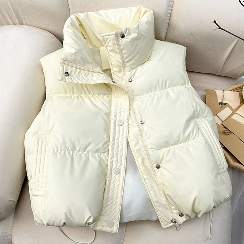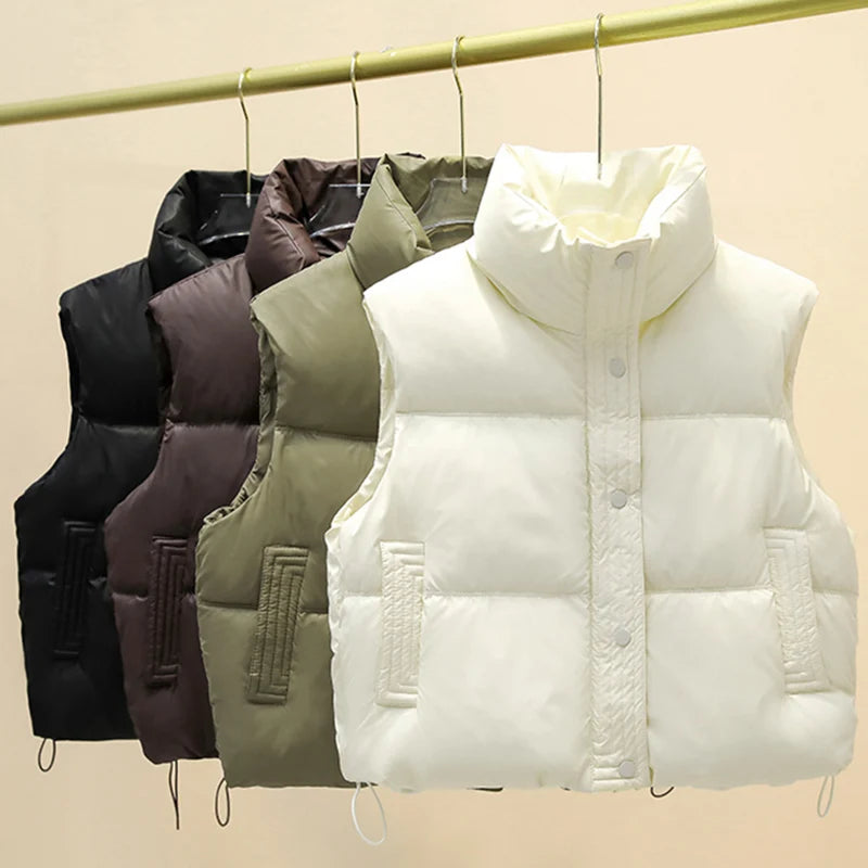 HELIAR Women Warm Casual Solid Sleeveless Vest Coat Mock Neck Thicken Jacket Buttons Up Loose Women Down ...