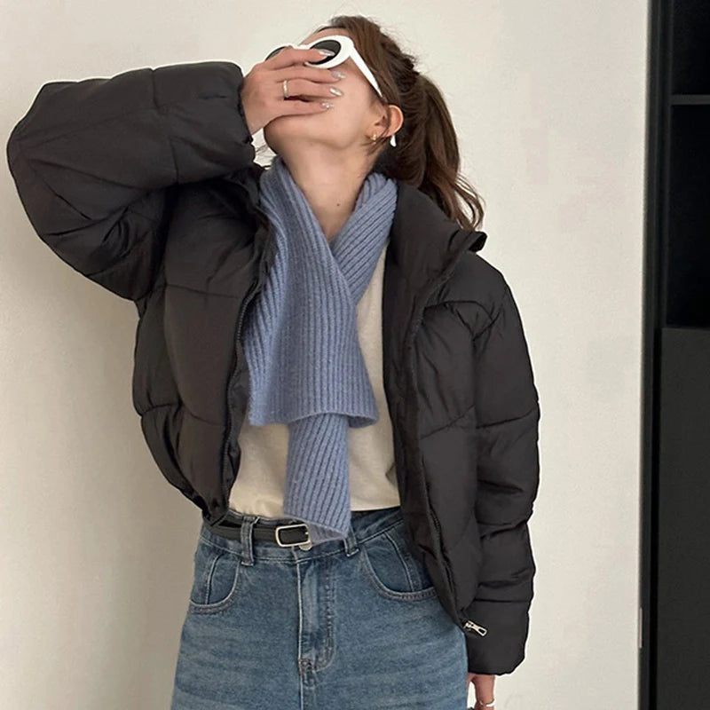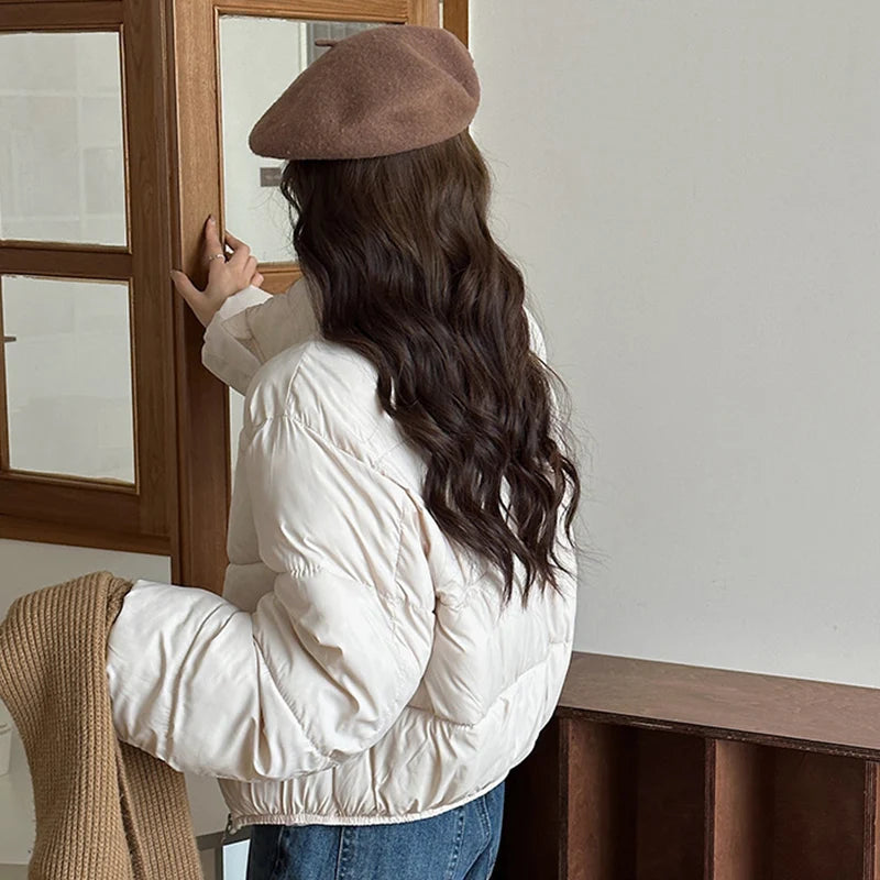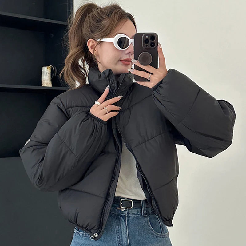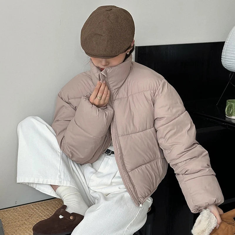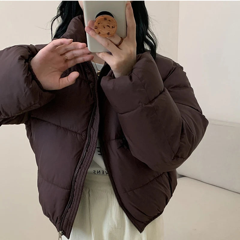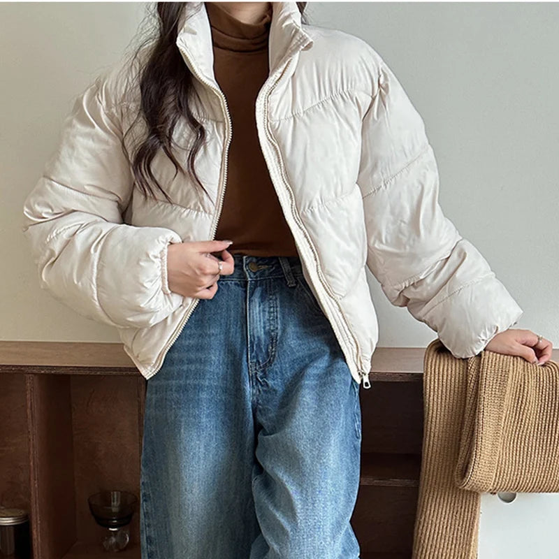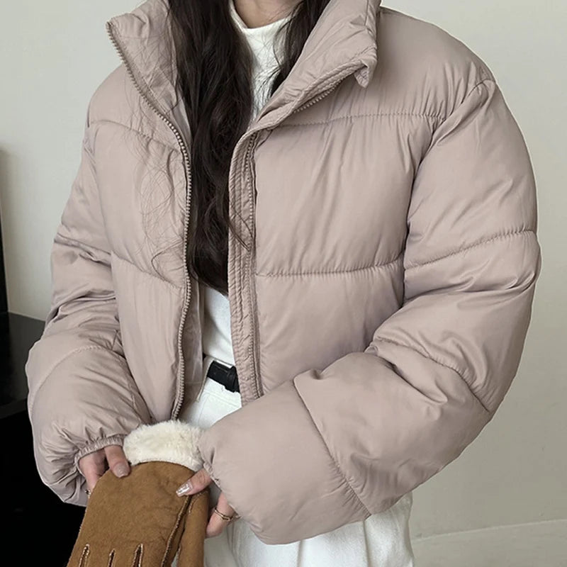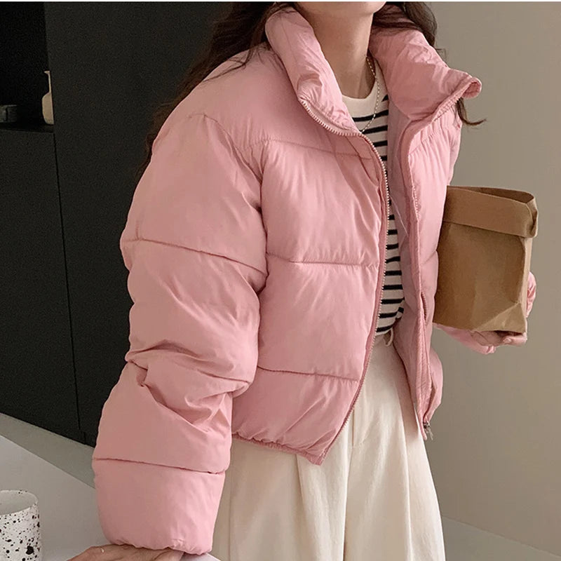 Stand Collar Short Cotton Jacket Women Puffy Thicken Keep Warm Parka Jacket