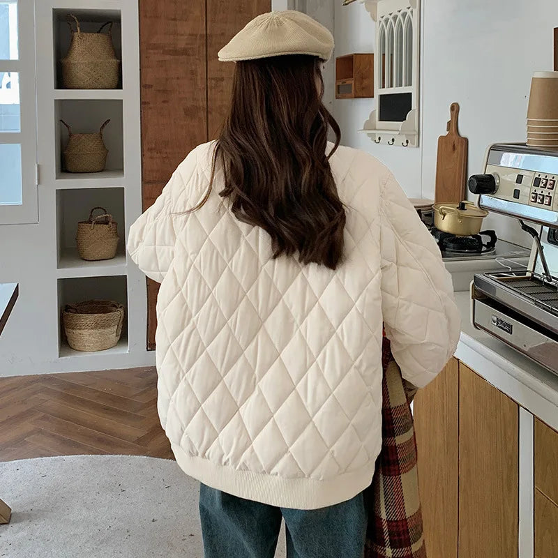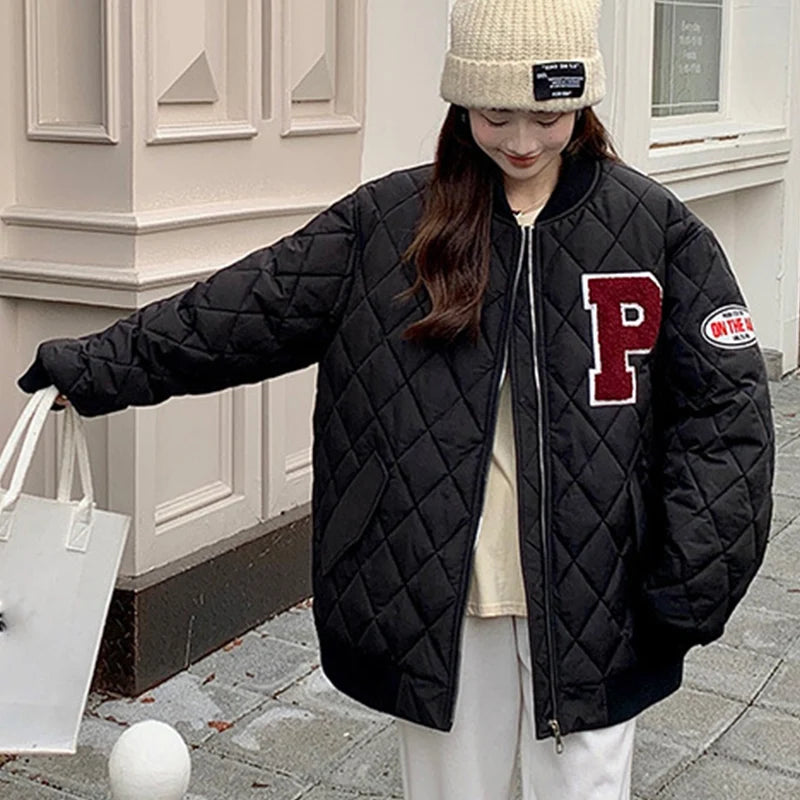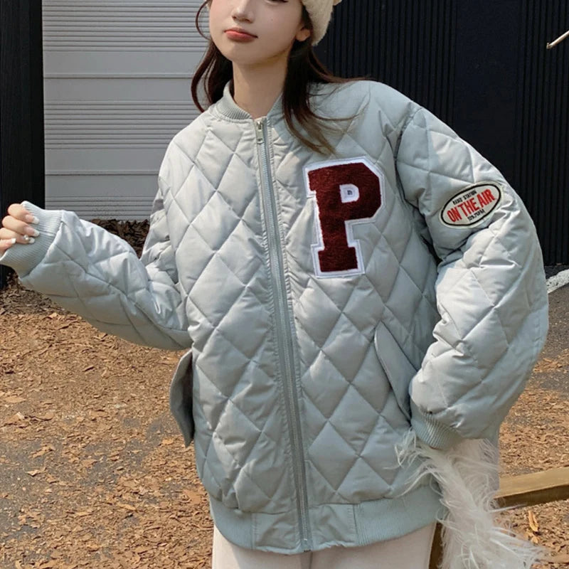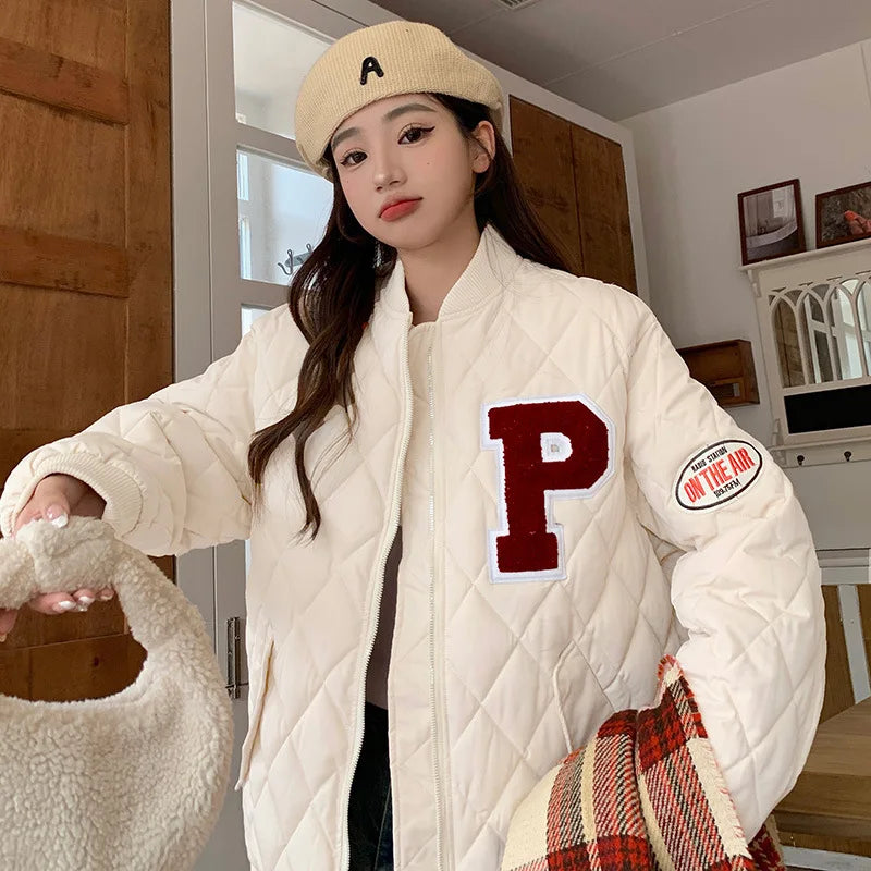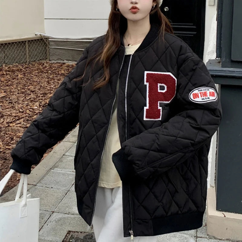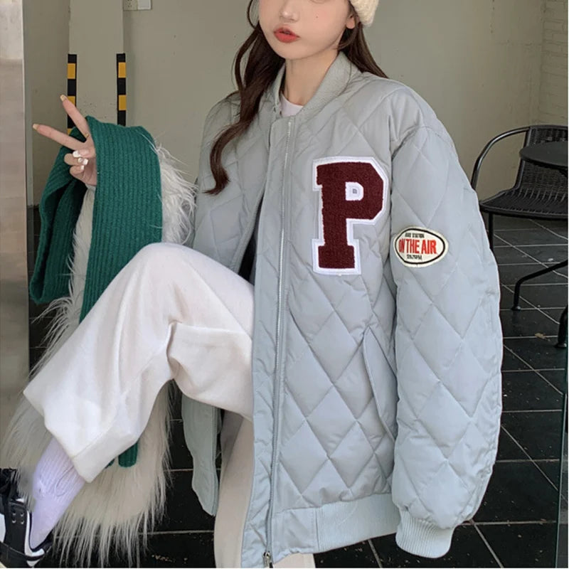 Streetwear Letter Embroidery Parkas Women Zipper Up Thick Cotton Jackets Woman
