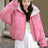 Korean Pink Down Cotton Padded Jacket Women Round Neck Si...