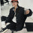 Korean Stand Collar Parkas for Women Black Zipper Up Warm...