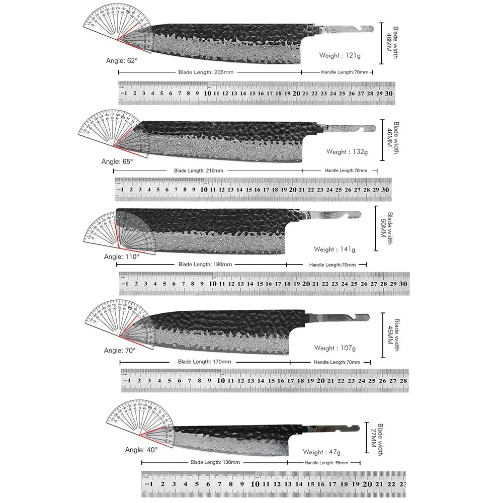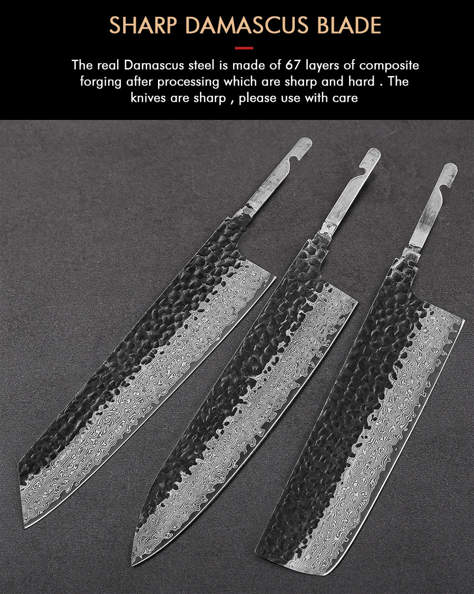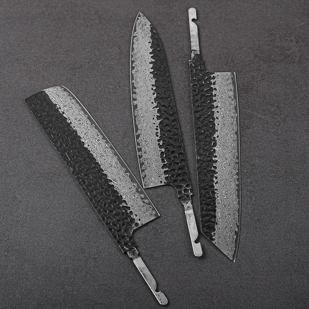 TURWHO 1-5 Pieces Japanese Chef Knives Blank Blade DIY Damascus Steel VG10 Kitchen Knife Set DIY Knife Ma...
