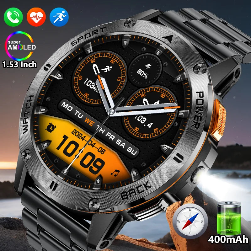 LIGE New Smart Watch IP68 Waterproof For Men Bluetooth Call Health Monitor With Flashlight 100+ Sports Modes Smartwatch 400mAh