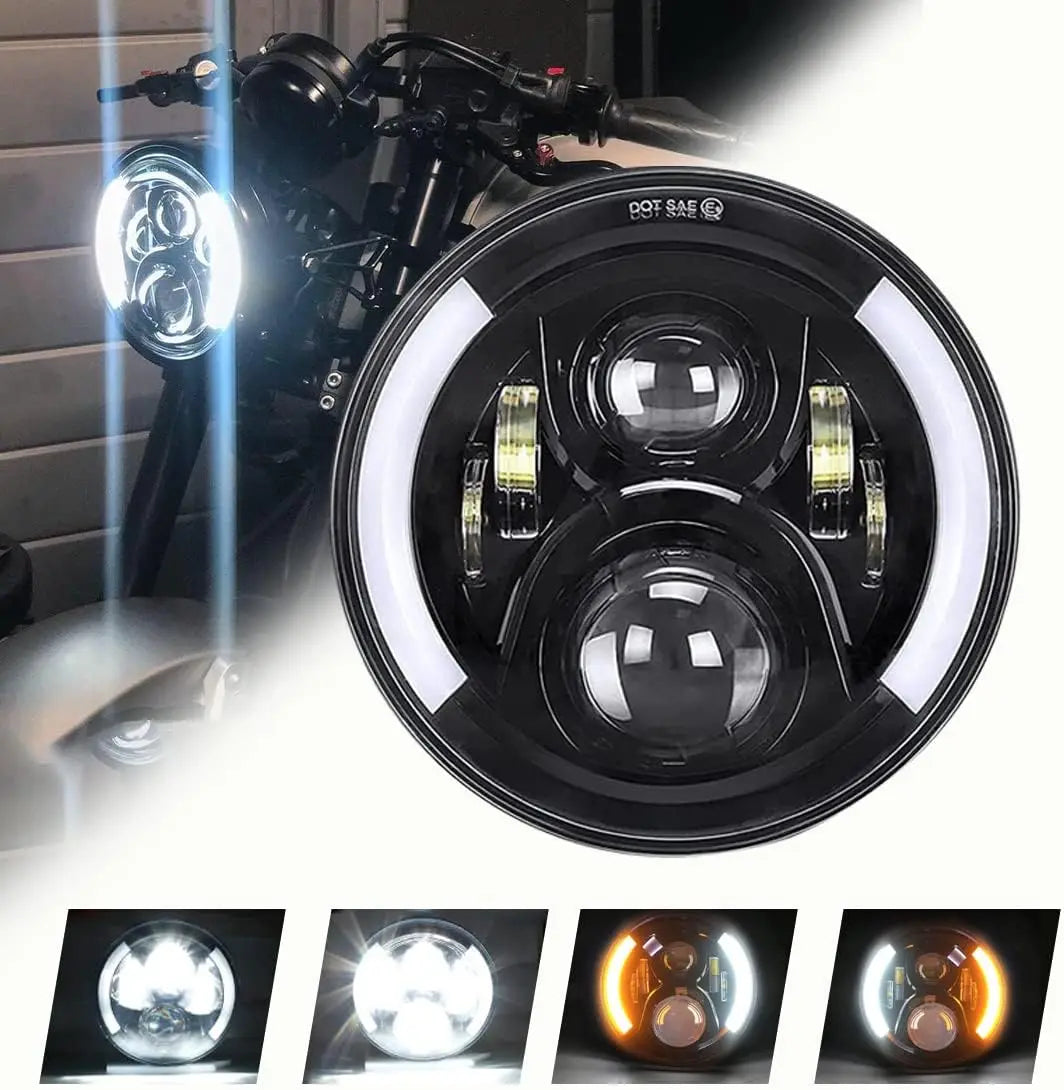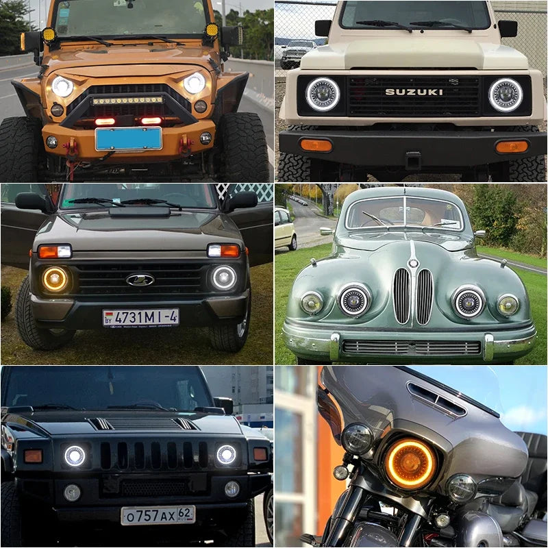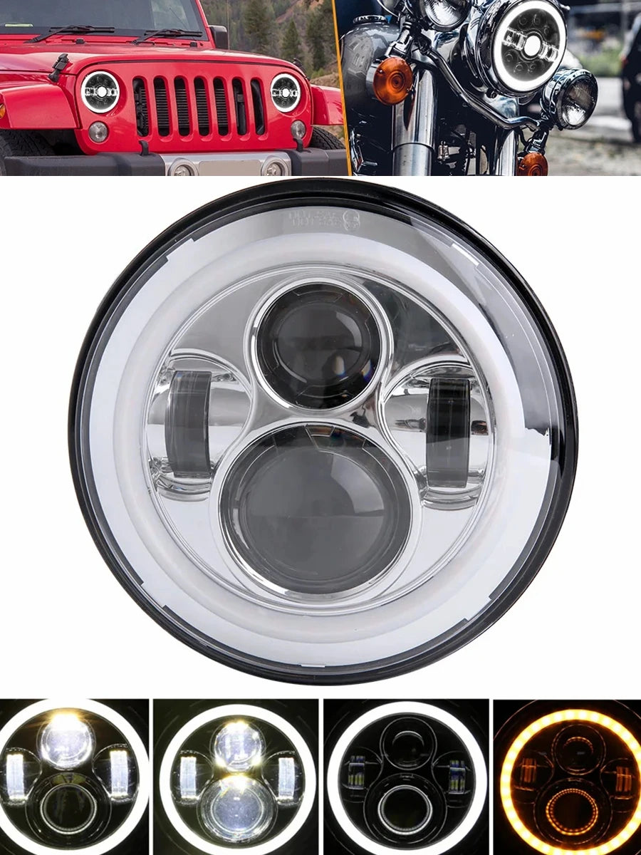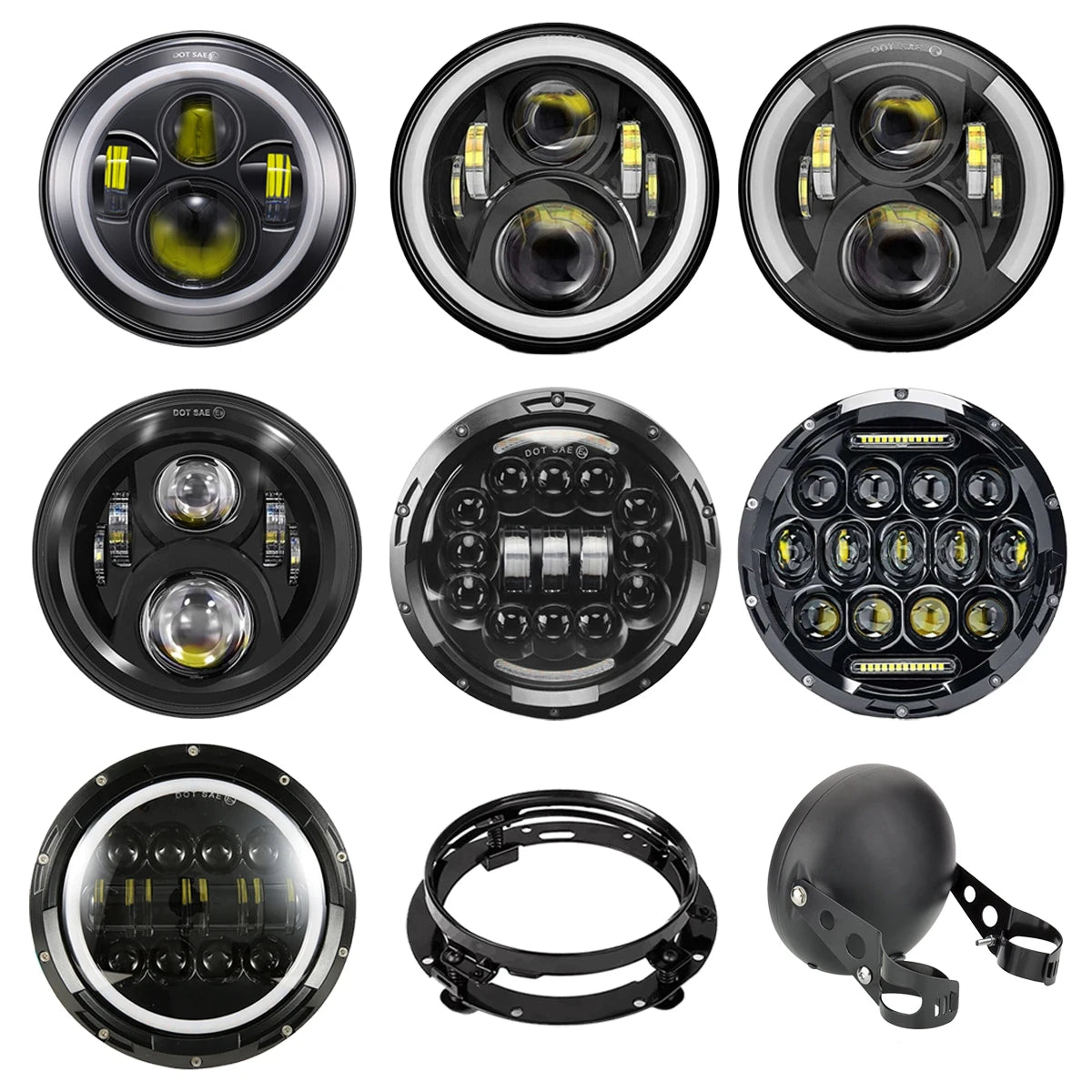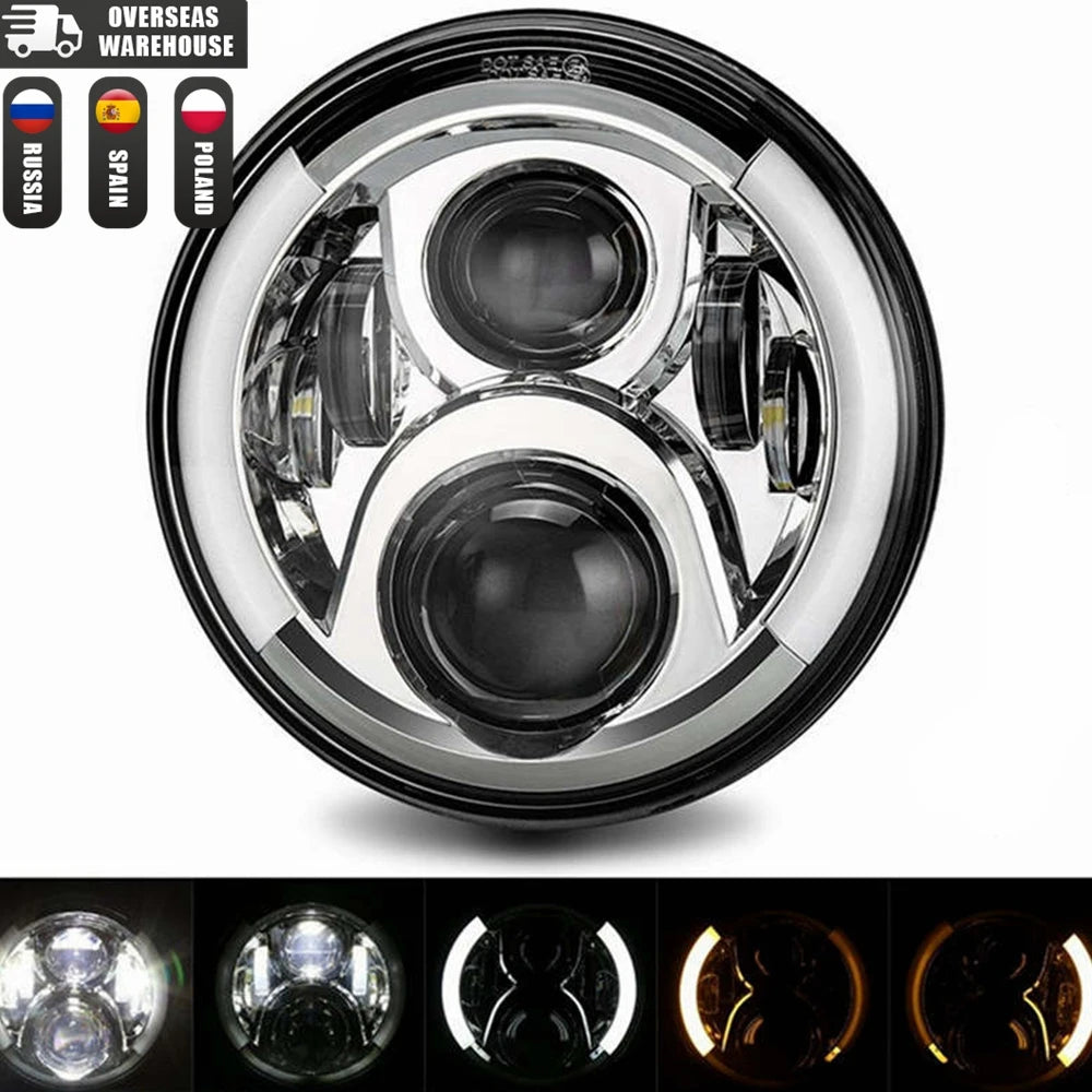 7 Inch Led Auto Headlight Motorcycle LED Headlight DRL Angel Eyes for Harley Honda Yamaha Jeep Lada Niva ...