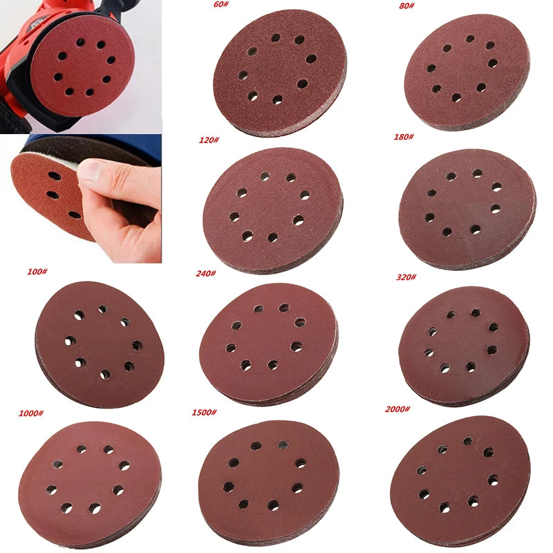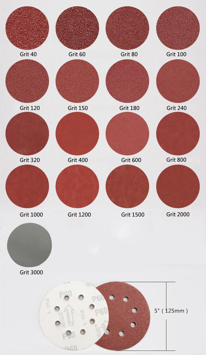 10pcs 125mm Sanding Discs 8 Hole Hook Loop Sandpaper 40Grit-3000Grit Sanding Paper Sanding Disc Abrasive ...