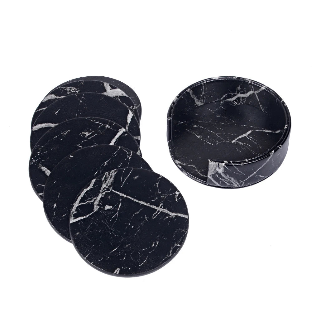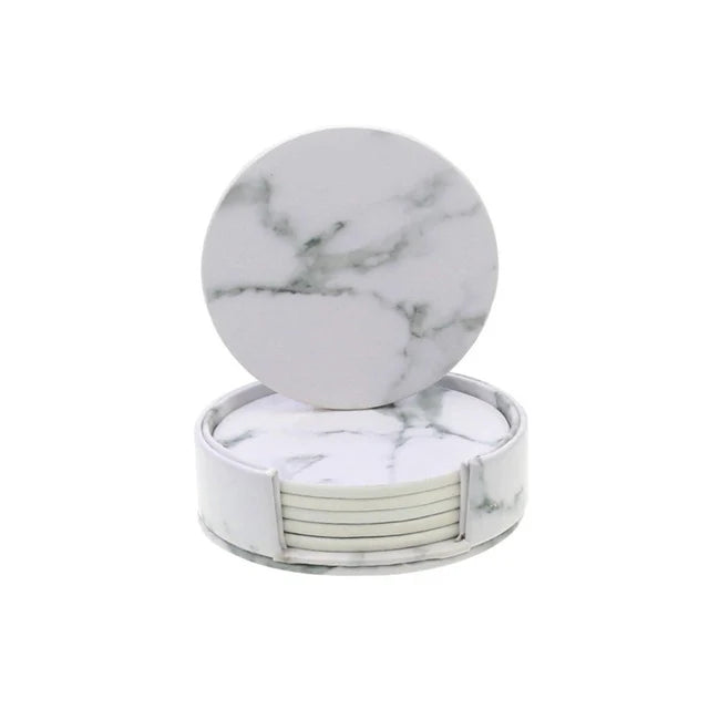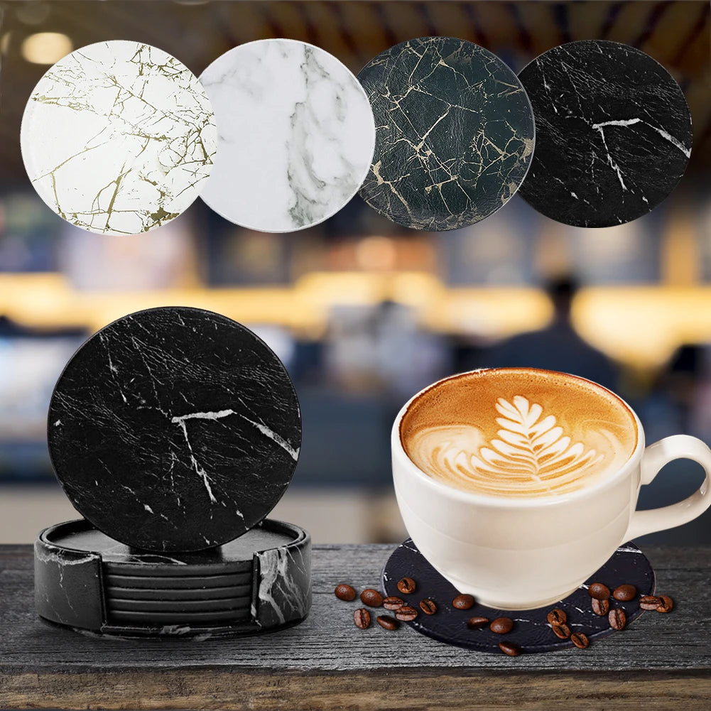 1PC/6PCS Artificial Leather Marble Coaster Drink Coffee Cup Mat Table Placemats Round Heat-resistant Tea ...