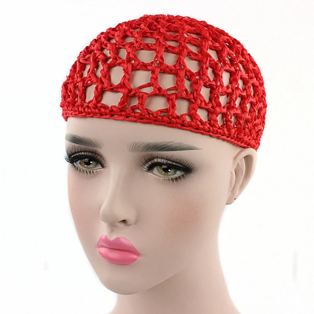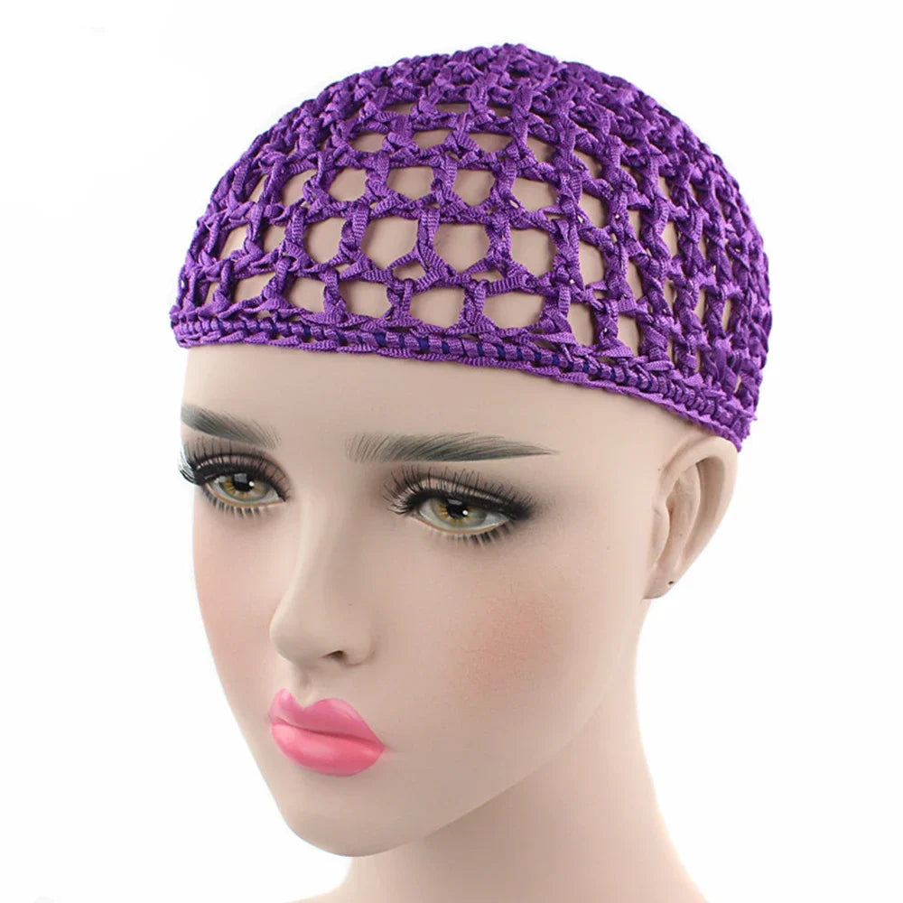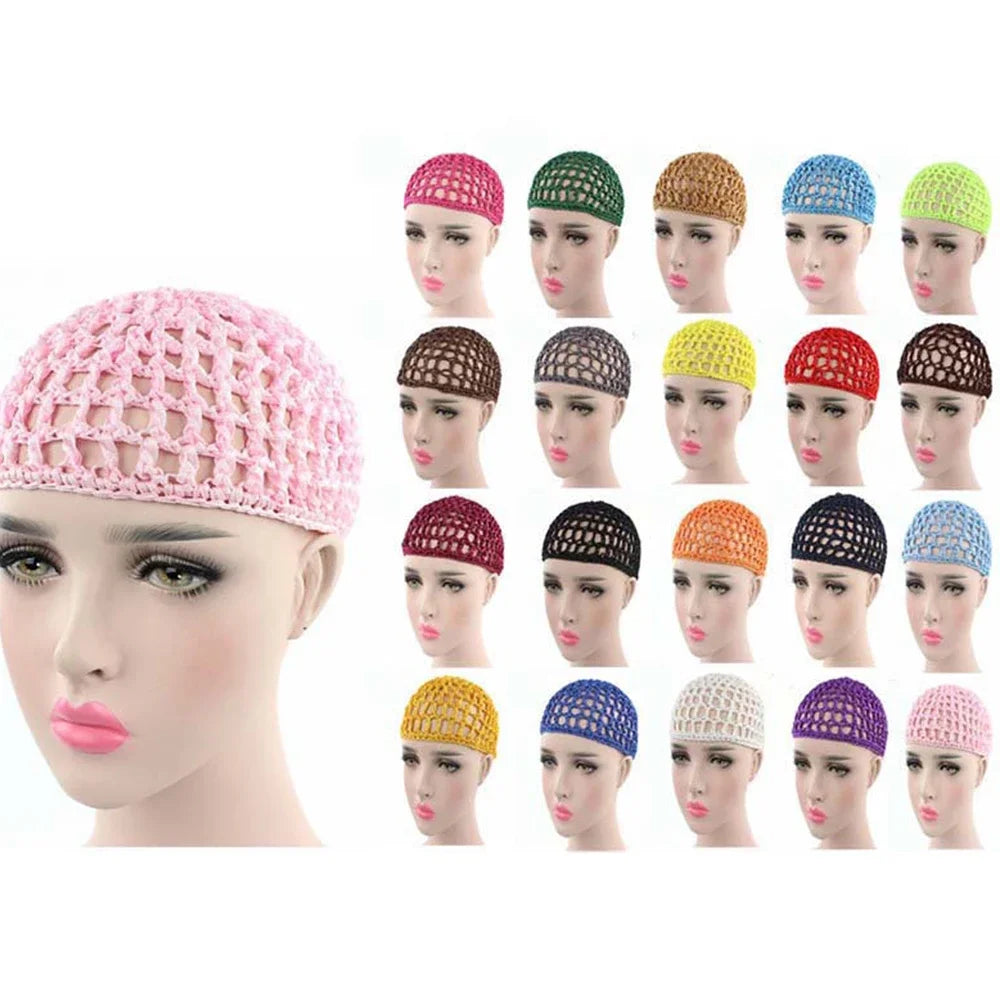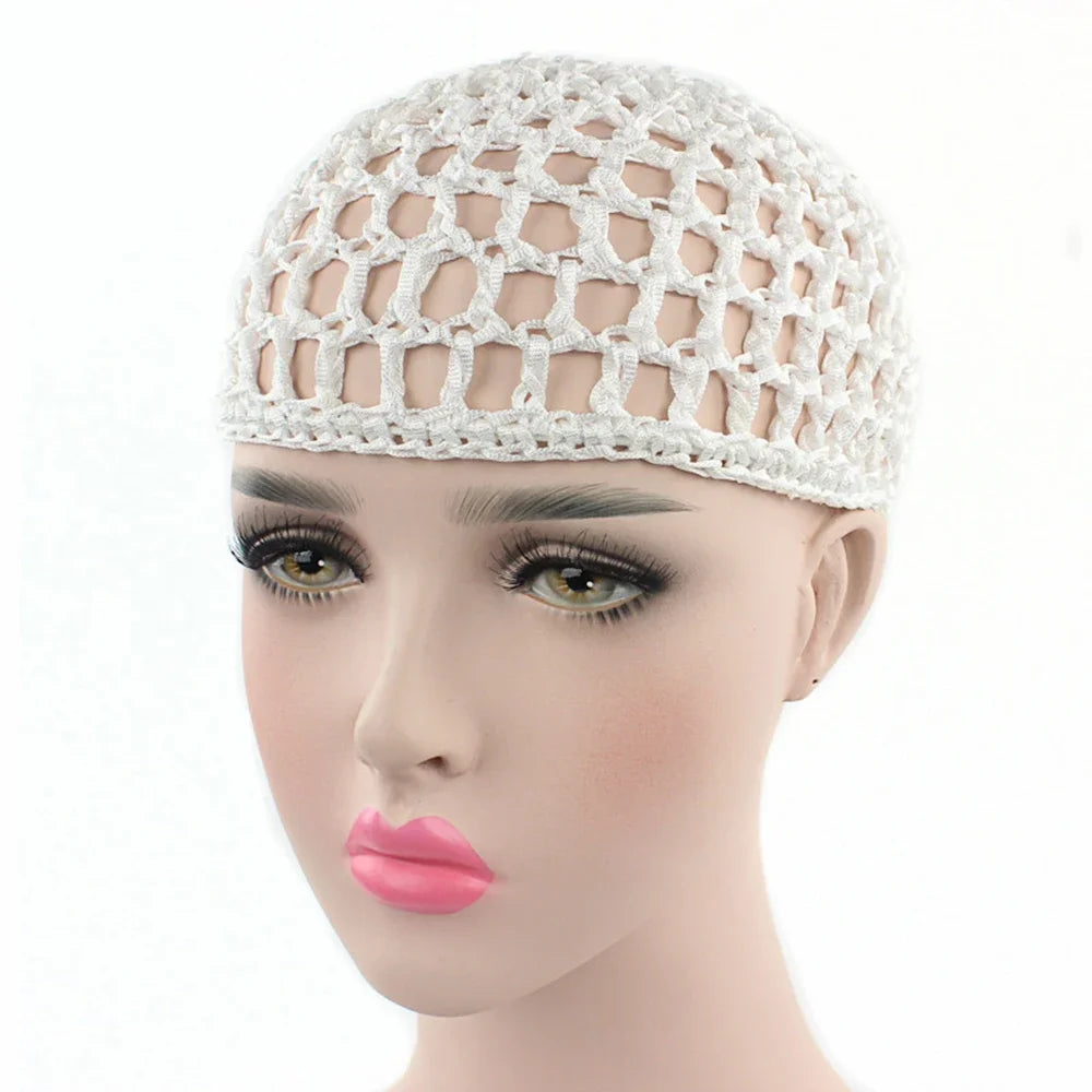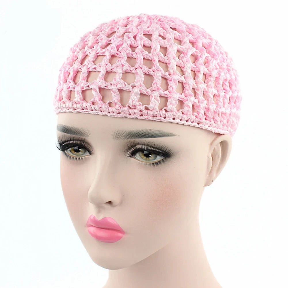 2024 New Women's Mesh Hair Net Crochet Cap Solid Color Leisure Sleeping Night Cover Turban Hat Popular Ca...