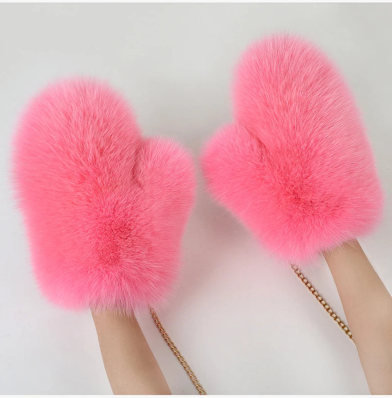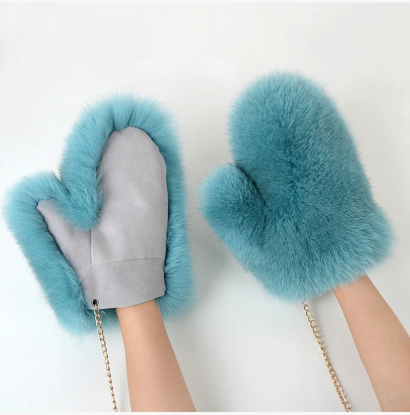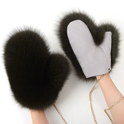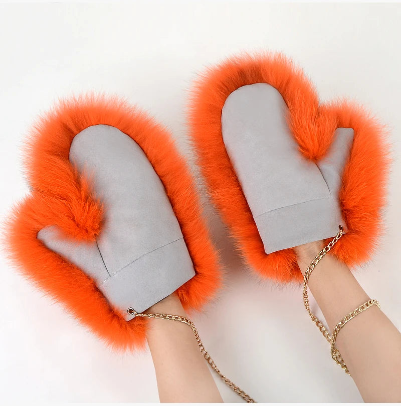 Winter Women Natural Real Fox Fur Gloves Warm 100 Fox Fur Mittens Girl Fashio...