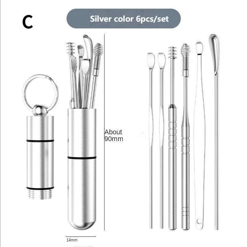 6/7/8Pcs Set Ear Wax Pickers Cleaning Stainless Steel Earpick Wax Remover Curette Ear Pick Cleaner Ear Cl...
