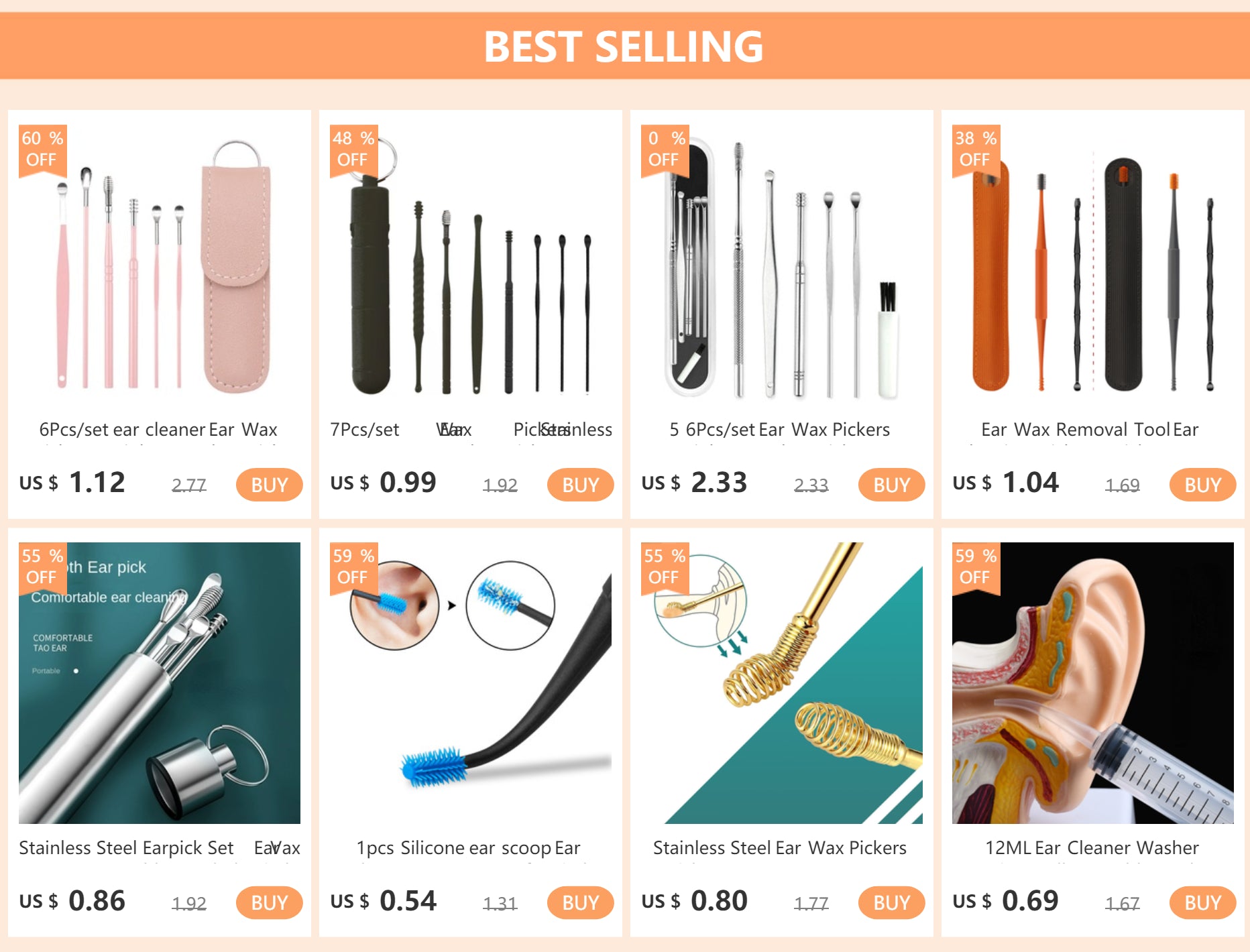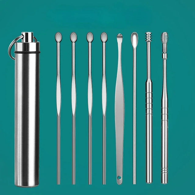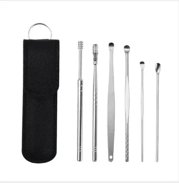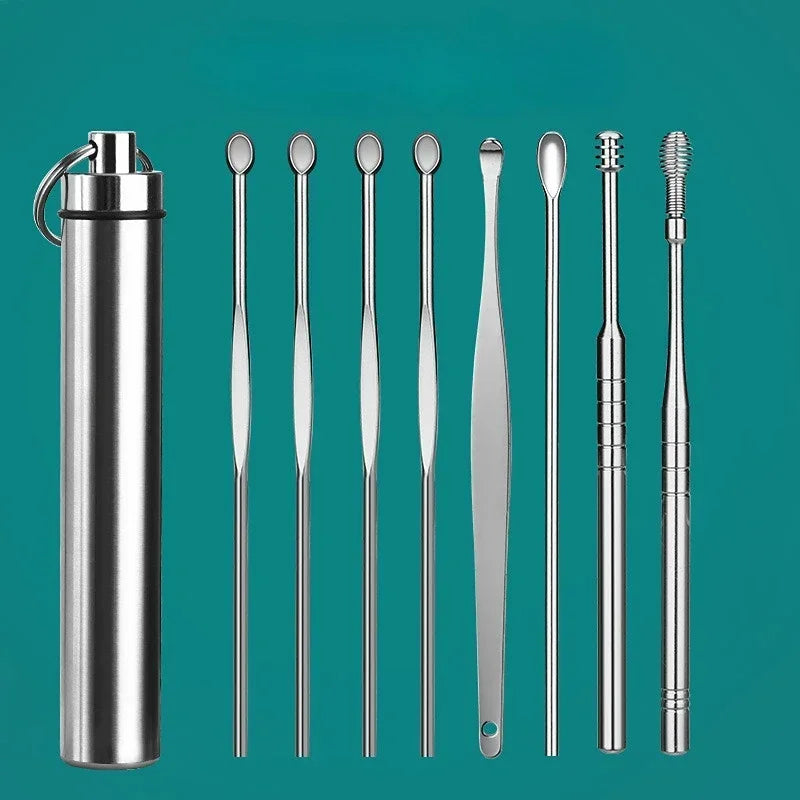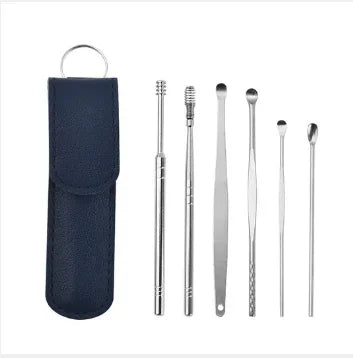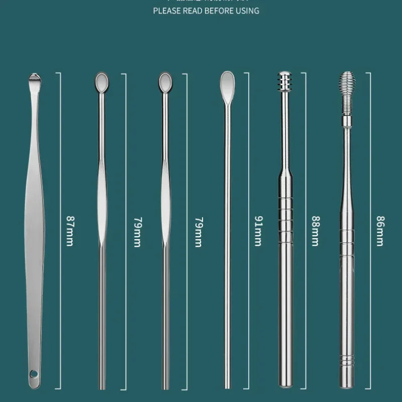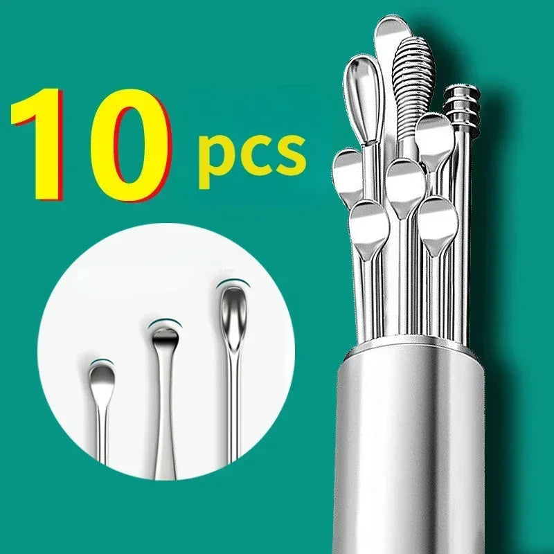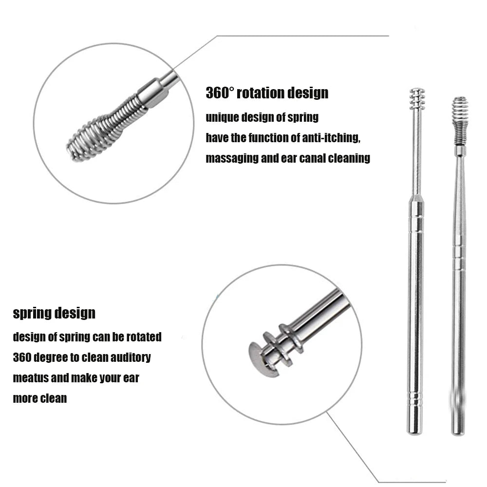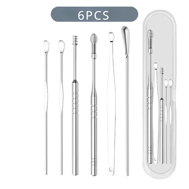 6/8PCS Stainless Steel Earpick Ear Cleaner Spoon Ear Care Cleaning Tool Earwax Removal Kit Ear Pick Wax R...