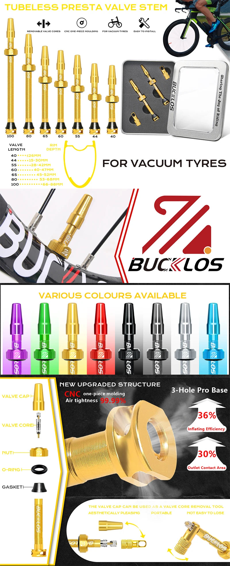 Bucklos Presta Bicycle Valve F V Tubeless Bike Valves 40mm 44mm Road Bicycle ...