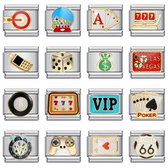 Darts Dice Poker Dollar Soccer Shaped Italian Charms Fit 9mm Italian Bracelet Bangle Women Men Making DIY...