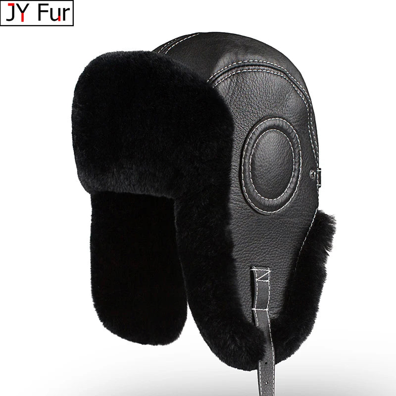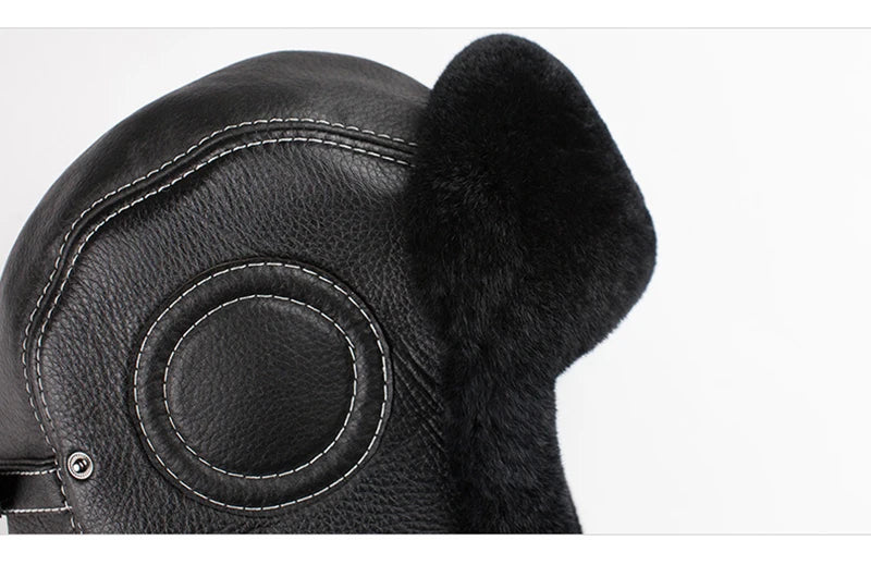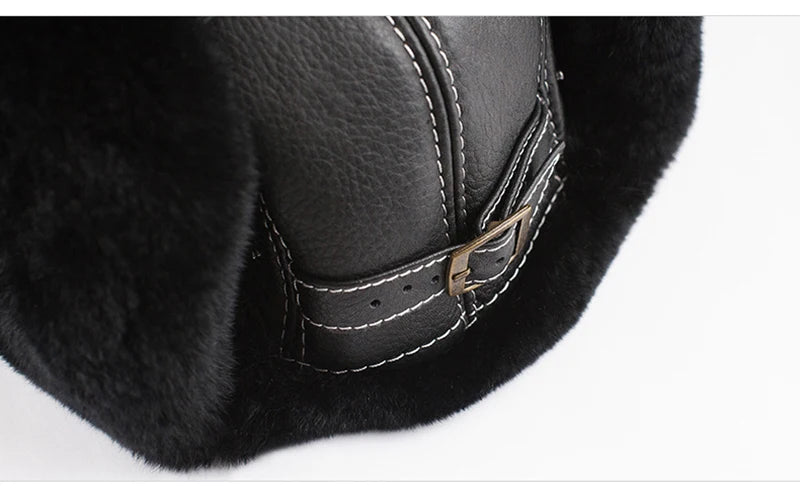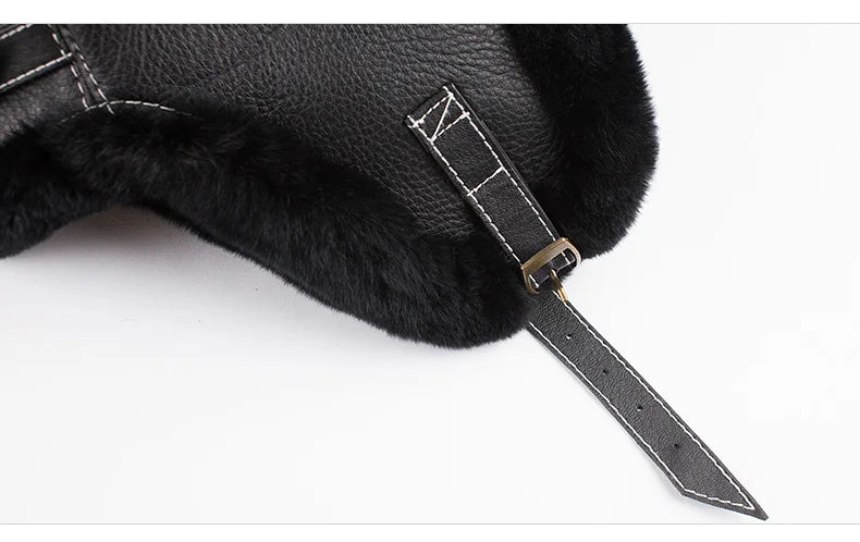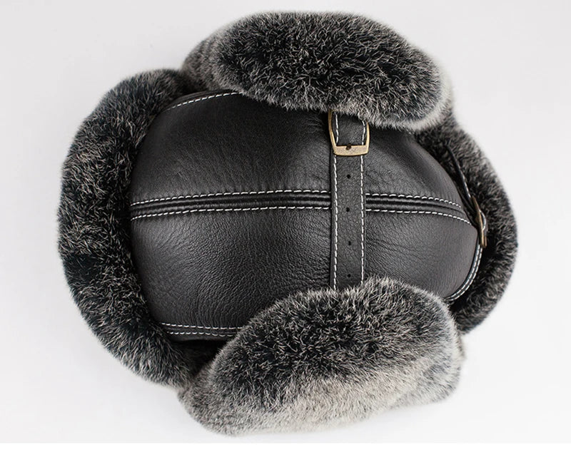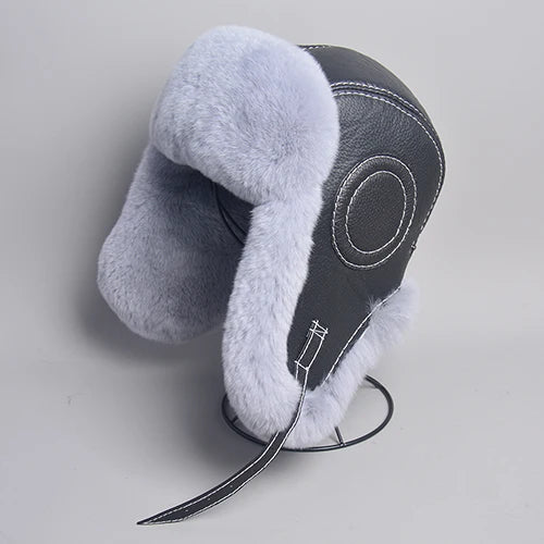 Fashion MEN Winter Bomber Hats Rex Rabbit Fur Earflap Russian Ushanka Men Tra...