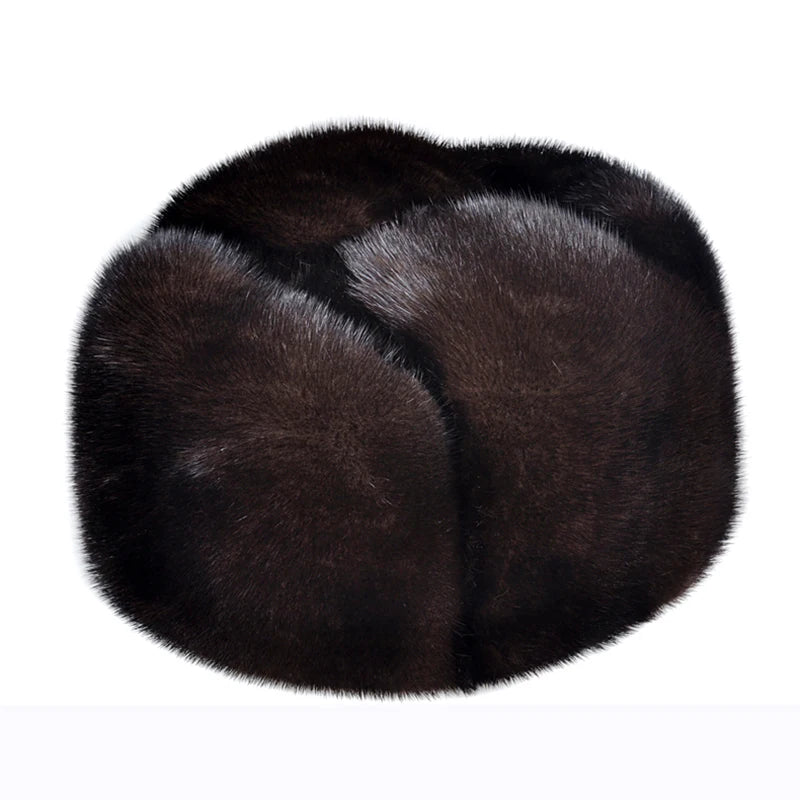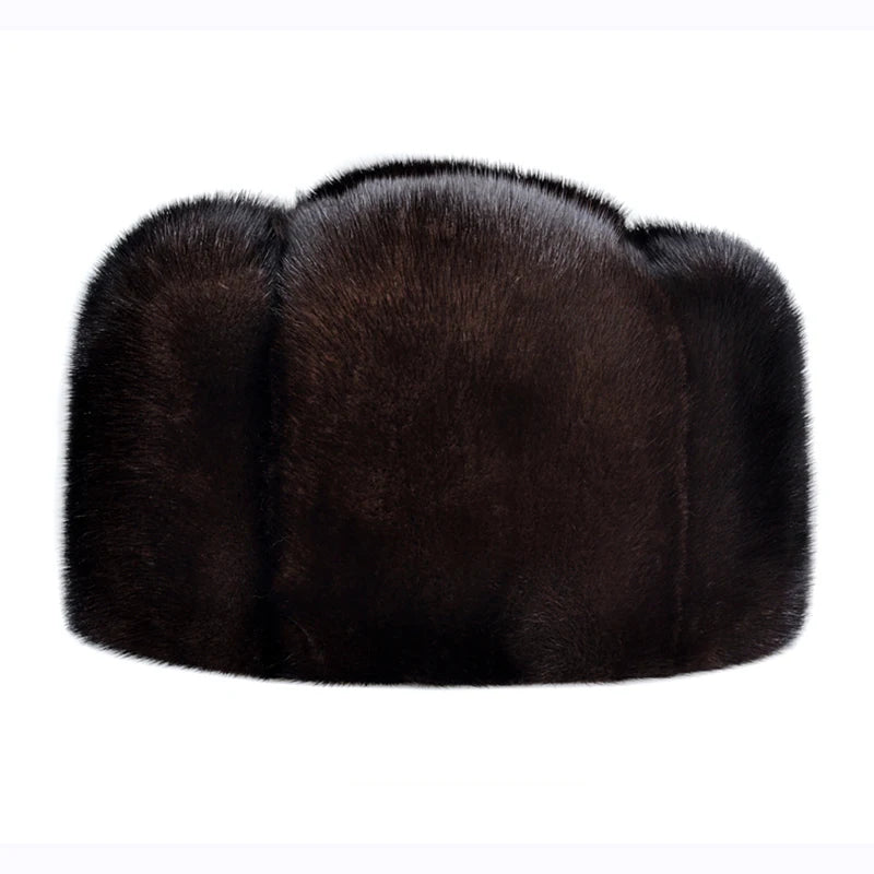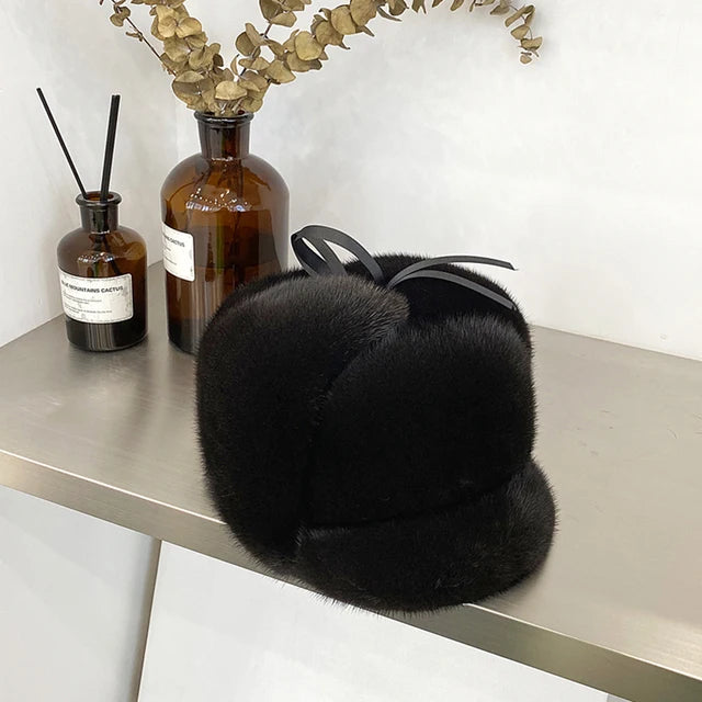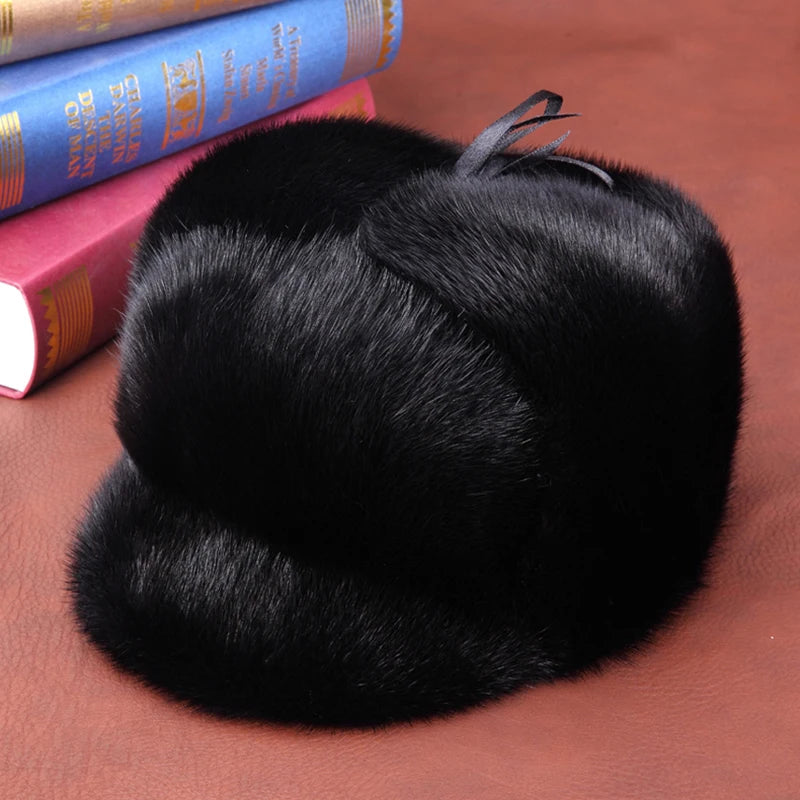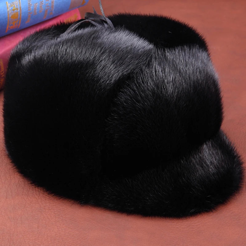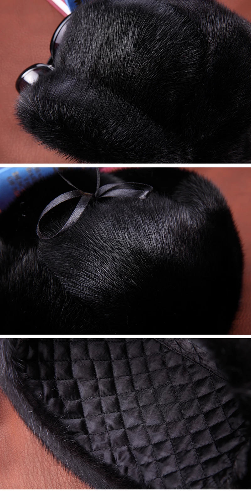 Fashion Mink Fur Bomber Hat Black Ski Cavalry Catcher Cold Snow Cap Winter Fu...