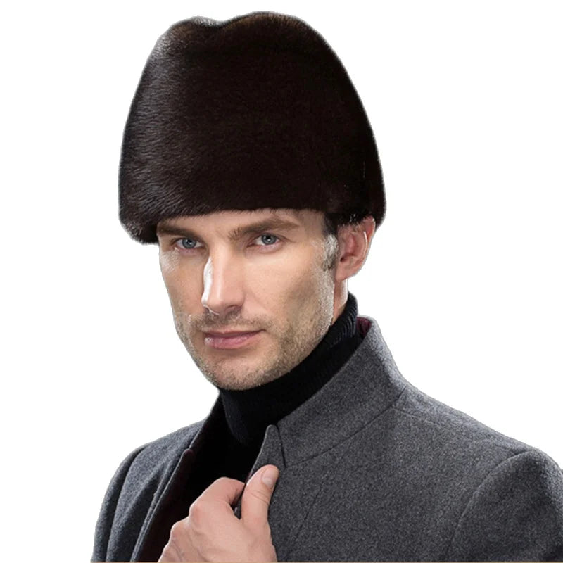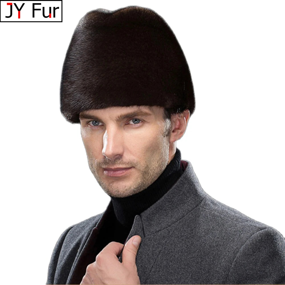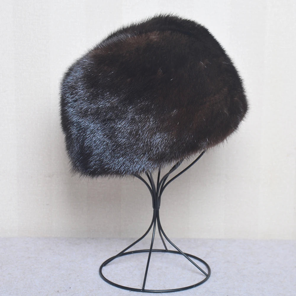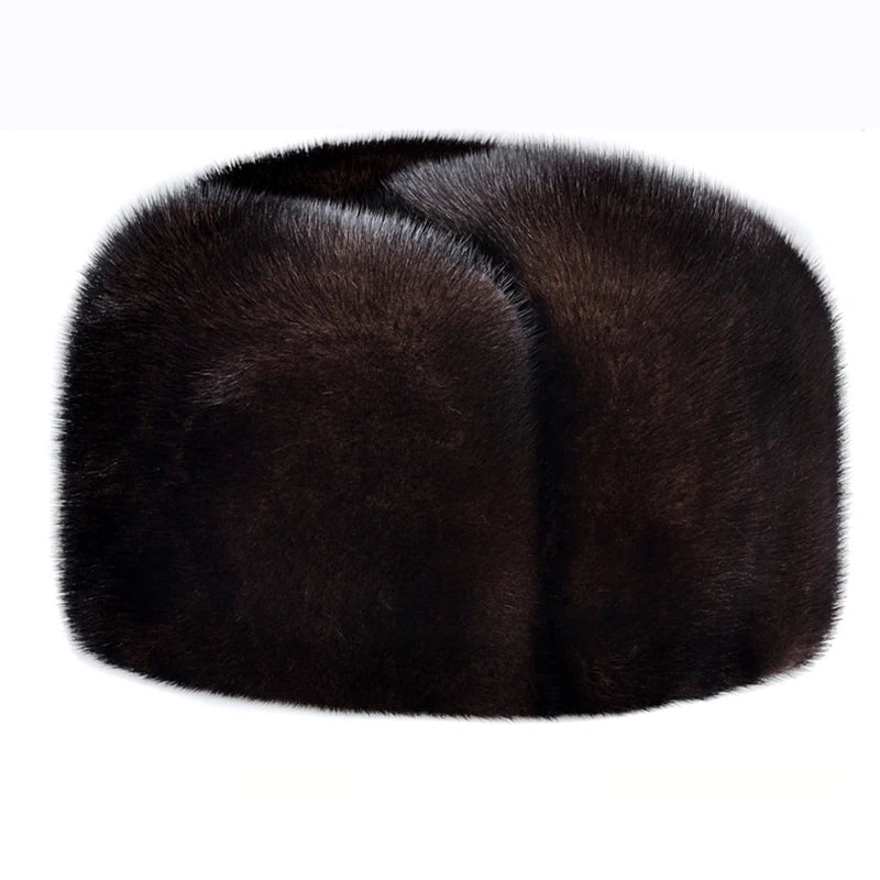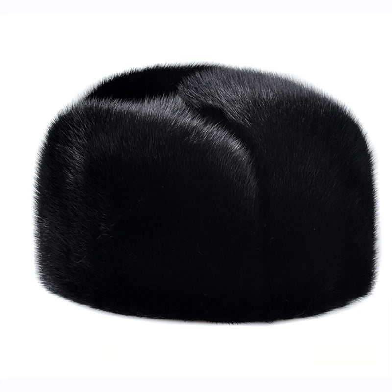 Fashion Mink Fur Bomber Hat Black Ski Cavalry Catcher Cold Snow Cap Winter Fu...