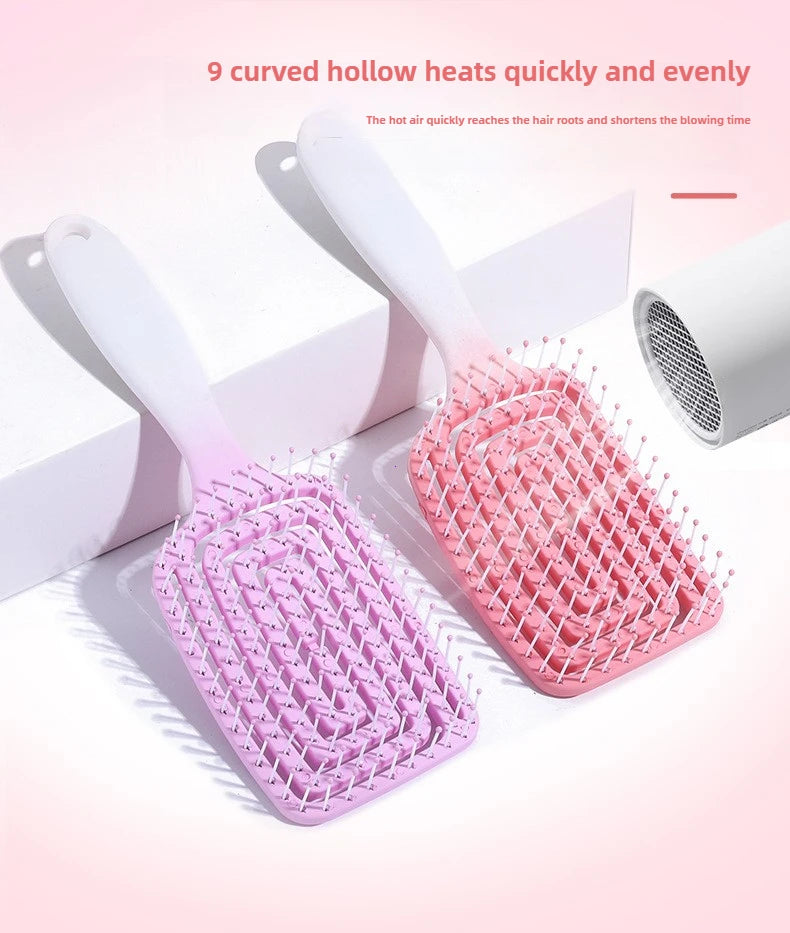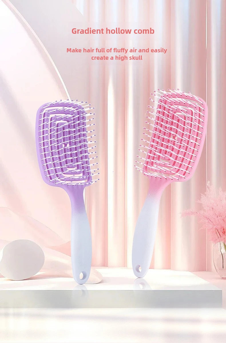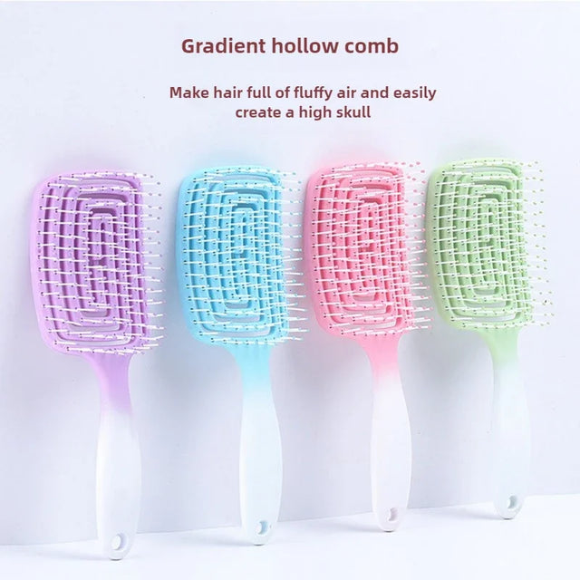 Gradient Color Hollow Out Massage Comb Detangling Hair Brush Wet Curly Hair Brushes Barber Comb Home Wome...