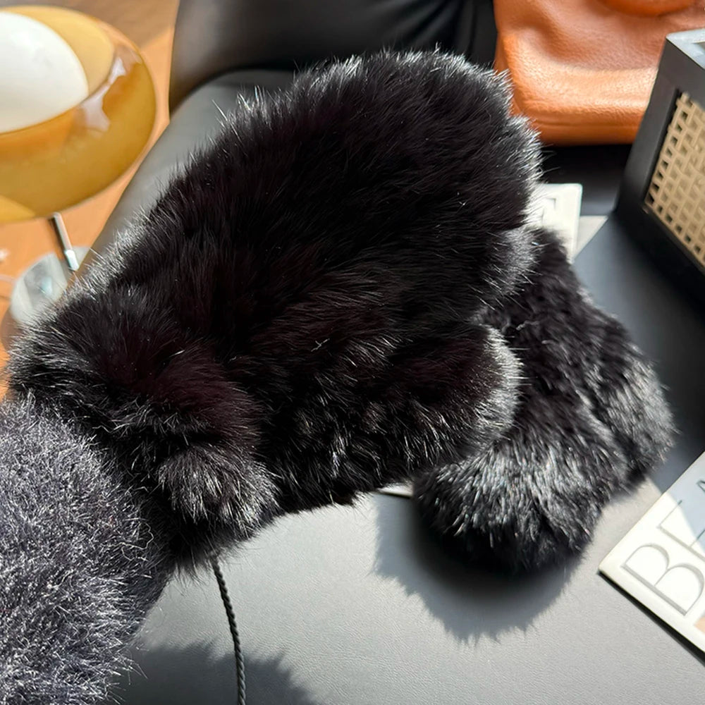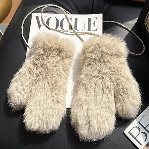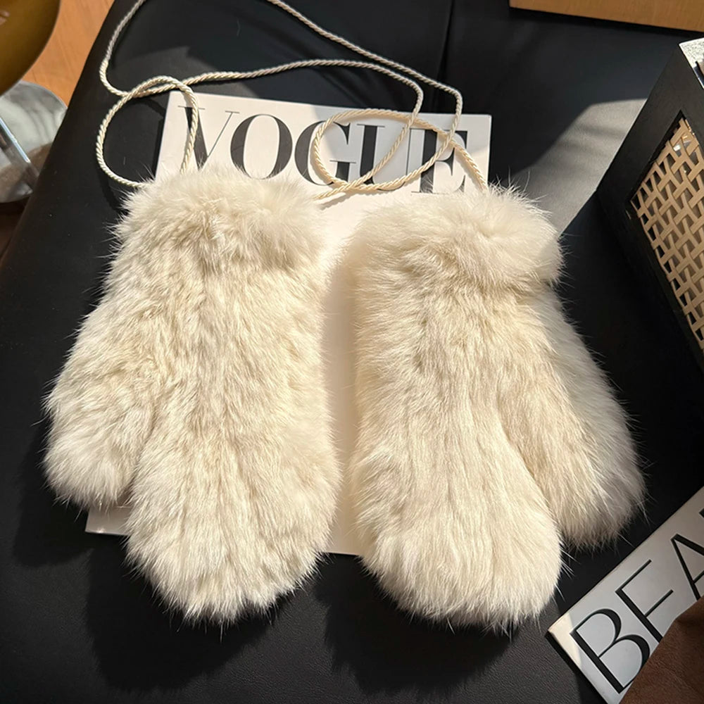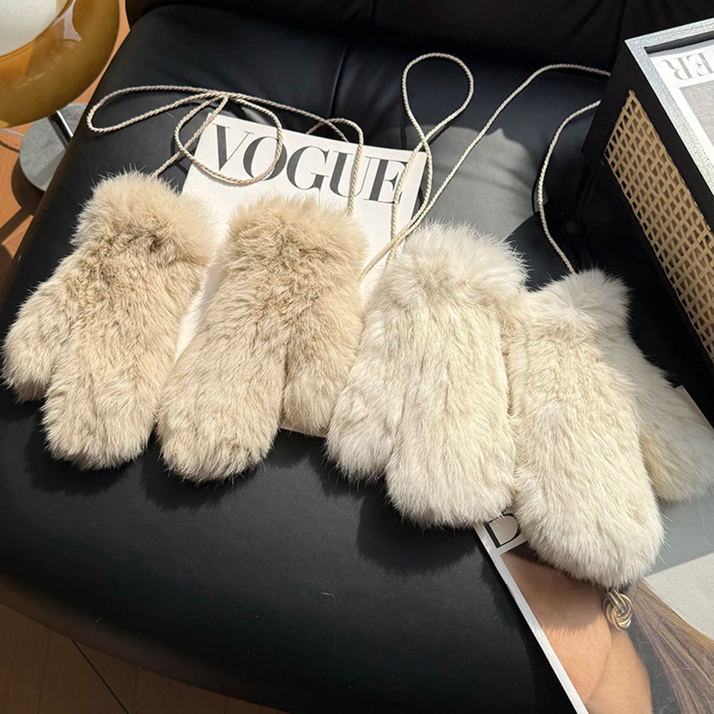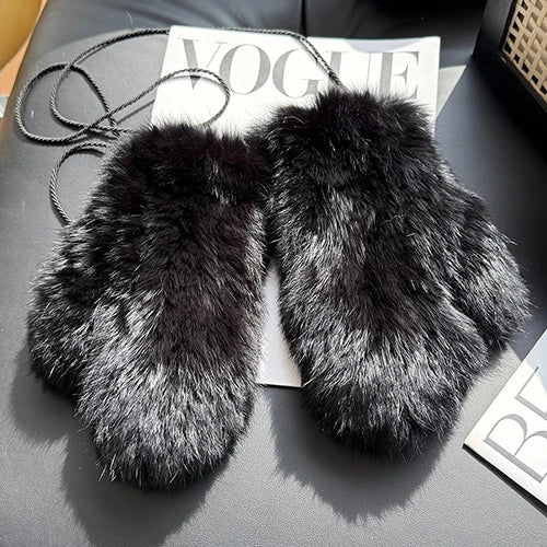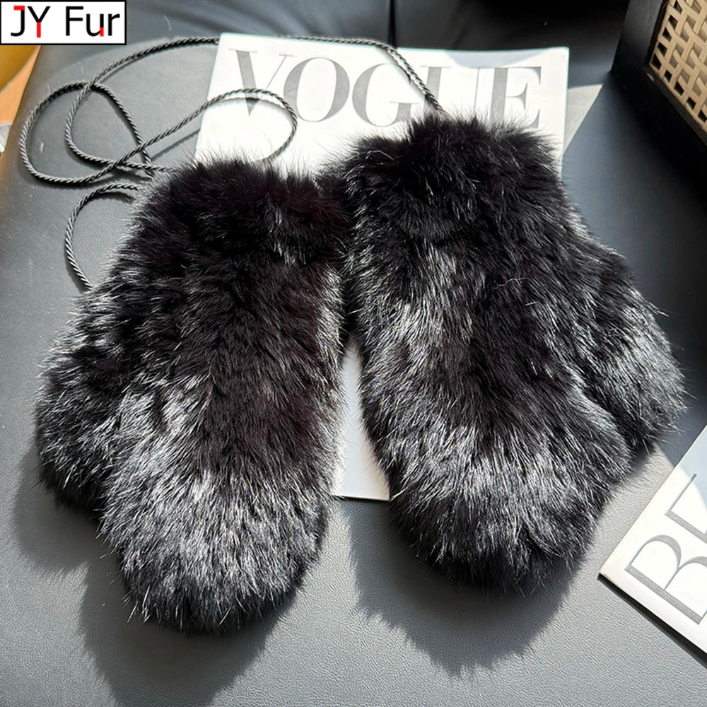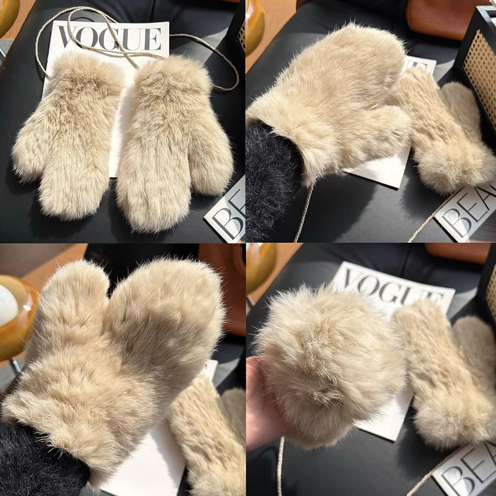 Women s 100 Natural Rabbit Fur Winter Gloves Warm Knit Thick Thermal Mittens ...