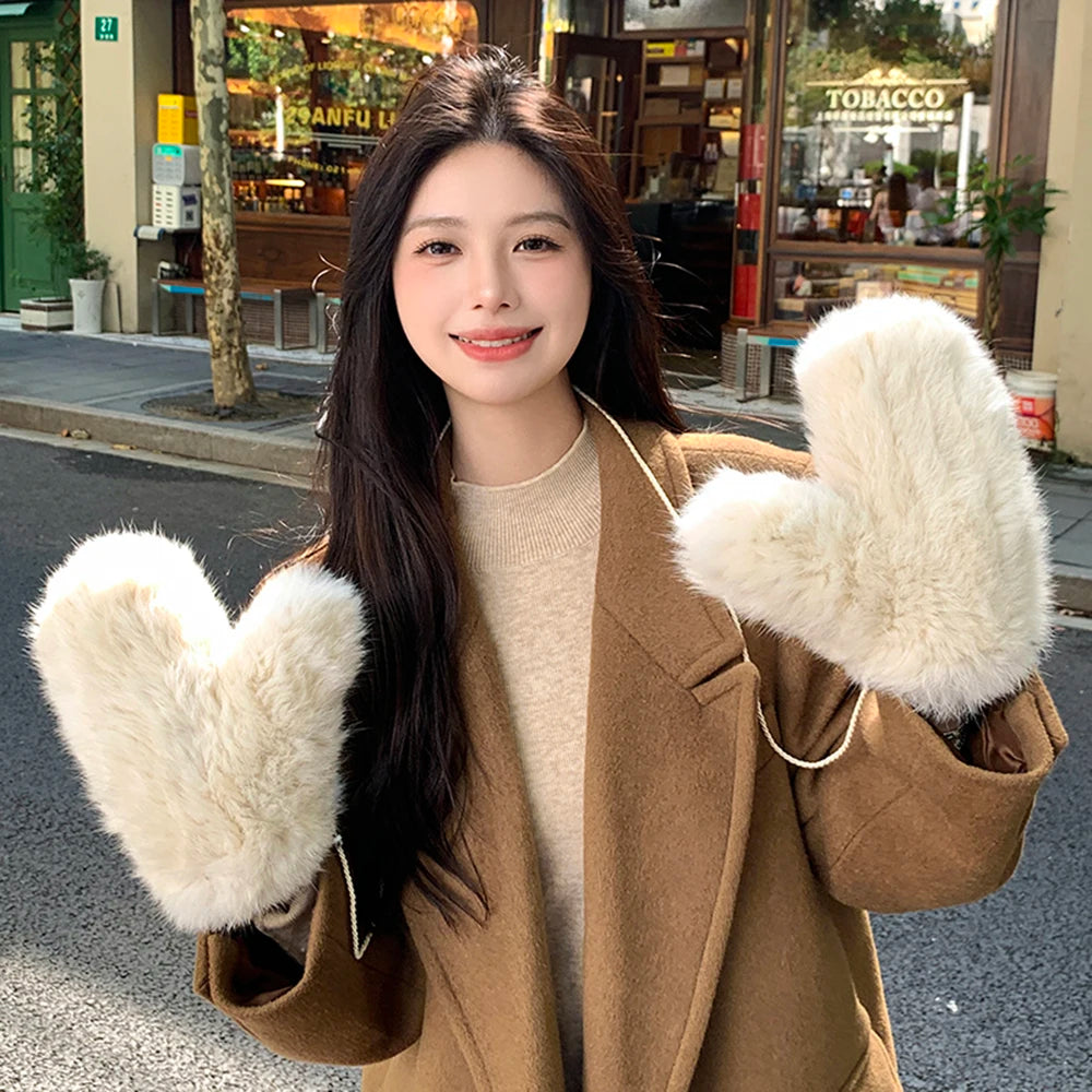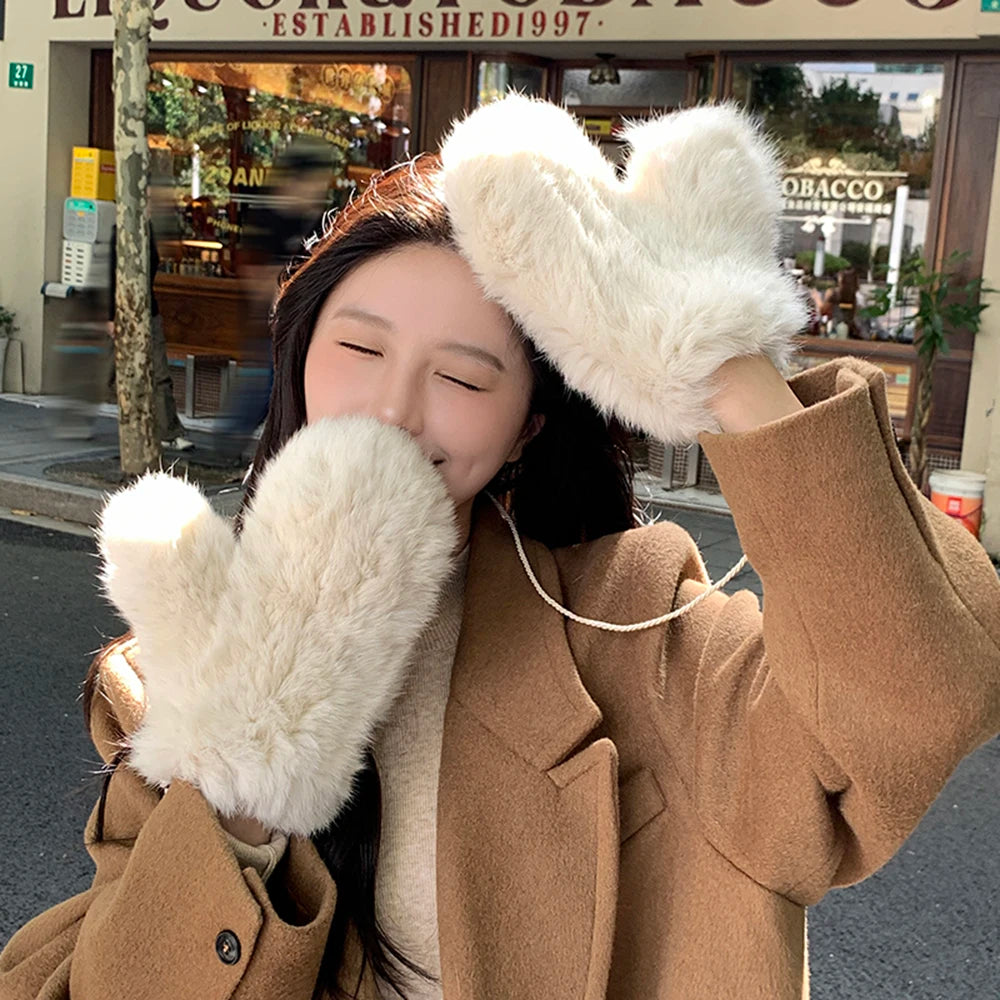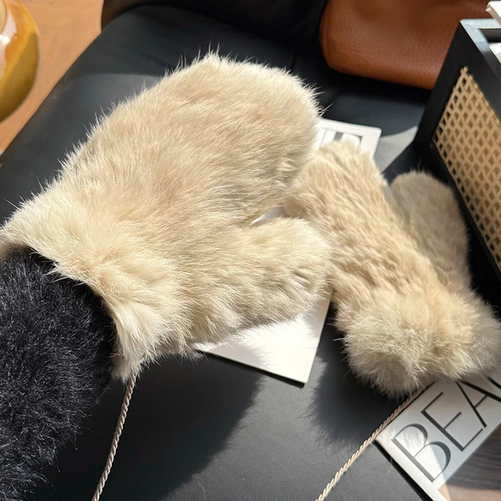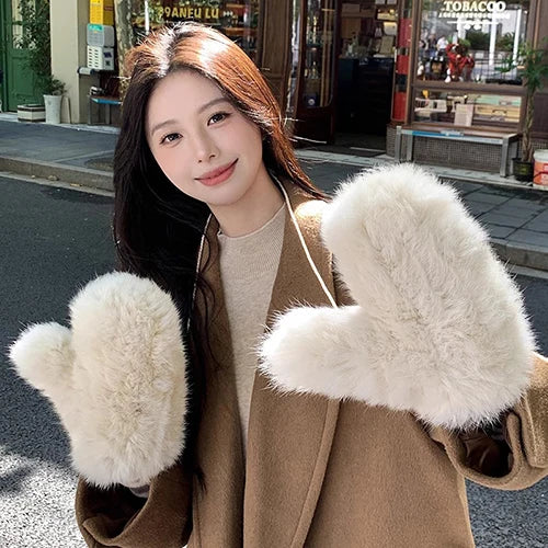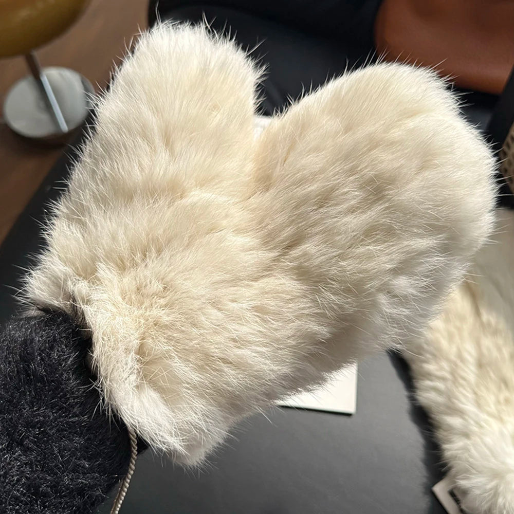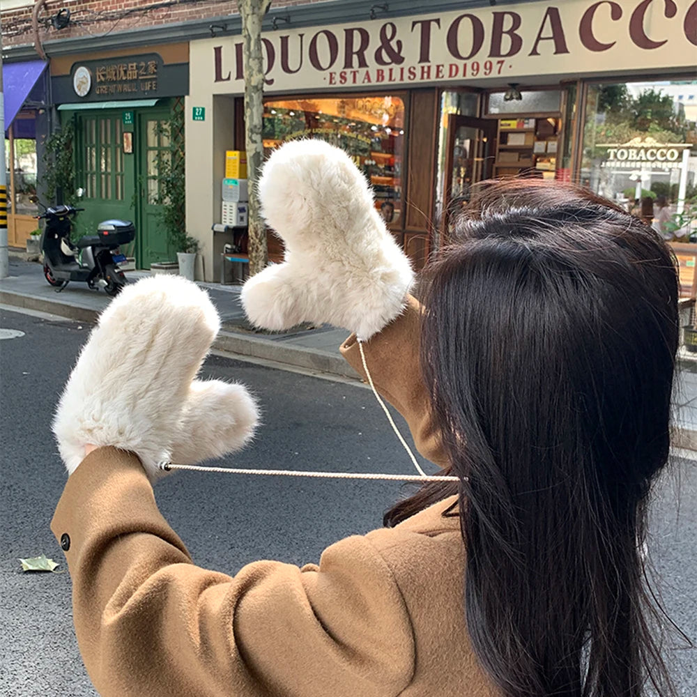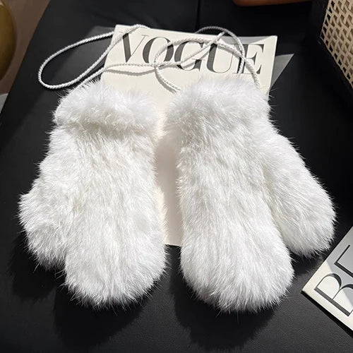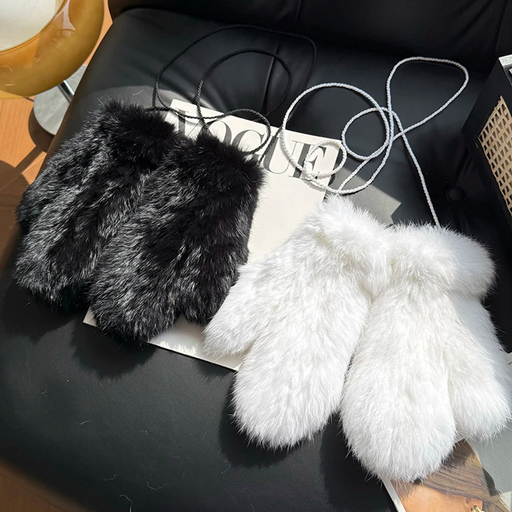 Women s 100 Natural Rabbit Fur Winter Gloves Warm Knit Thick Thermal Mittens ...
