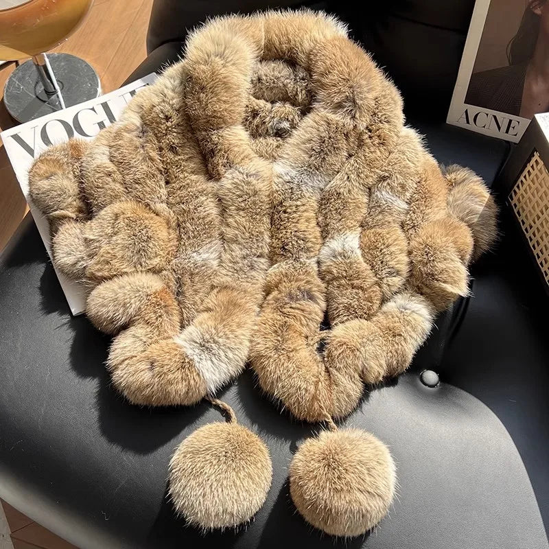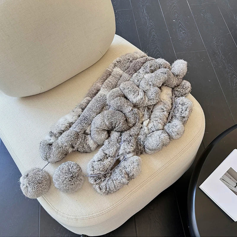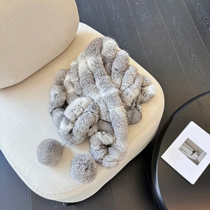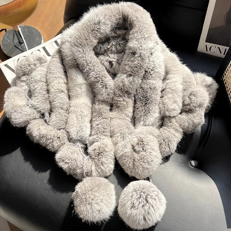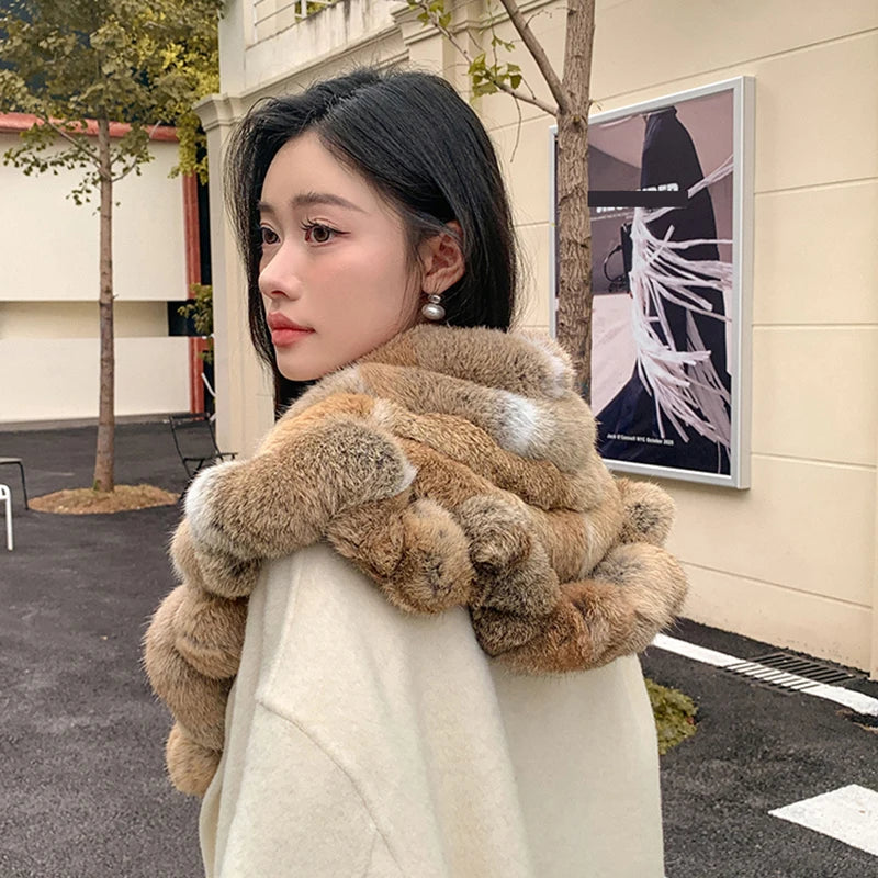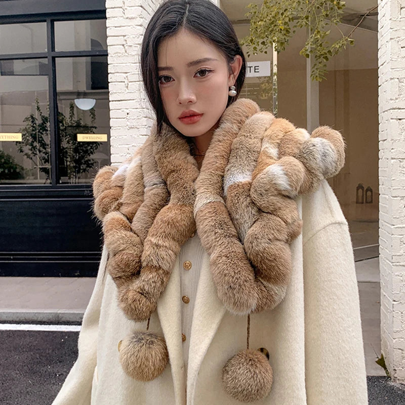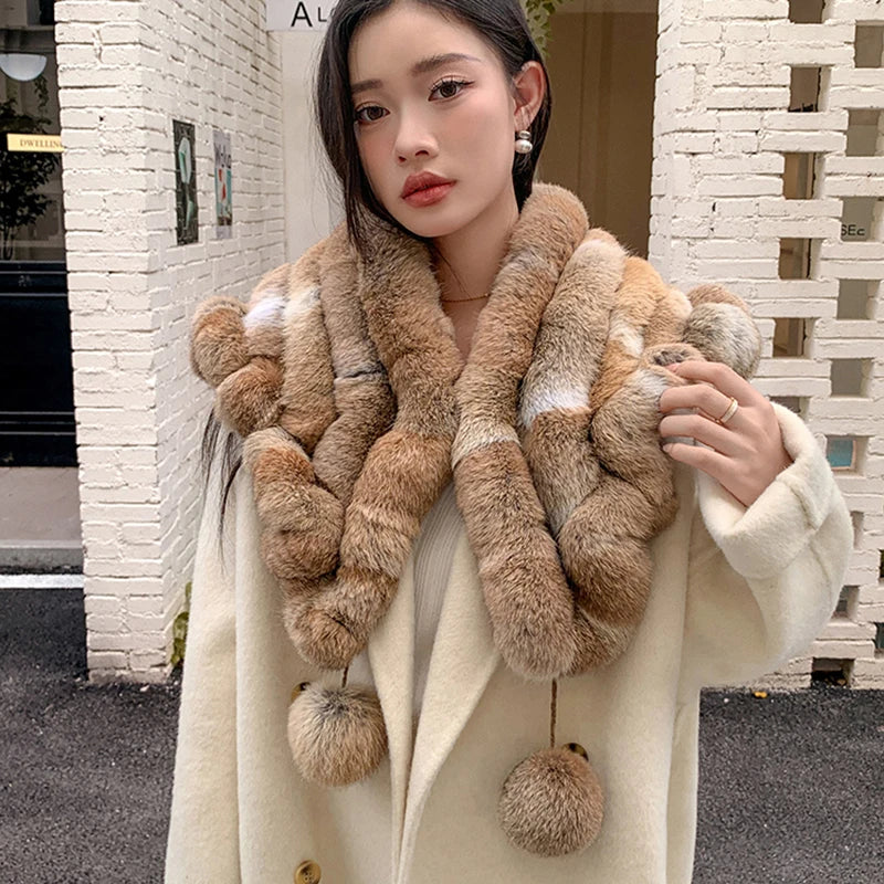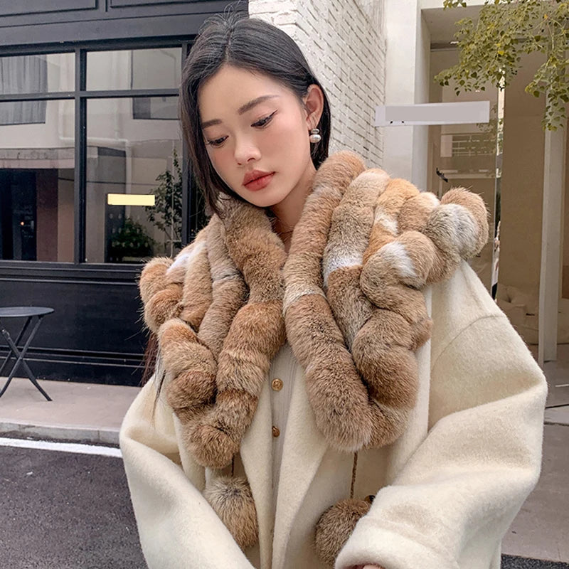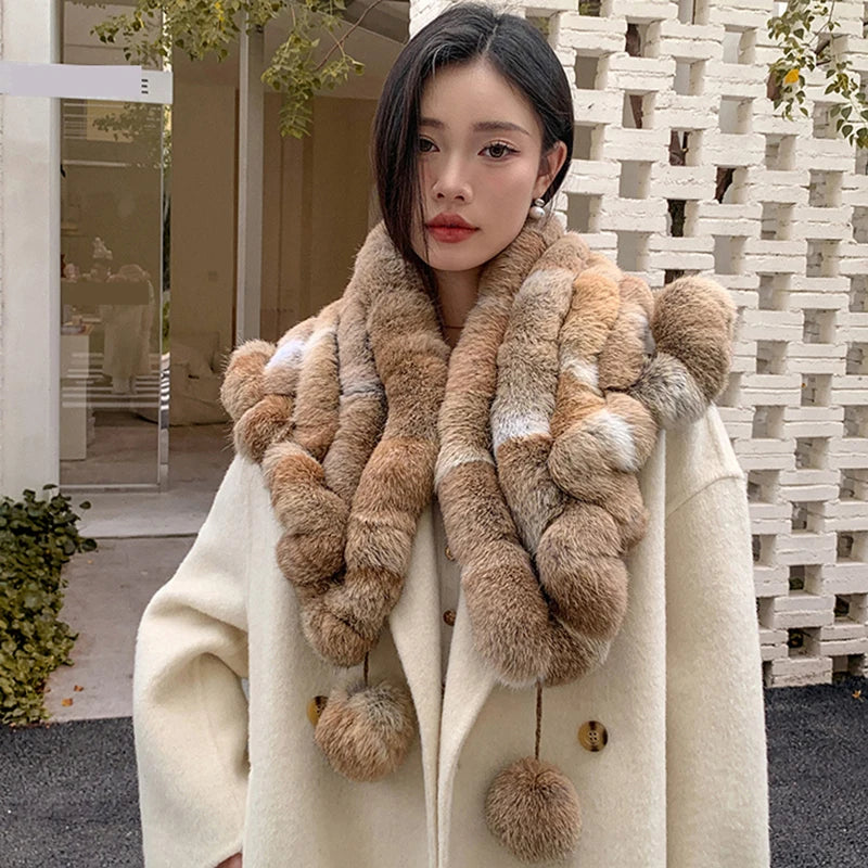 Lady Winter Real Rabbit Fur Scarf Natural Warm Soft Rabbit Fur Shawl Women Fa...