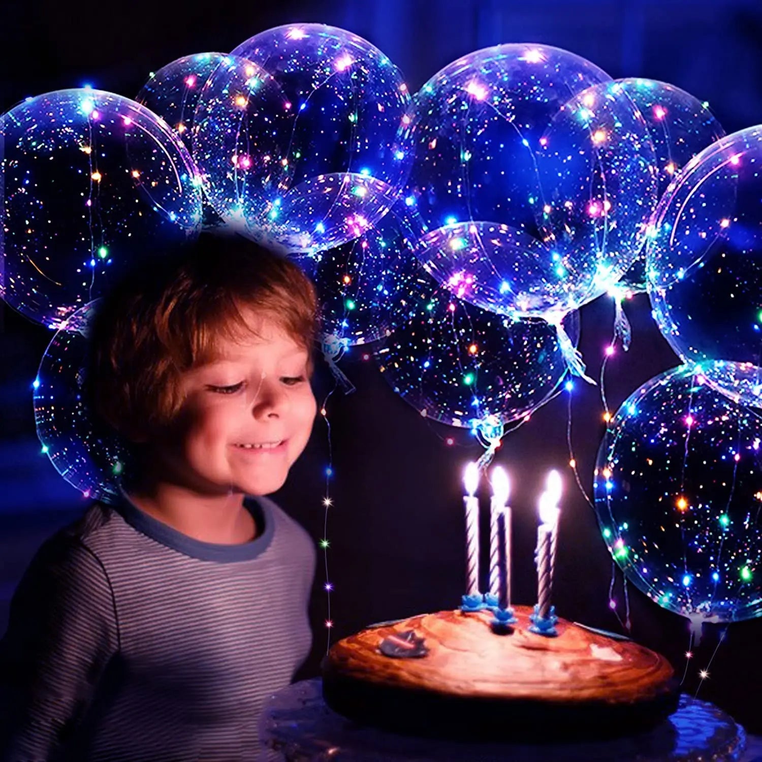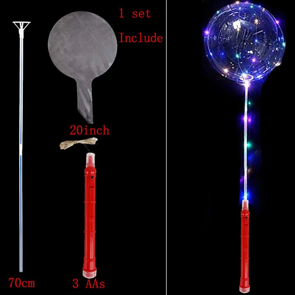 LED Light Up Bobo Balloons Flashing Handles 20 Inches Bubble Bobo Balloons 70 cm Sticks Christmas Birthday Party Decoration
