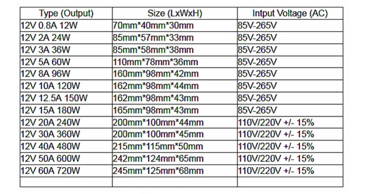 Output Voltage: 12v