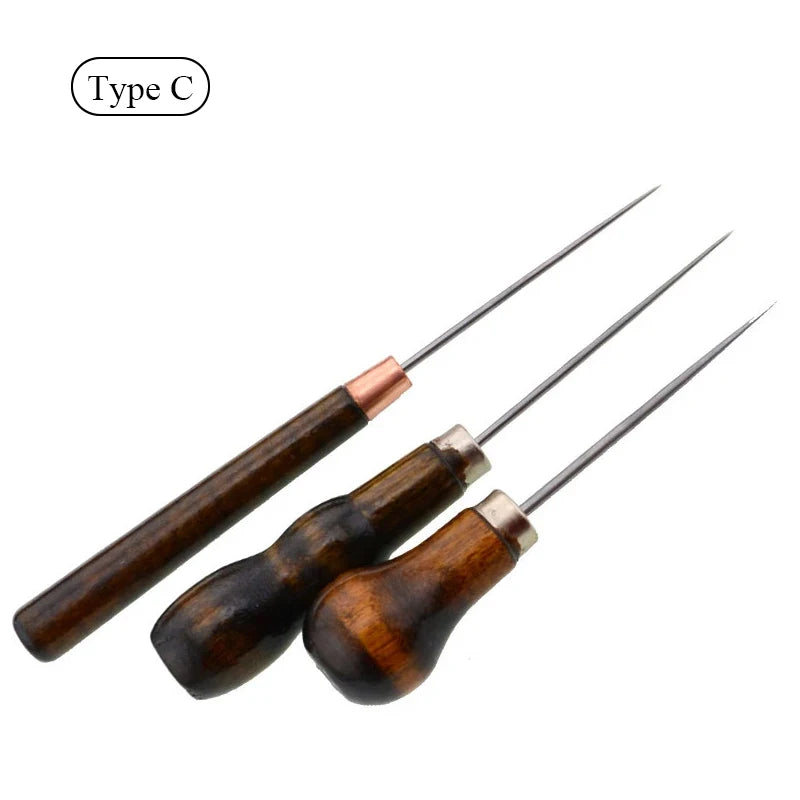 LMDZ Wood Handle Awl Leather Punching Tools Leather Straight Awls Hole Puncher Drills for Leather Craft A...