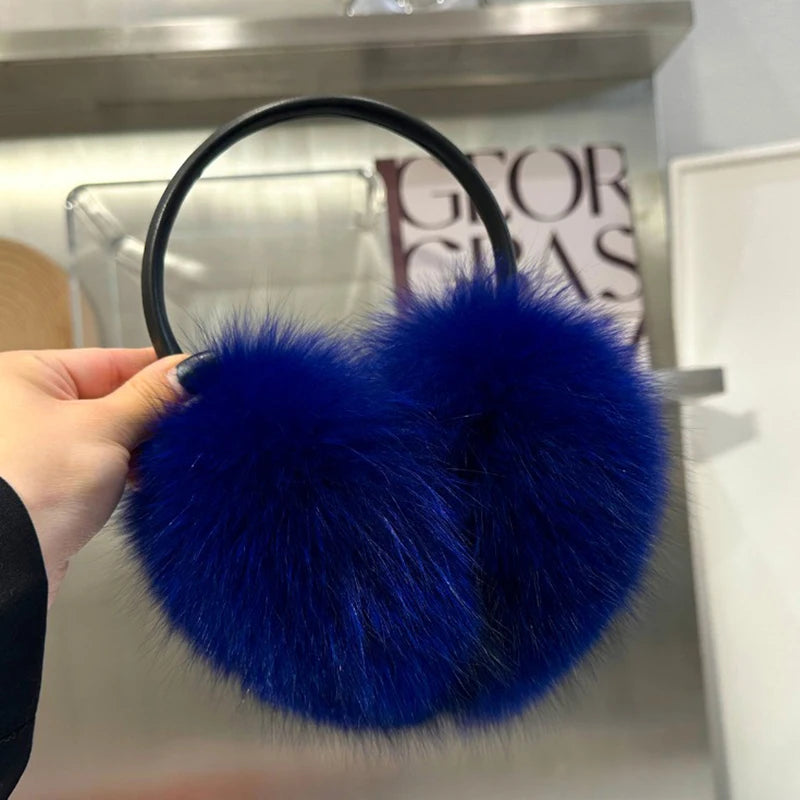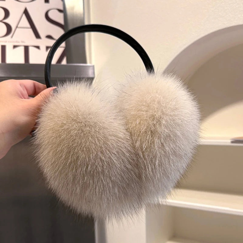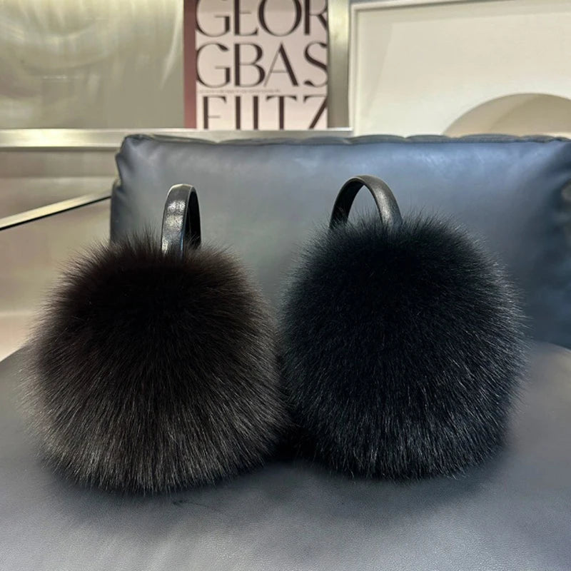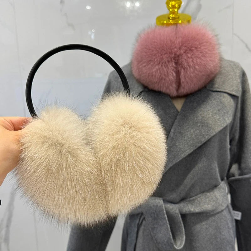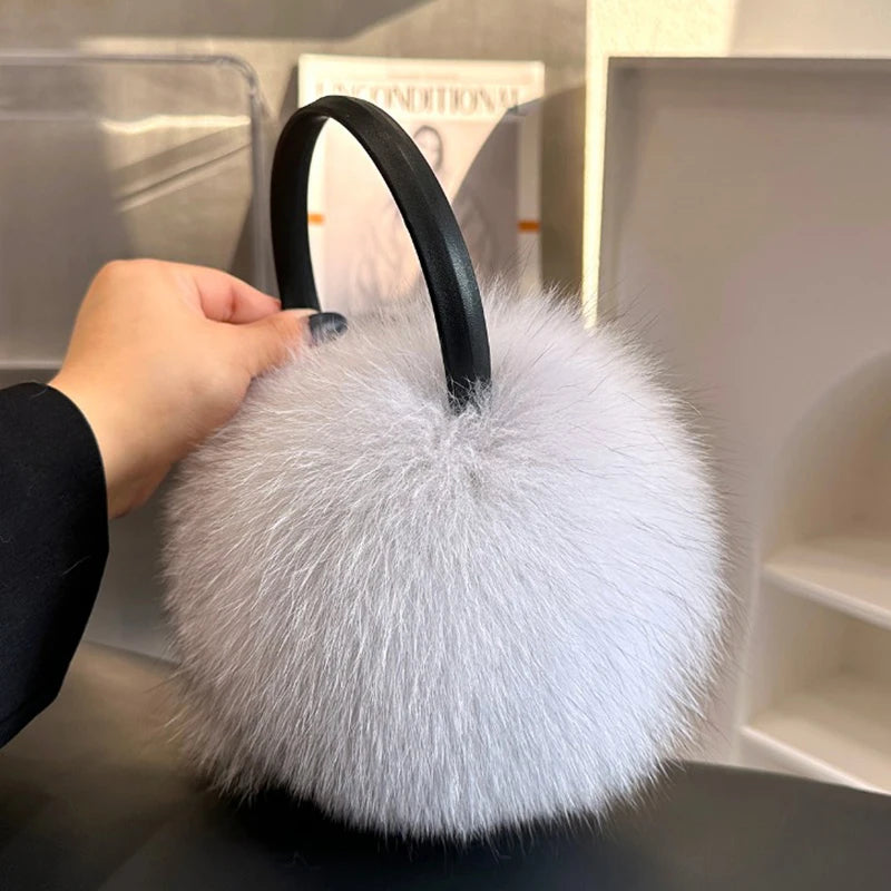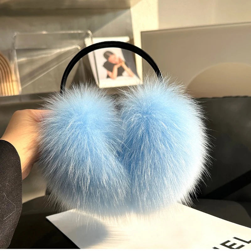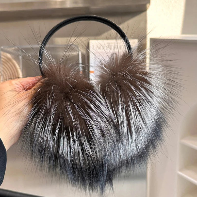 Arrival Women Plush Fox Fur Earmuff Winter Lady Big Pompoms Fox Fur Fluffy Ea...